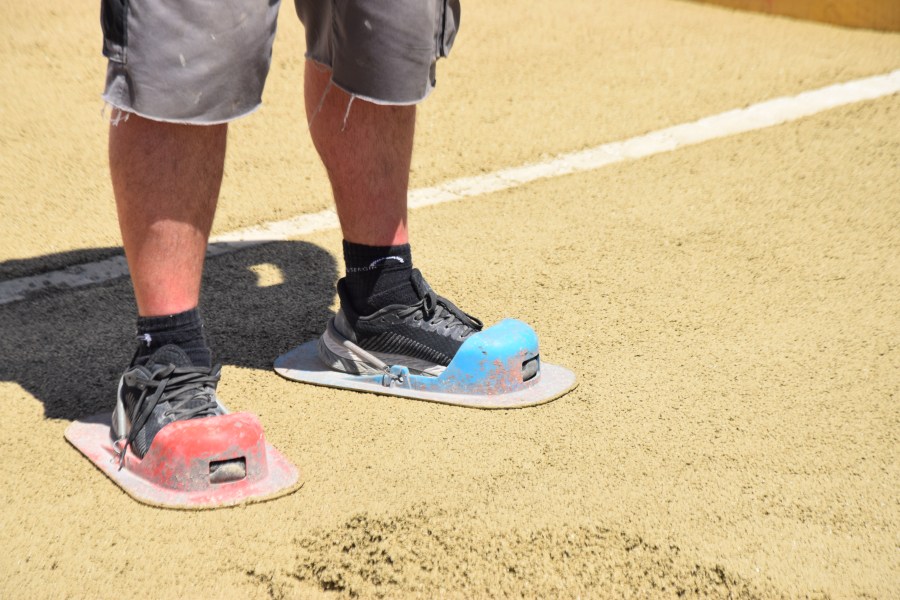 28. The heavy man in special shoes tamping it down.