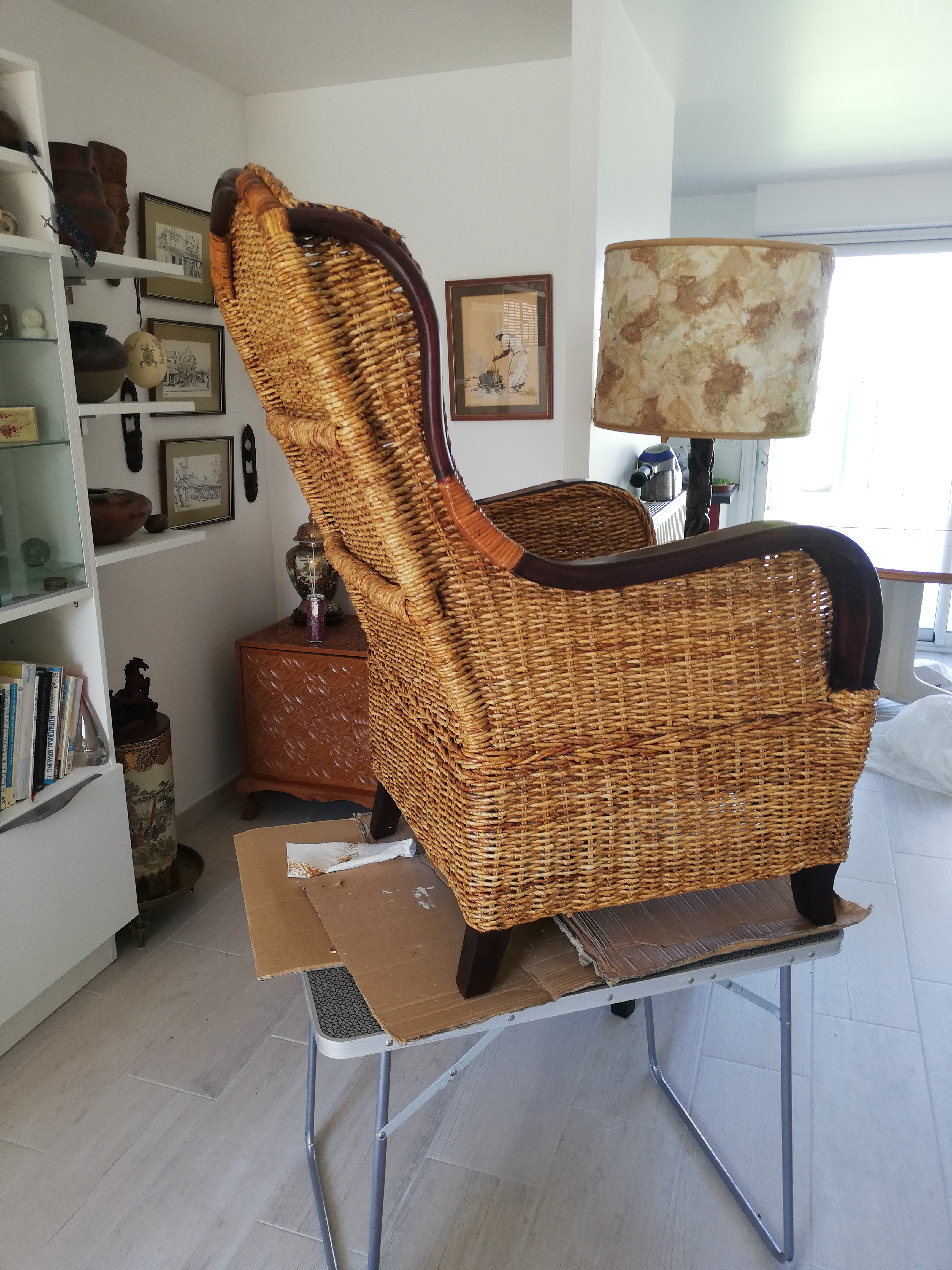 Easter weekend – I have been having a big drive on the furniture this weekend. Used up the last of the white paint for a third coat on the table leg and the frame of the side board. Also got the armchair and the smaller of the two setees painted with the tint/protection. I am very p[leased with the results. I will work on the large setee tomorrow, Easter Monday.