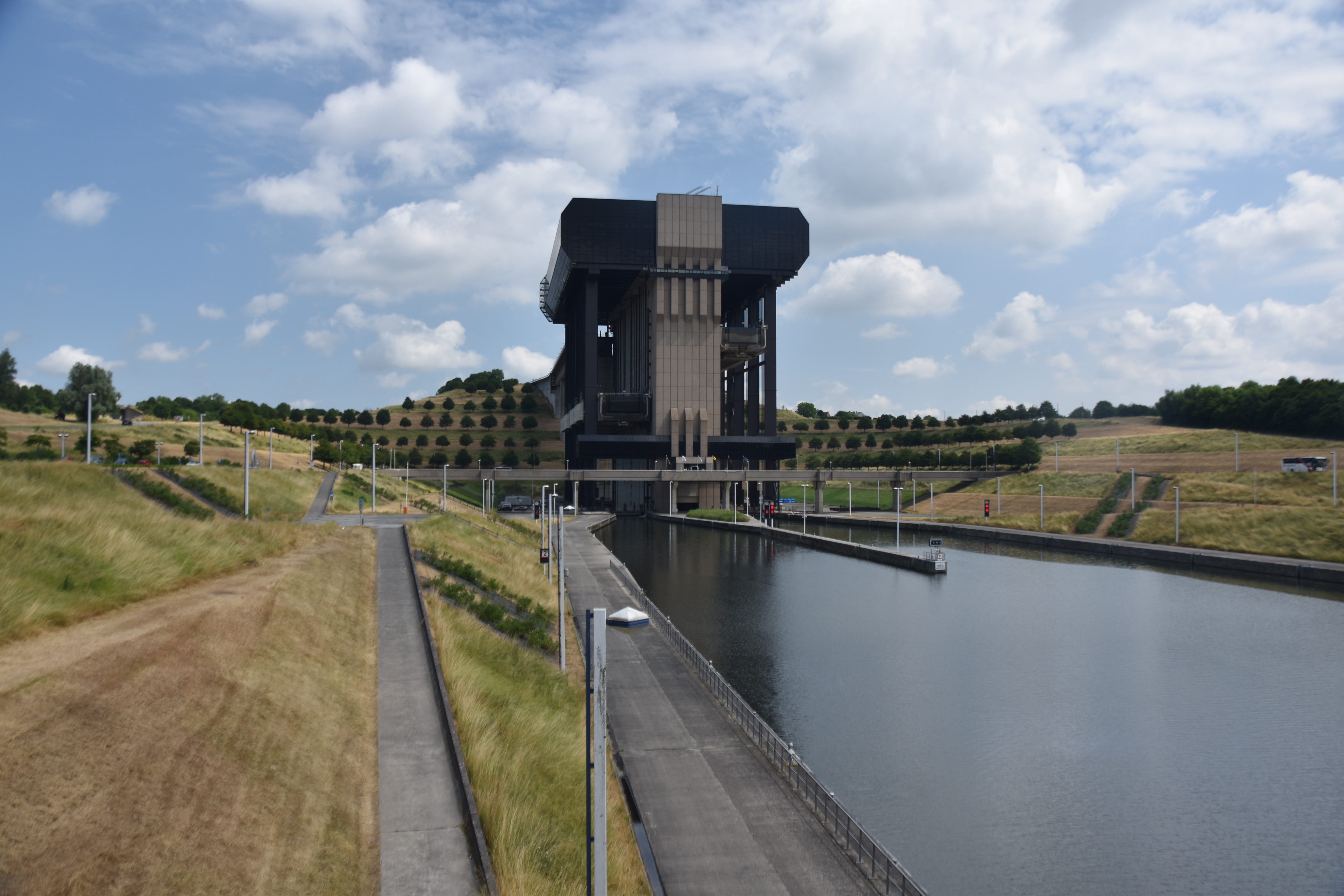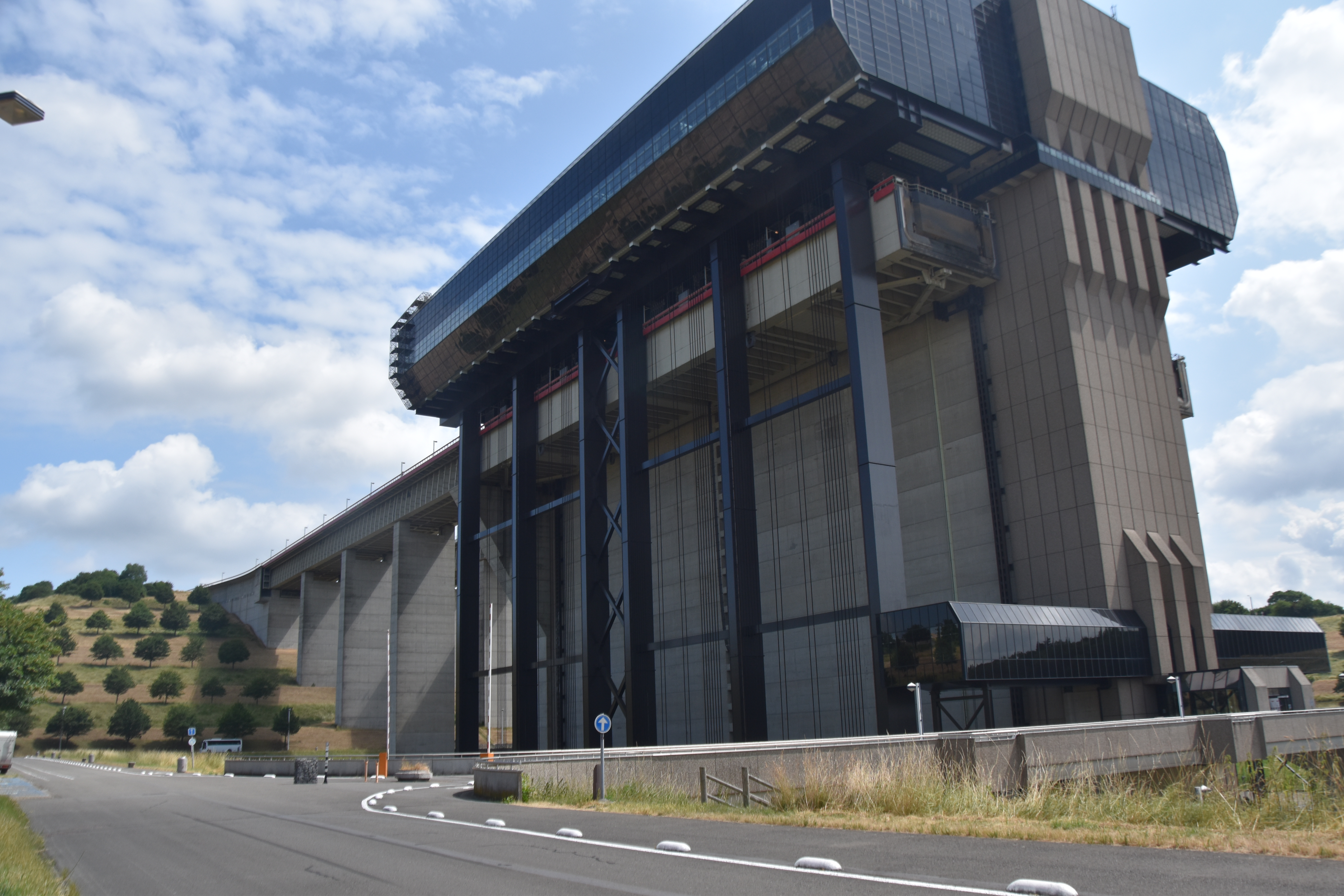 Before leaving all this behind completely I stopped at Theiu to look at the boat lifts. The new one completed in 2002 boast being the highest lift in Europe at 240ft (73.15m), in fact it was briefly the highest in the world till the Three georges lift was built in China in 2016. It replaces two locks and four 16m lifts, the earliest dating from 1888. The new lift has two caissions each of which can accomodate the 1350ton large commercial barges.