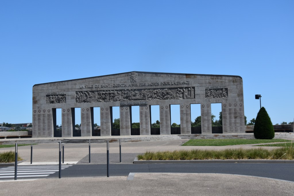 24th After working in the morning I packed the backpack with lunch, book, blanket and water and C & I headed off hald way across the bridge and down onto L’Isl de Parc. The first thing to greet you is the enormous war memorial. To put it into context we are close to the source of the Somme here in St Quentin and some of the most horrific blood baths of the last centuary.