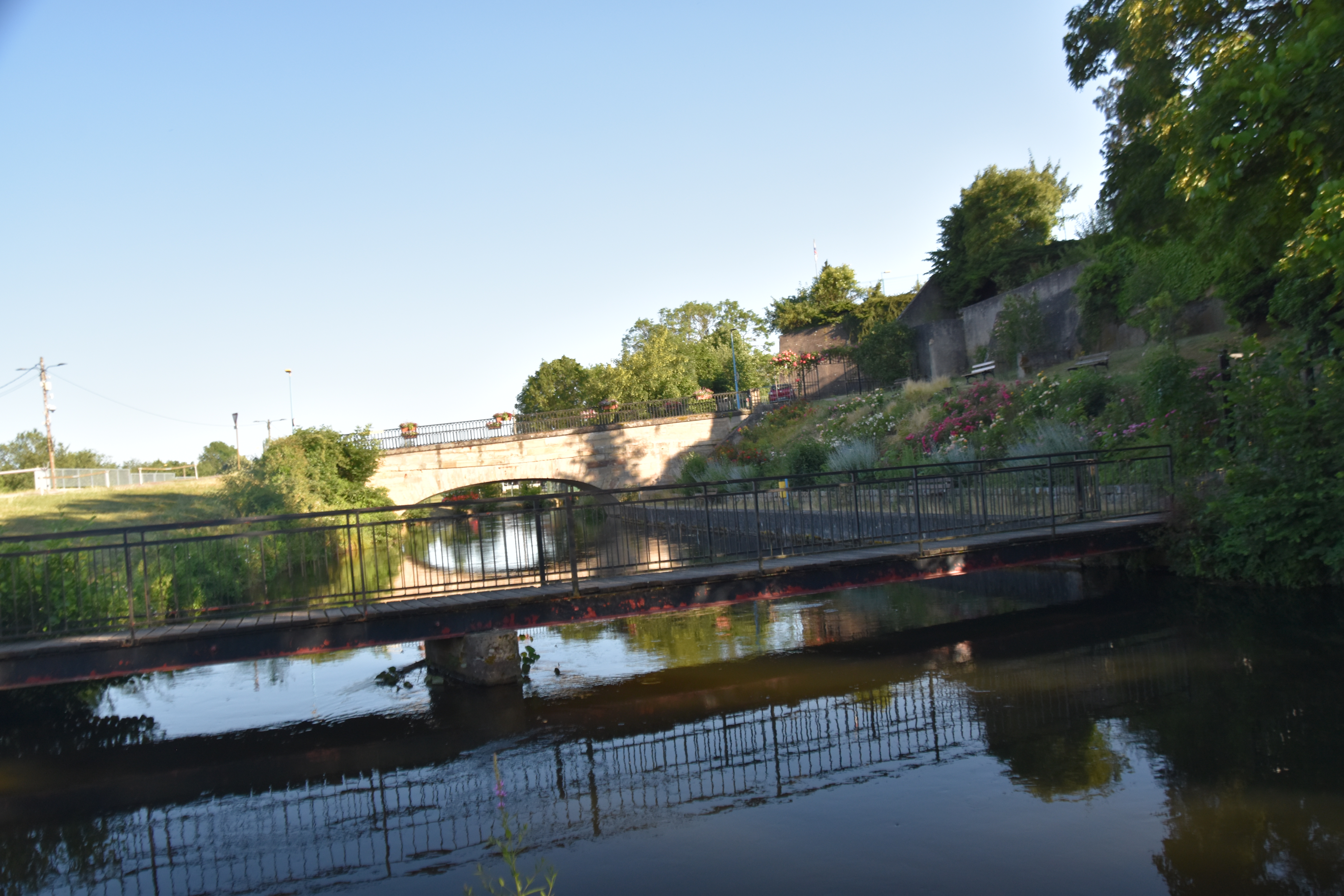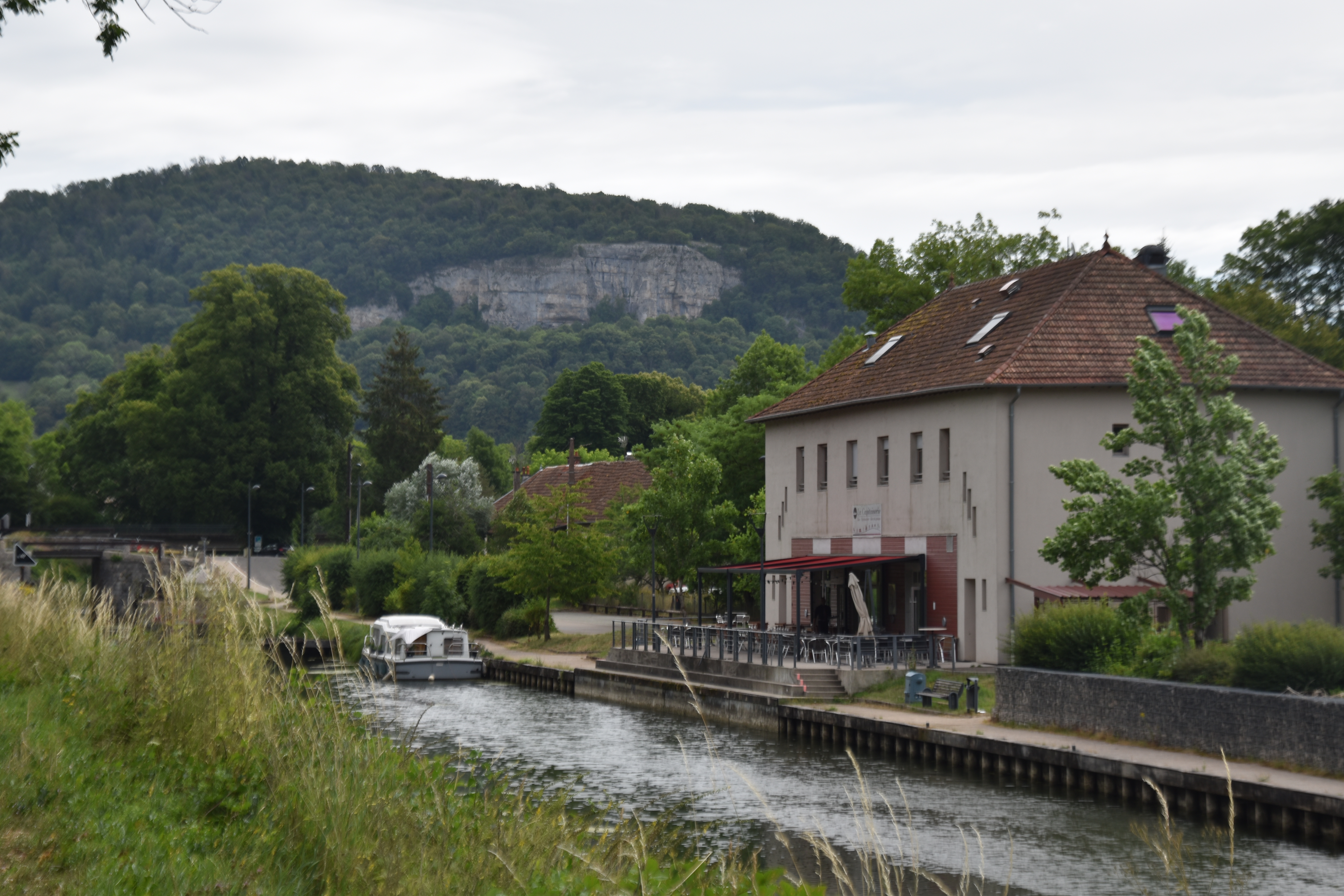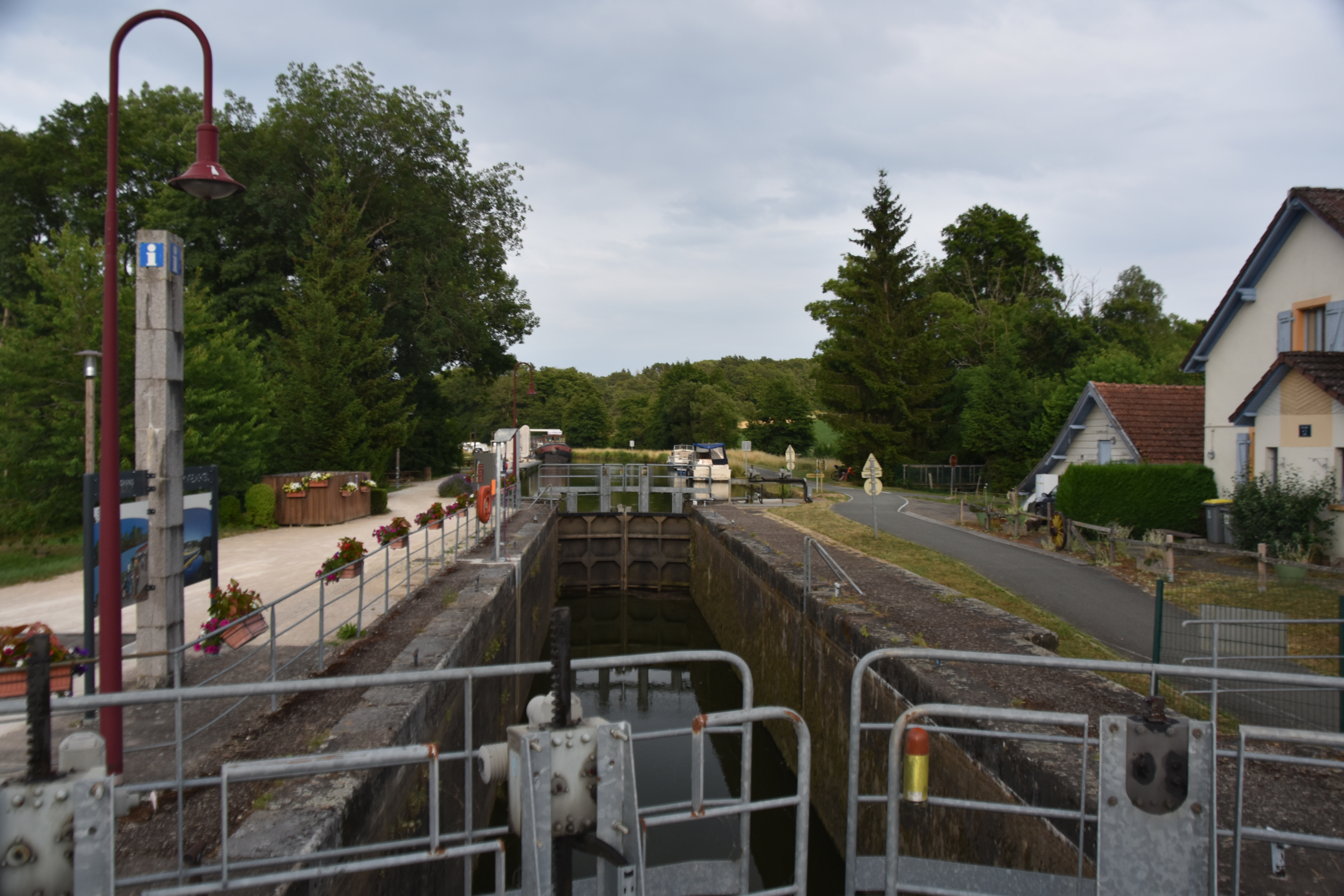 One the same canal at a different lock, which is open at both ends because the water level is so low! The “Capitainery” is now a restaraunt and on the other side of the canal there is a bridge over the doubs.