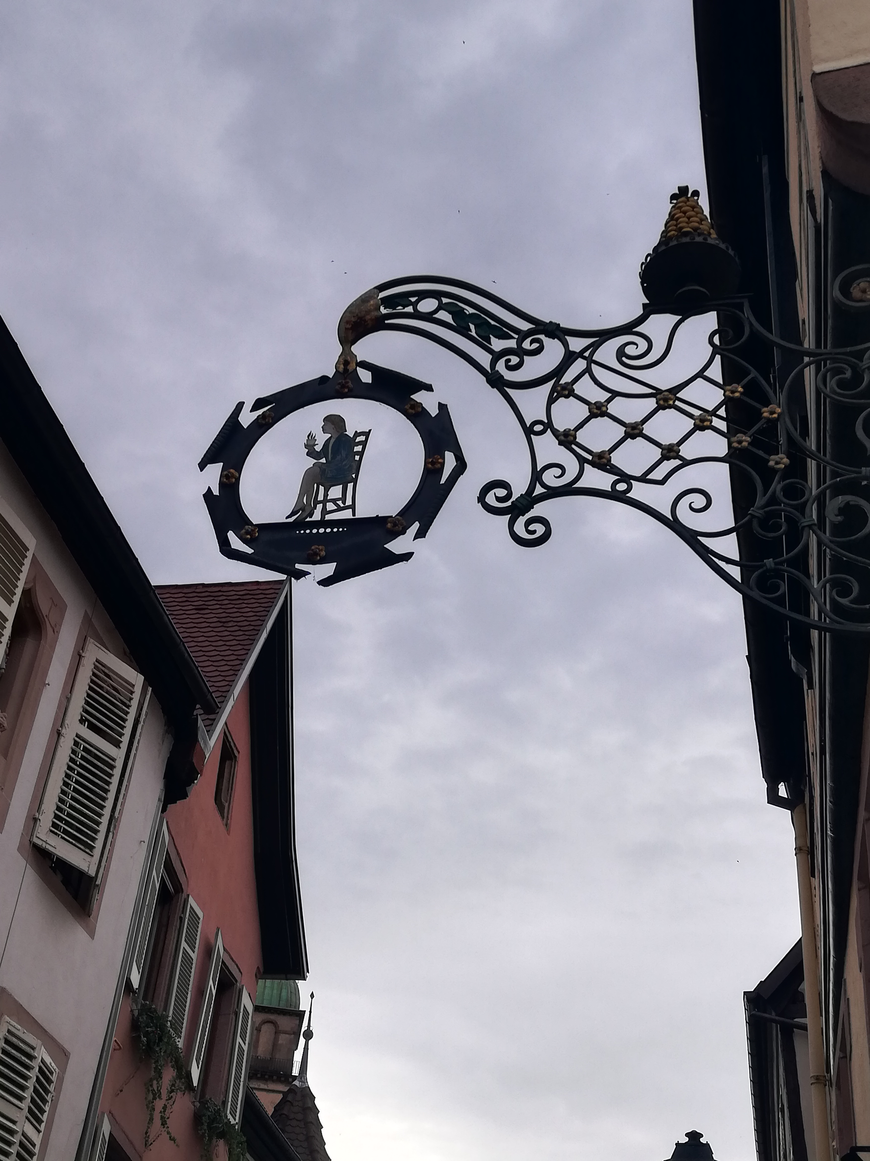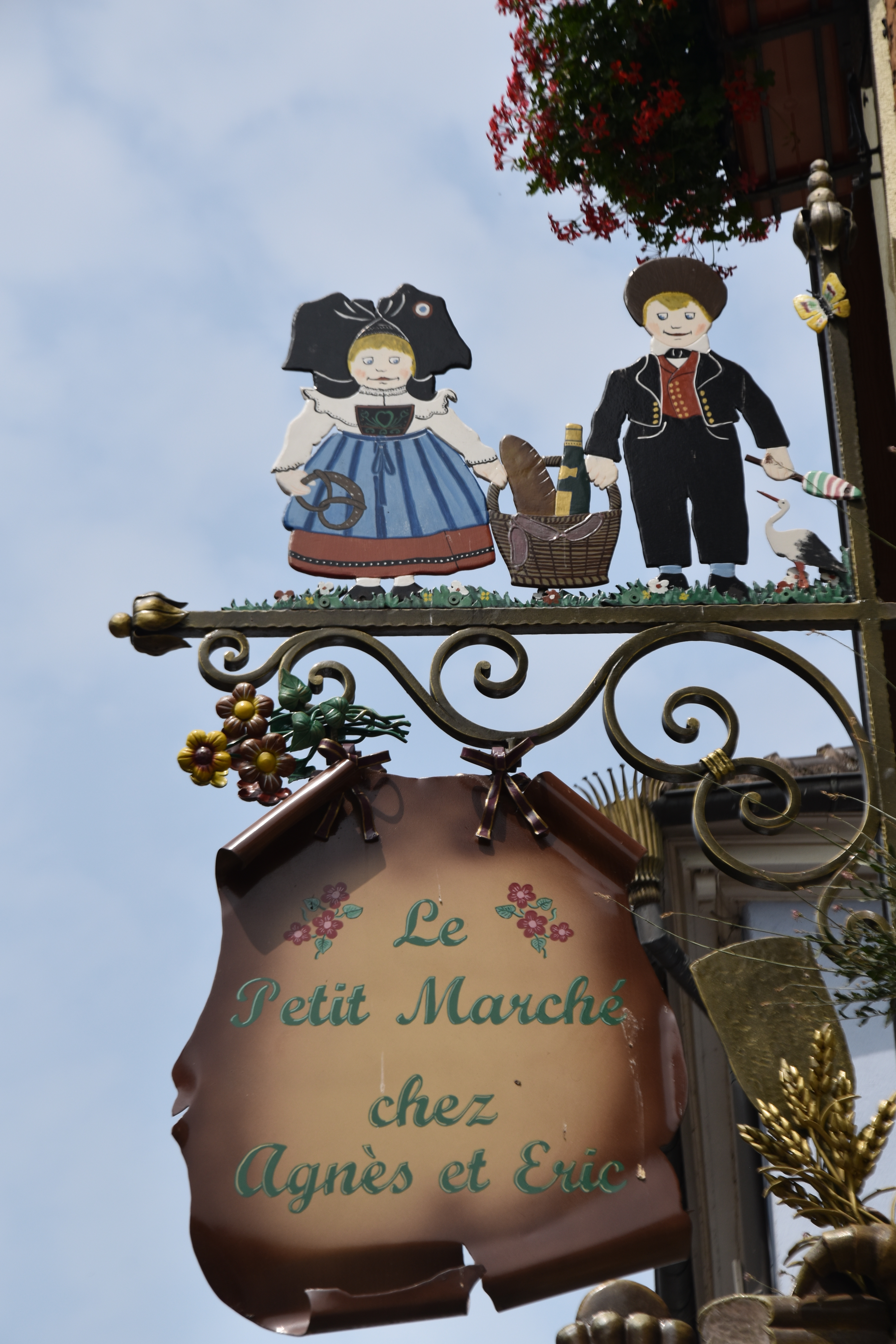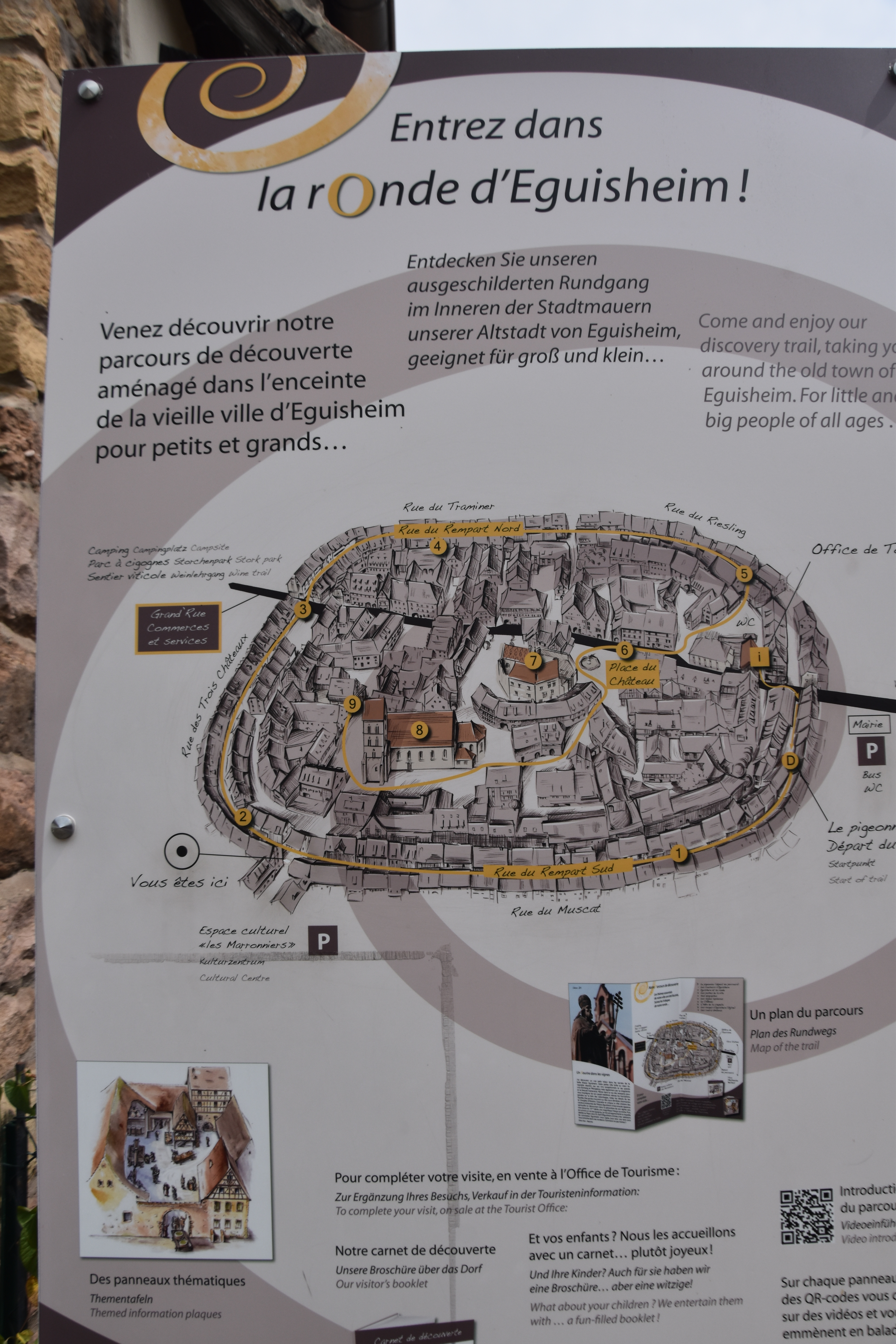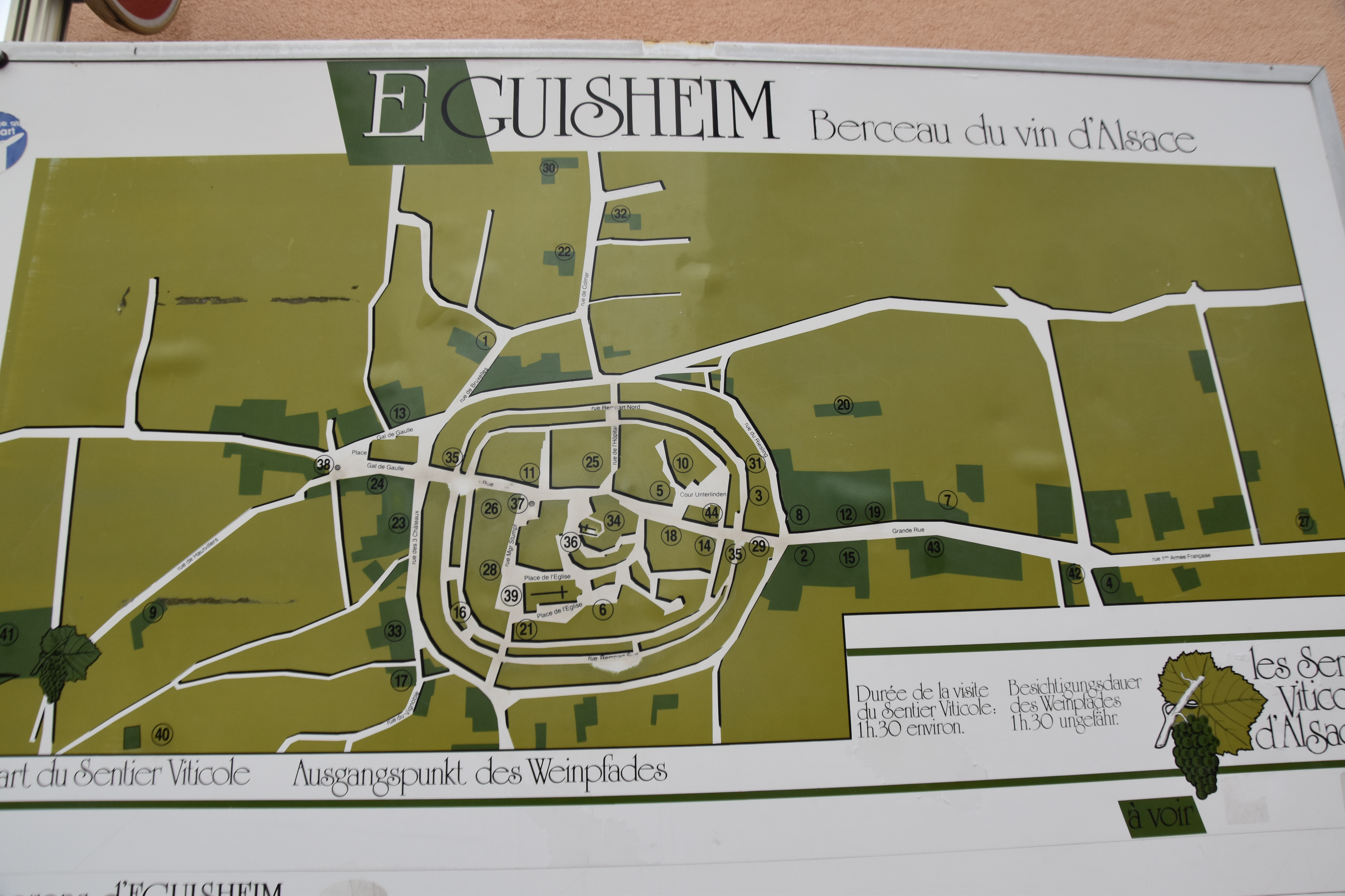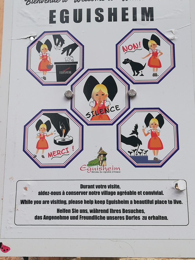 The second town that my neighbor recommended was Eguisheim so it merited a stop. They have employed the Hansi characters to good ends here too…..