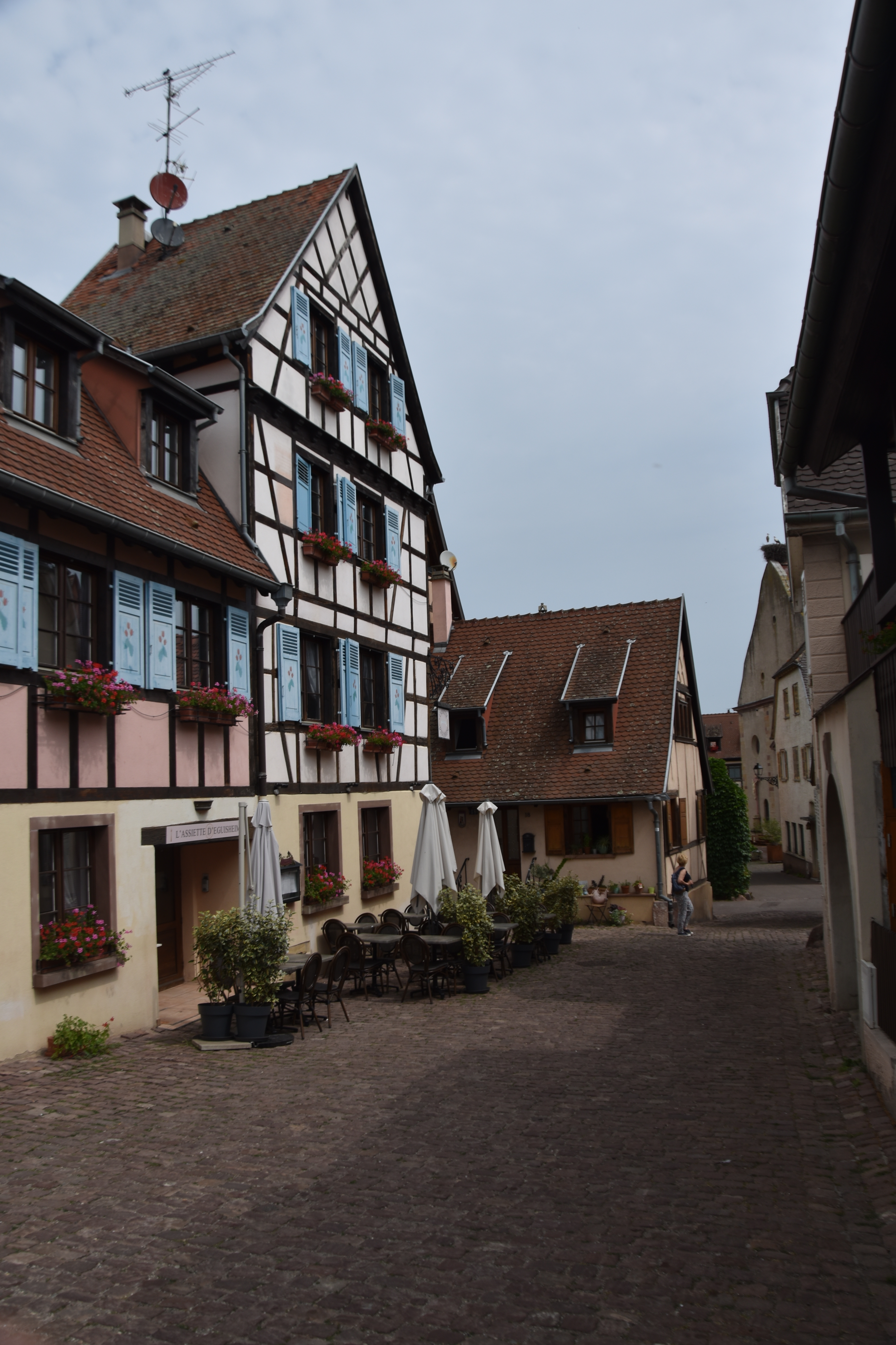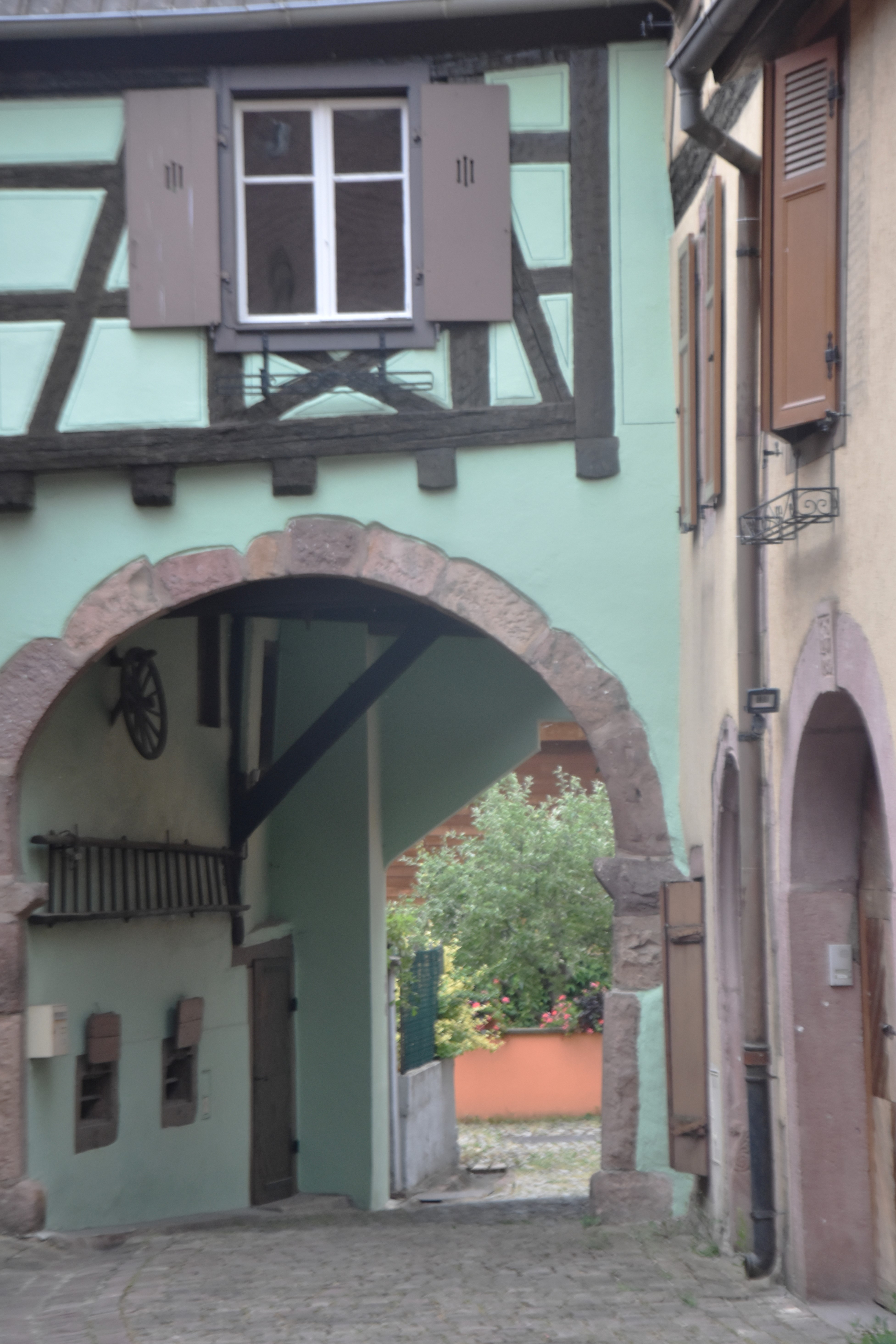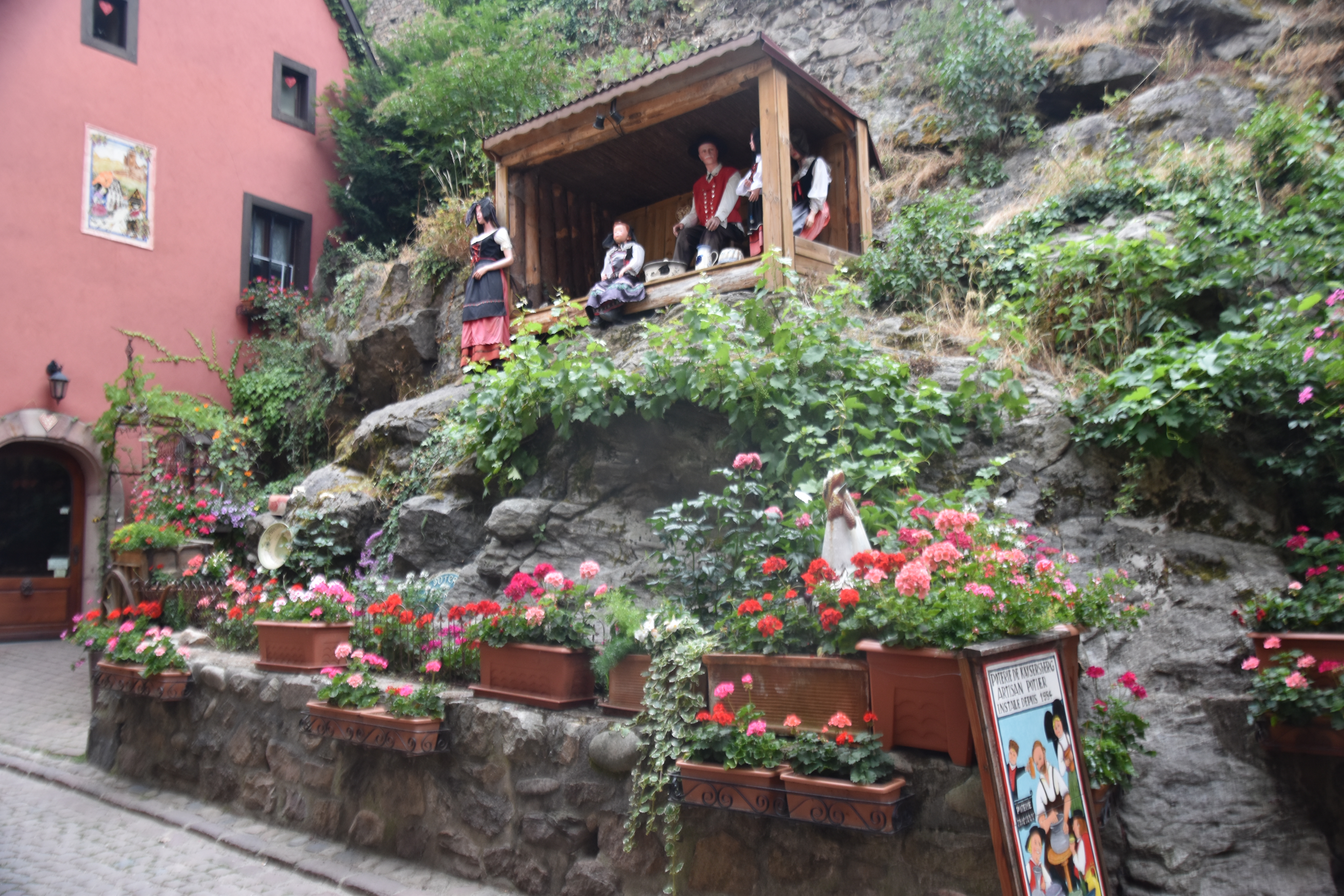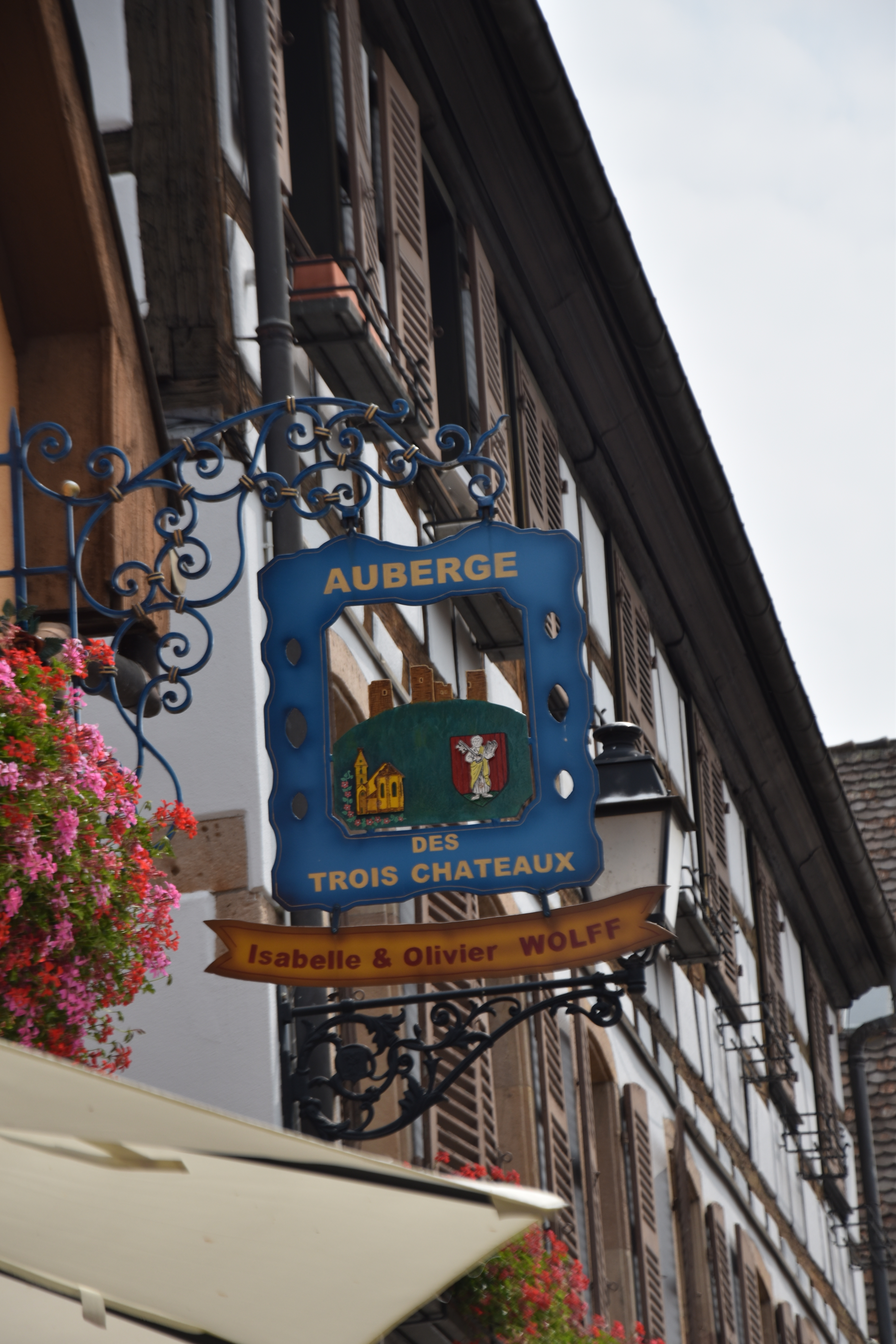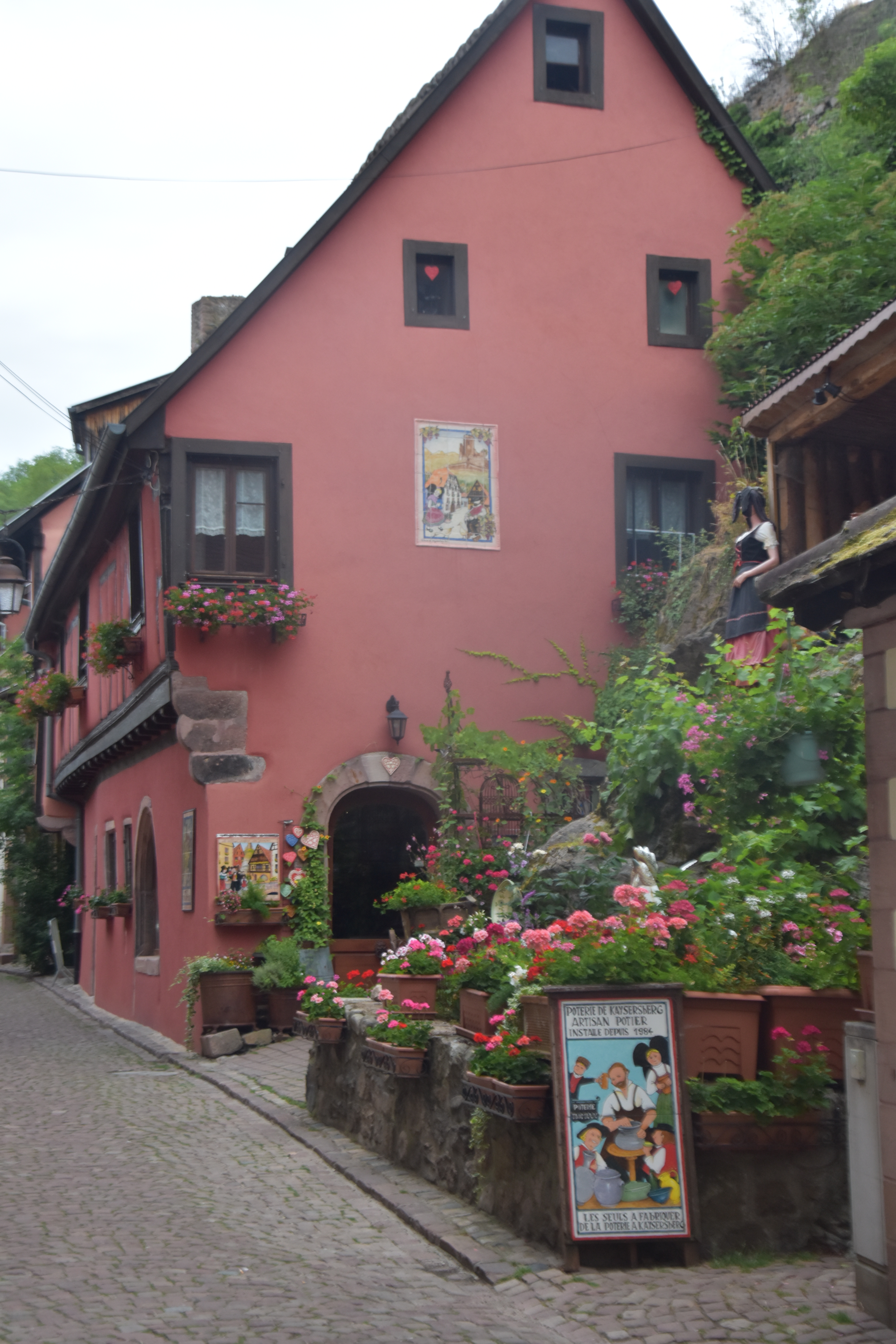 The second town that my neighbor recommended was Eguisheim so it merited a stop. They have employed the Hansi characters to good ends here too…..
