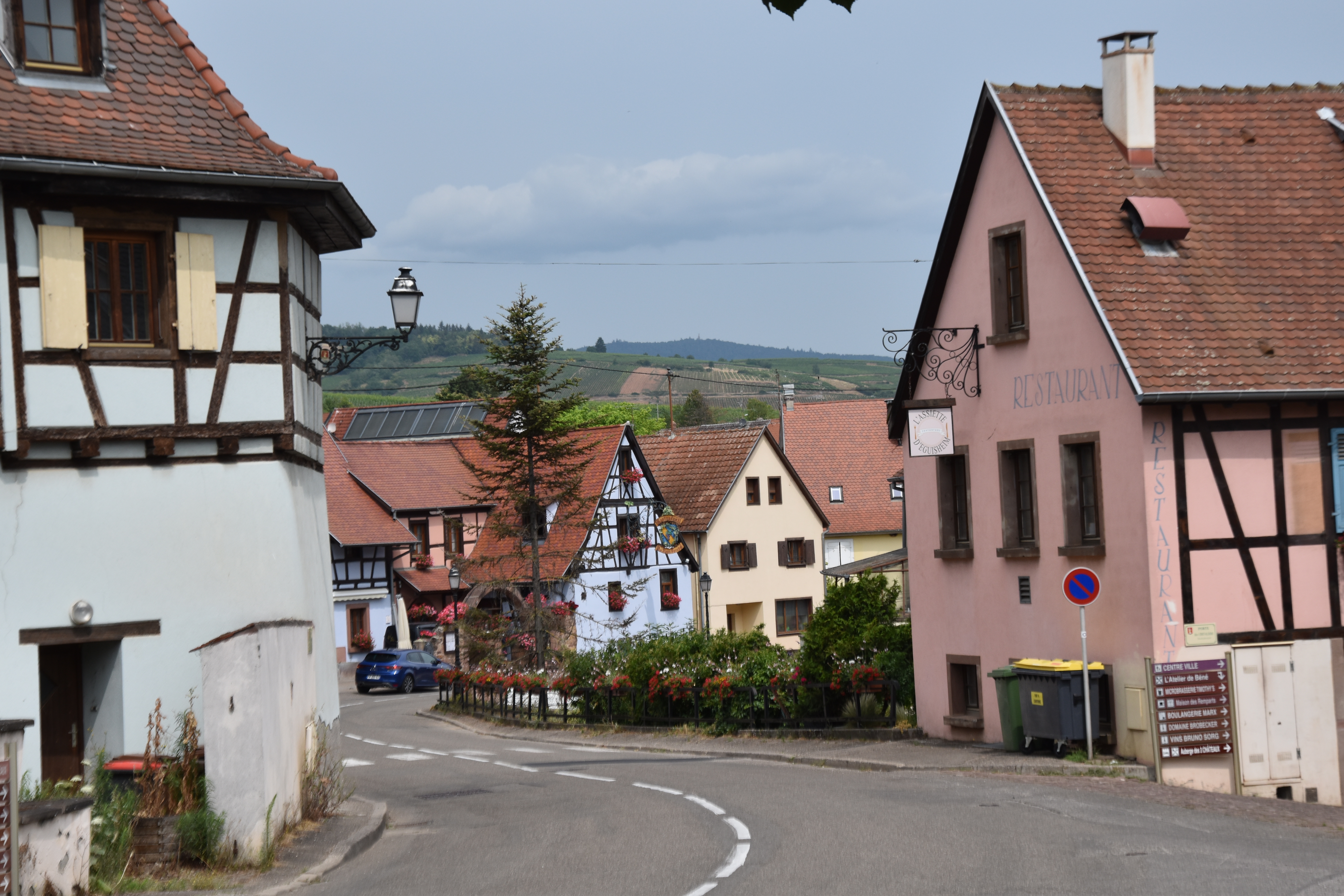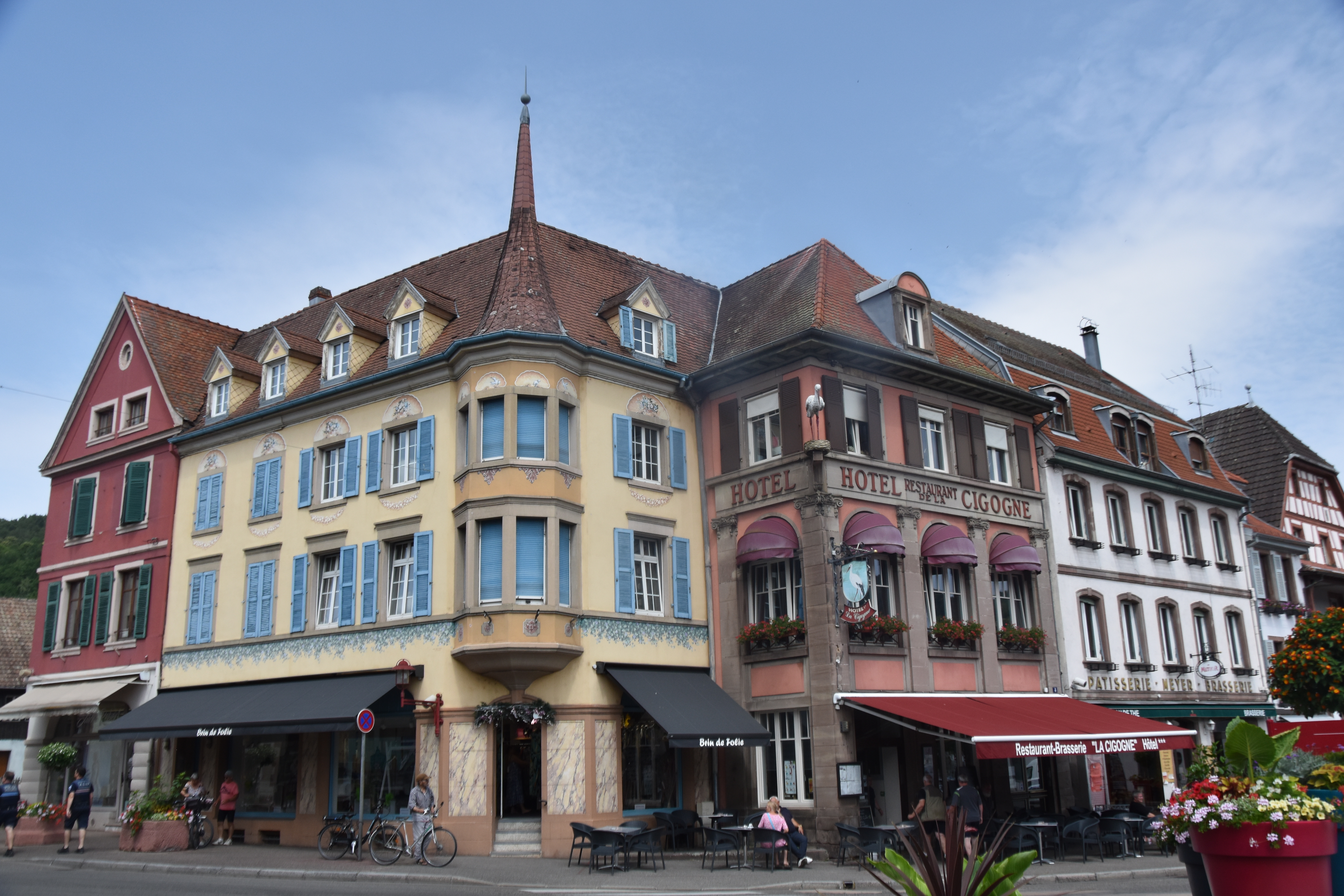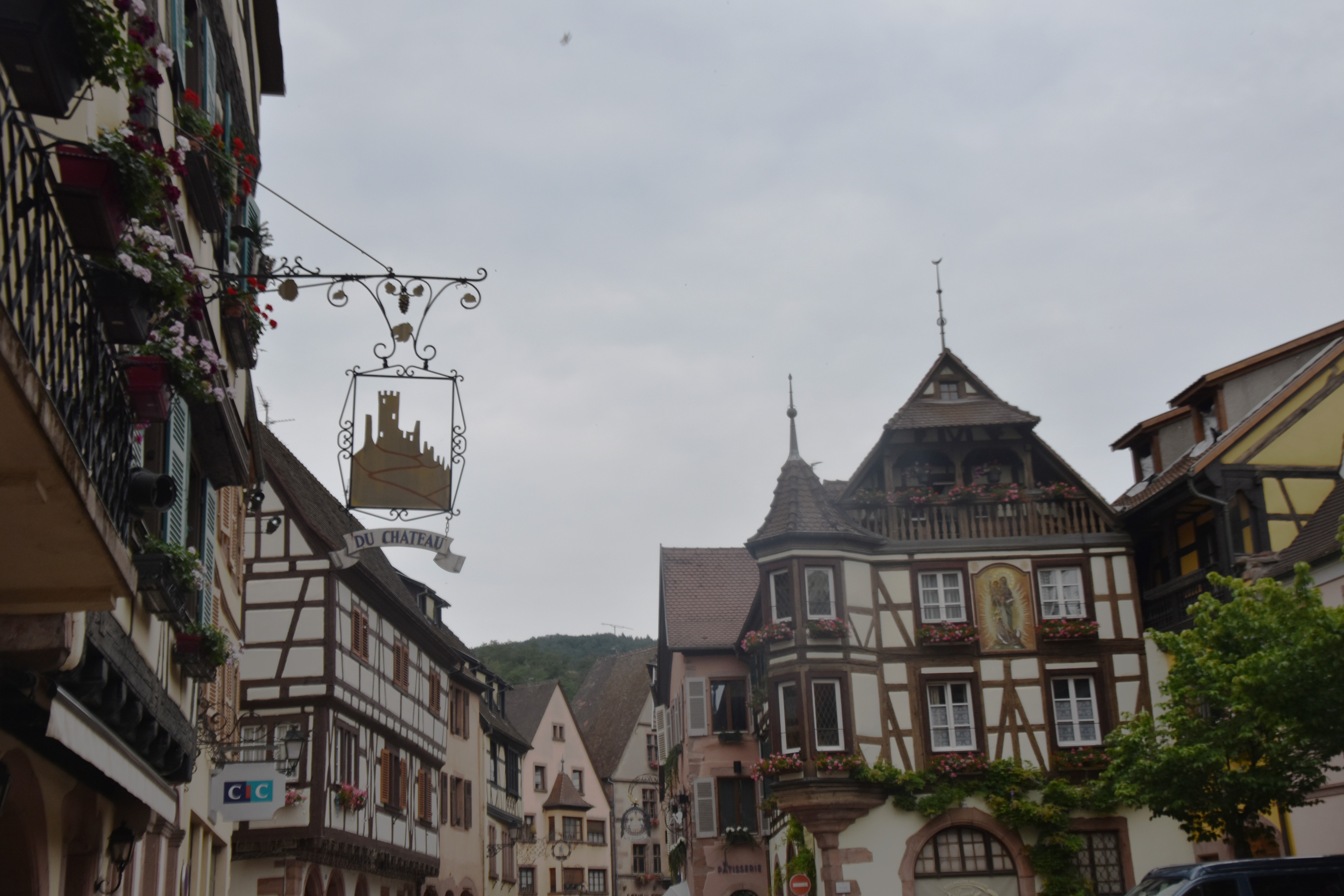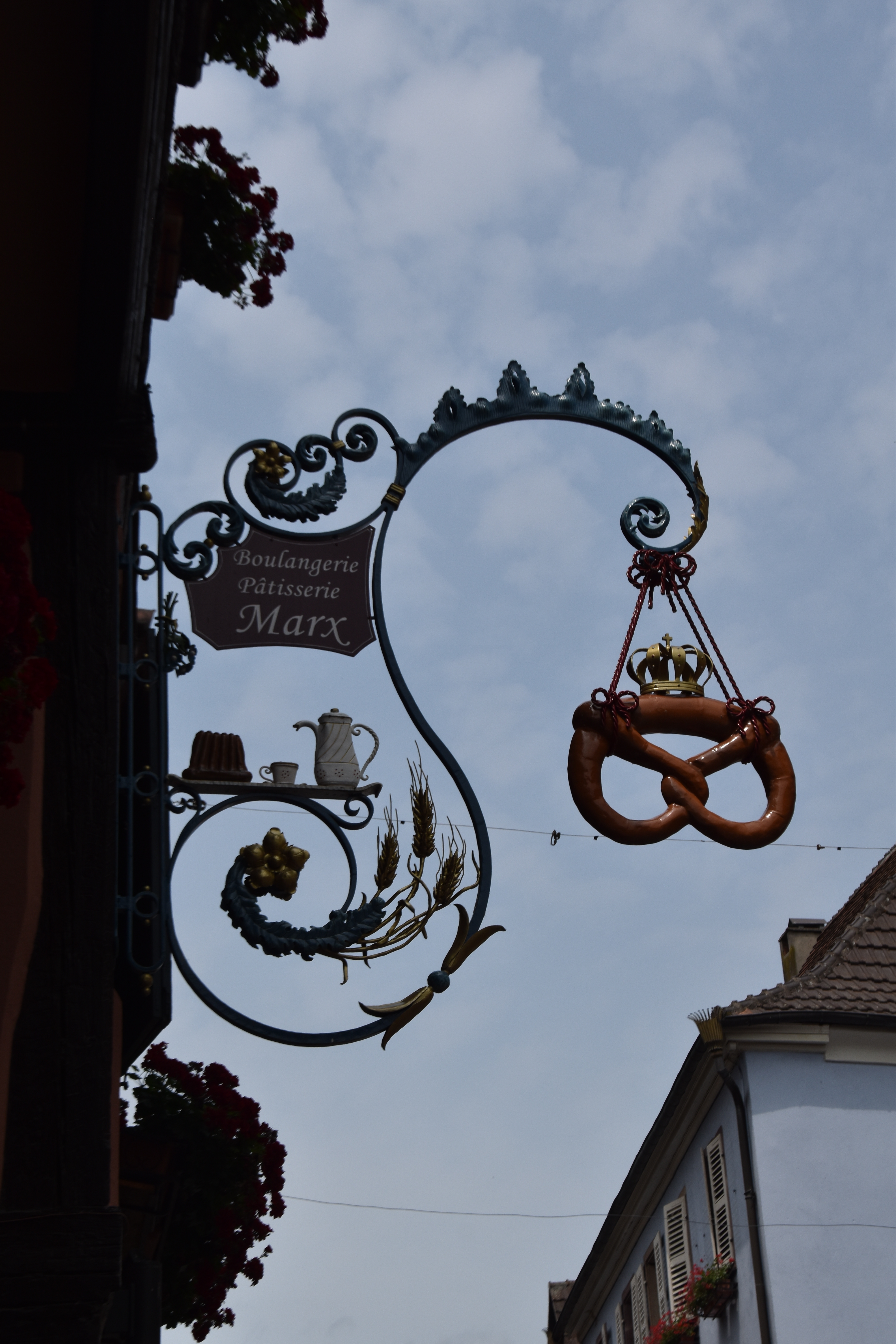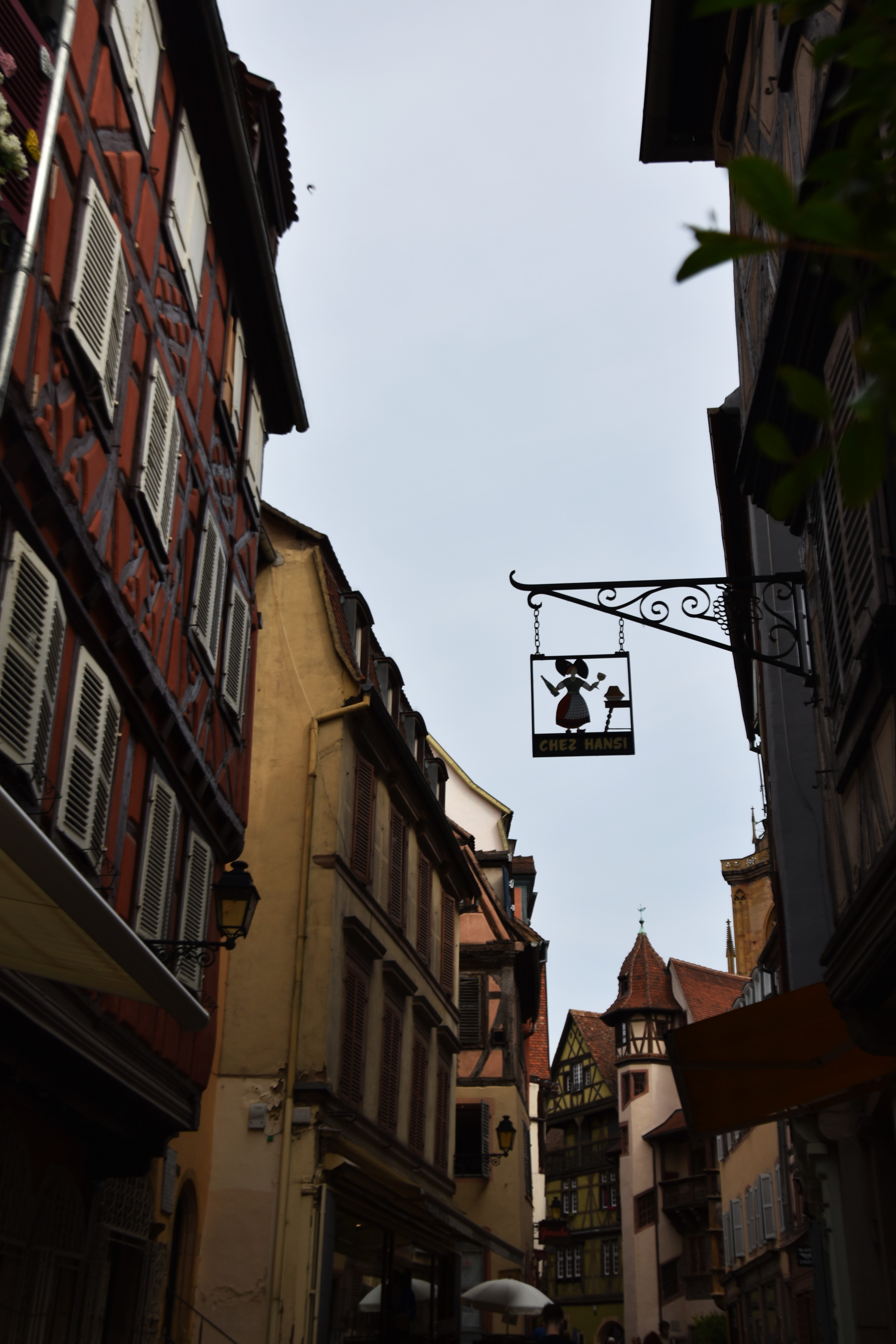 The second town that my neighbor recommended was Eguisheim so it merited a stop. They have employed the Hansi characters to good ends here too…..