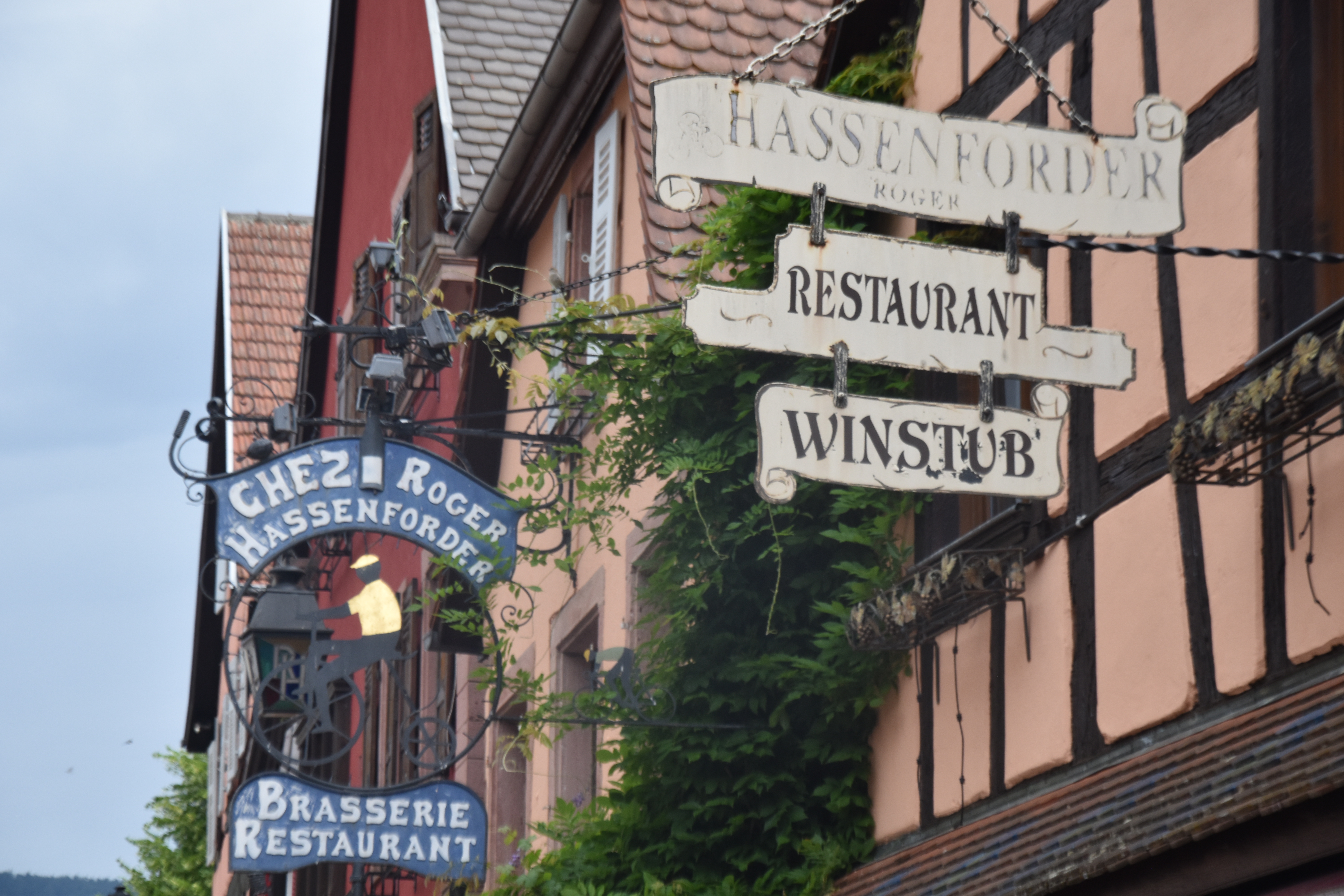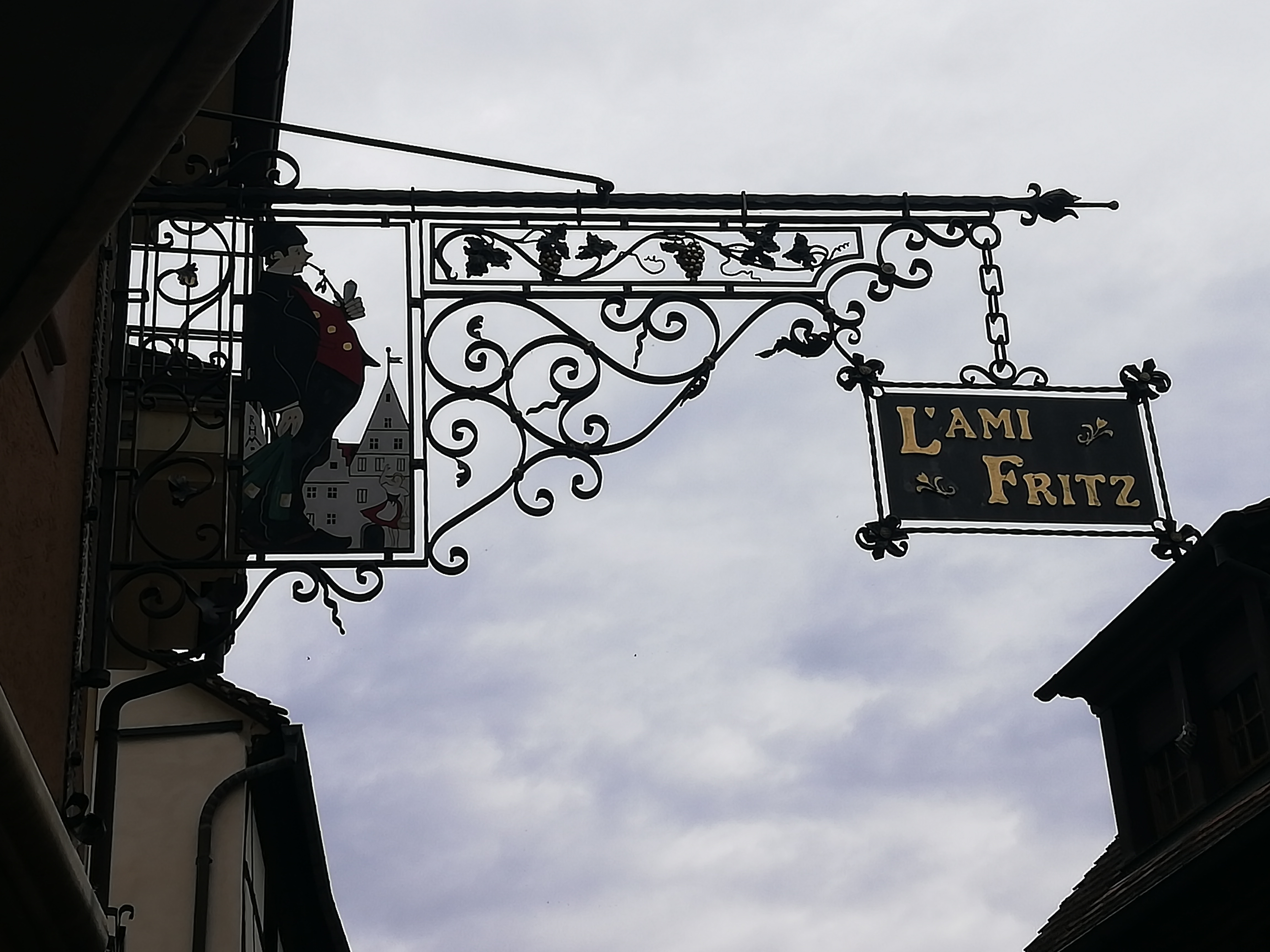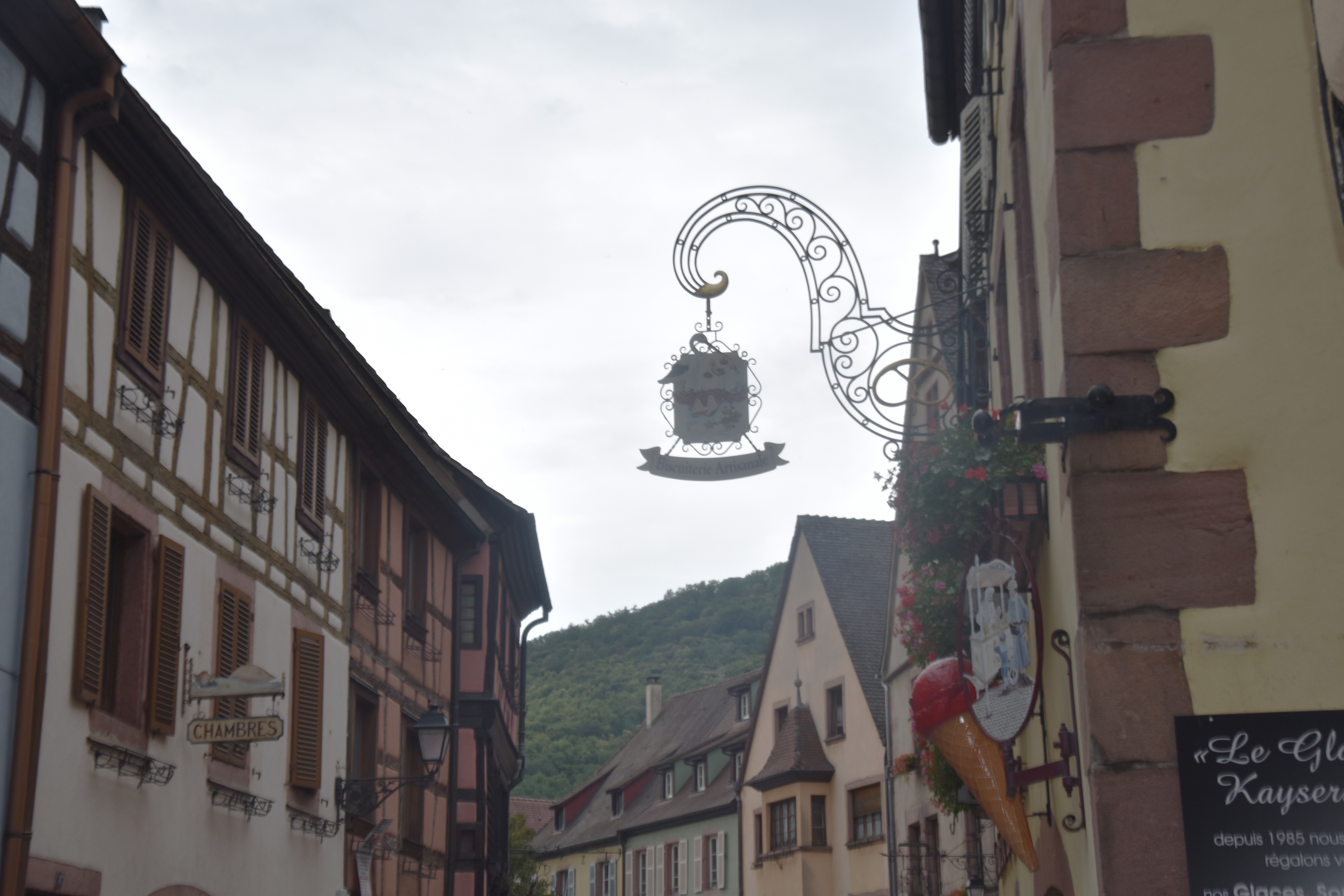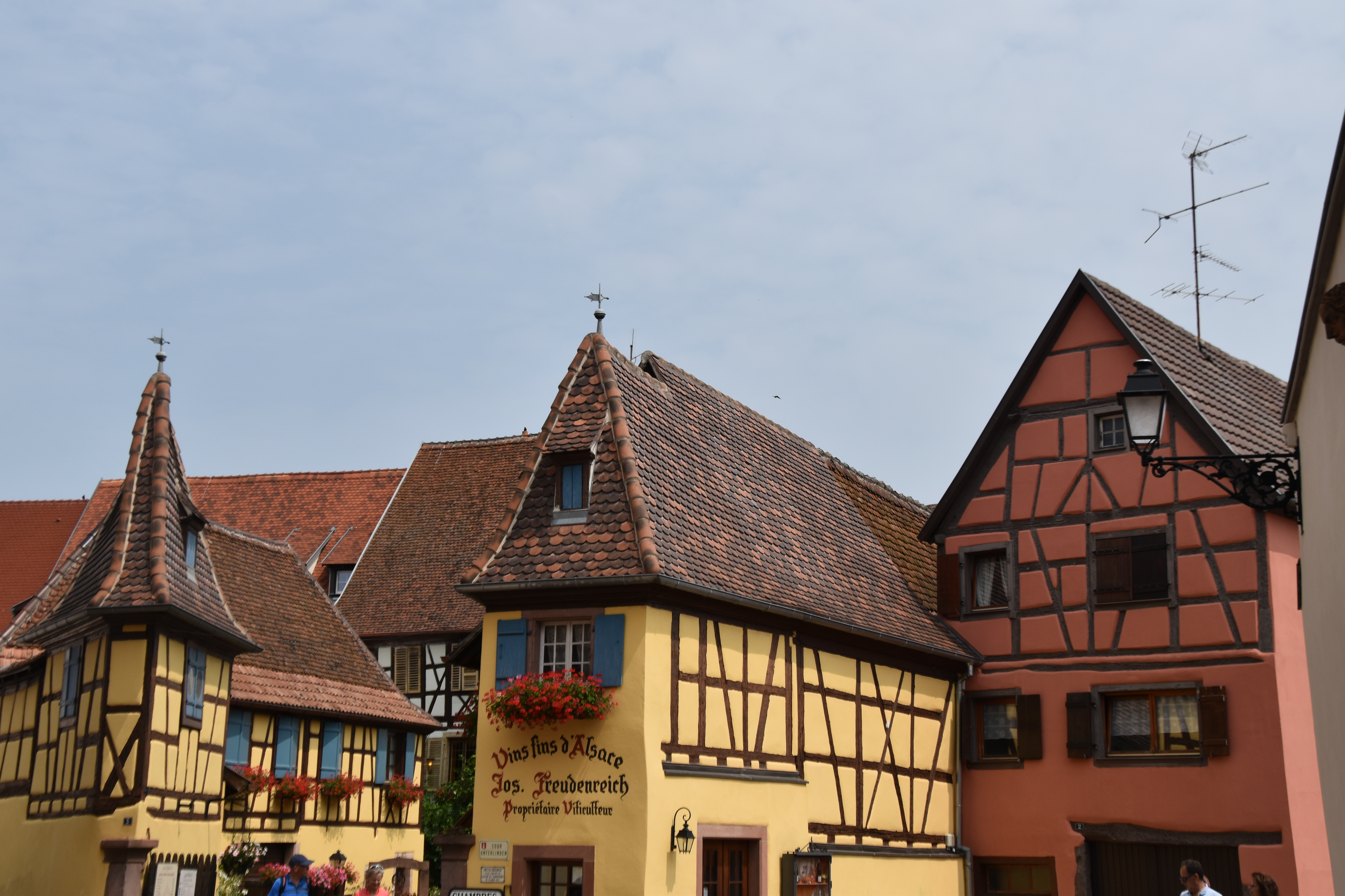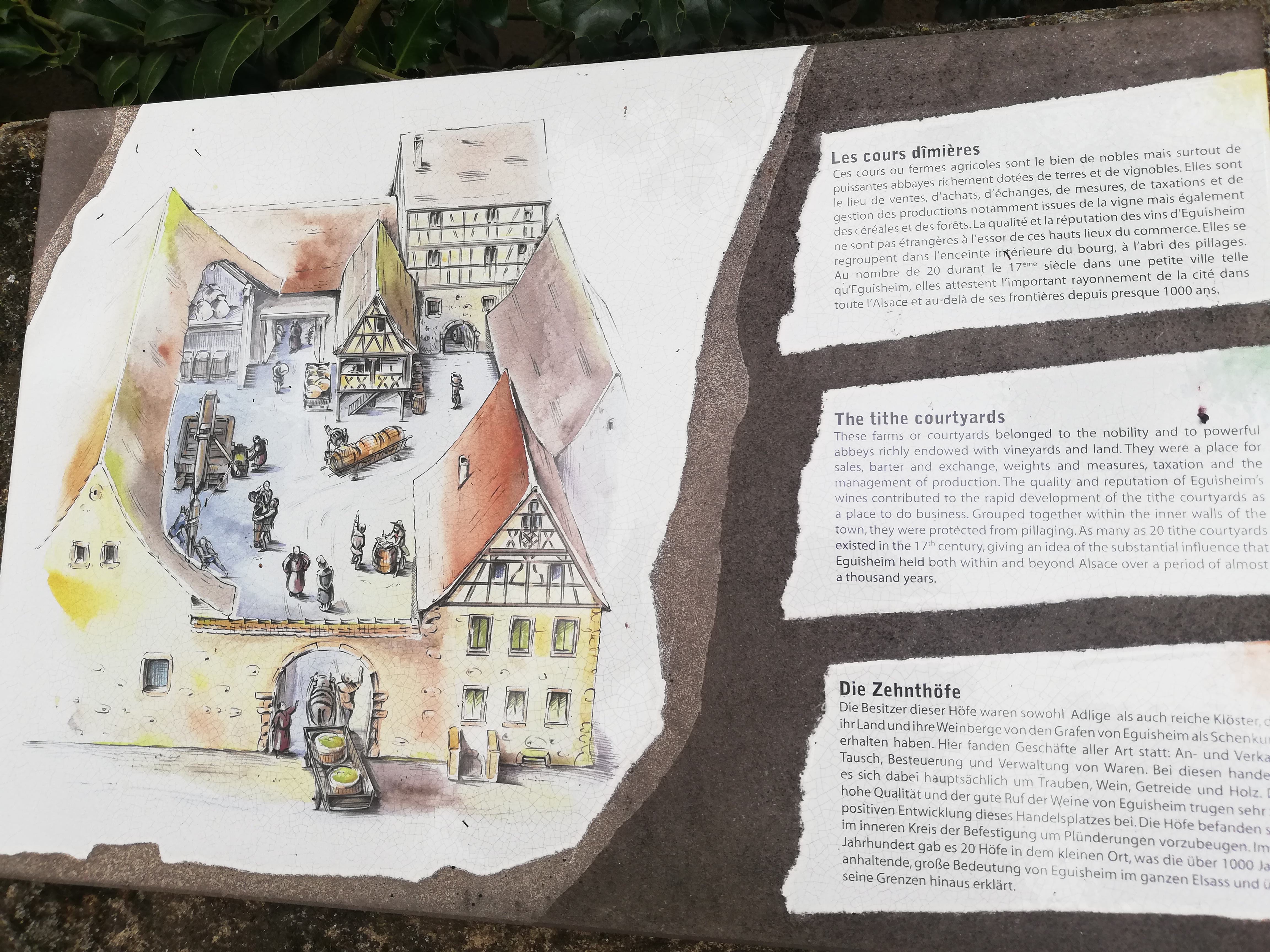 The second town that my neighbor recommended was Eguisheim so it merited a stop. They have employed the Hansi characters to good ends here too…..