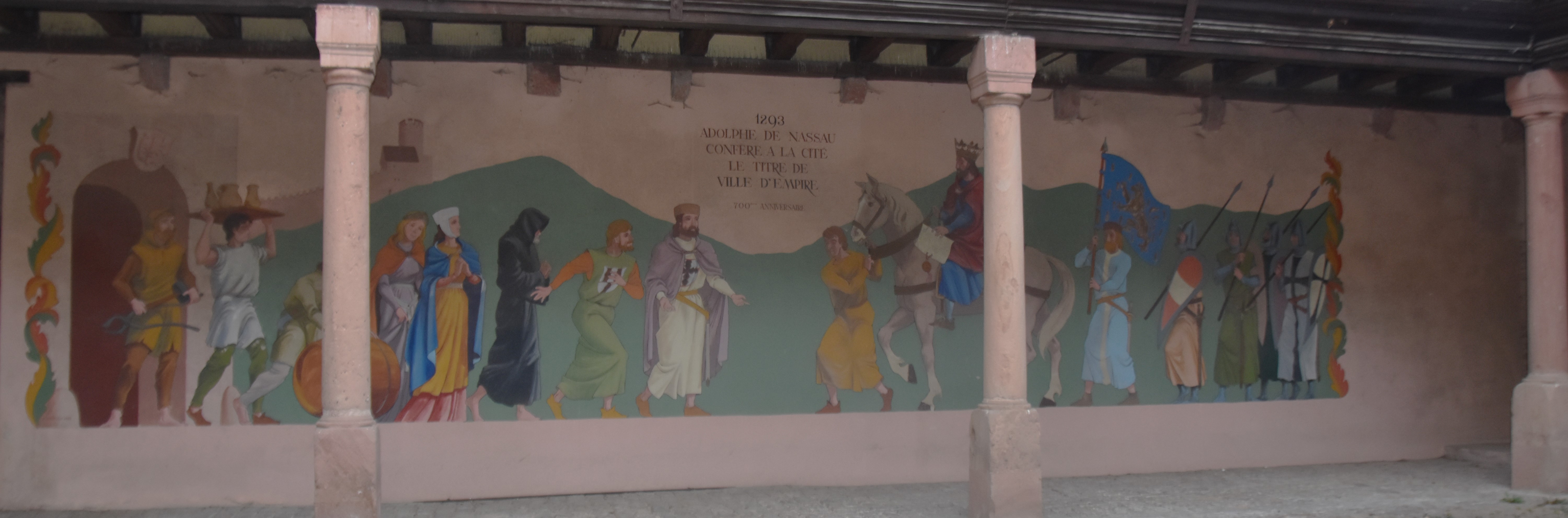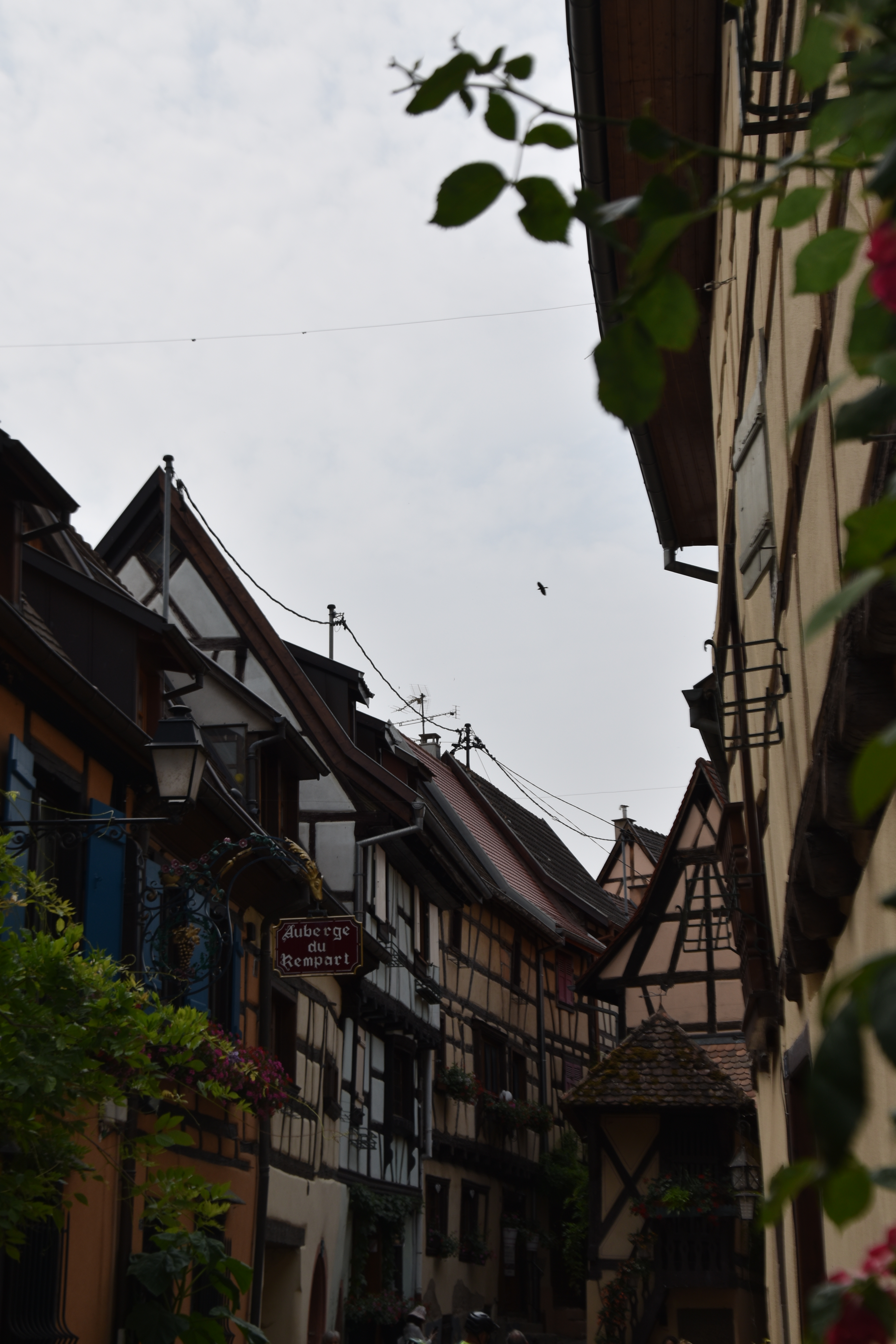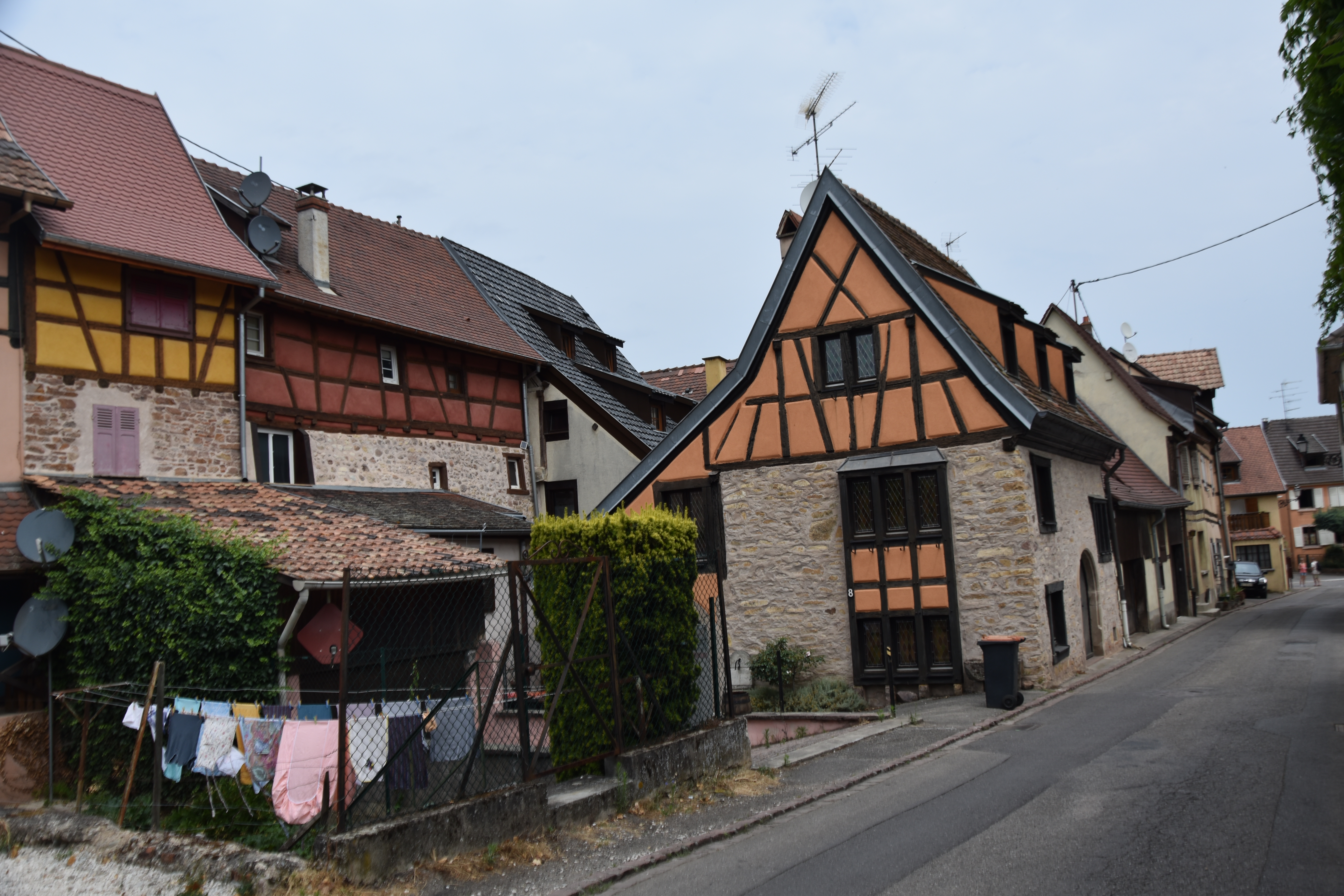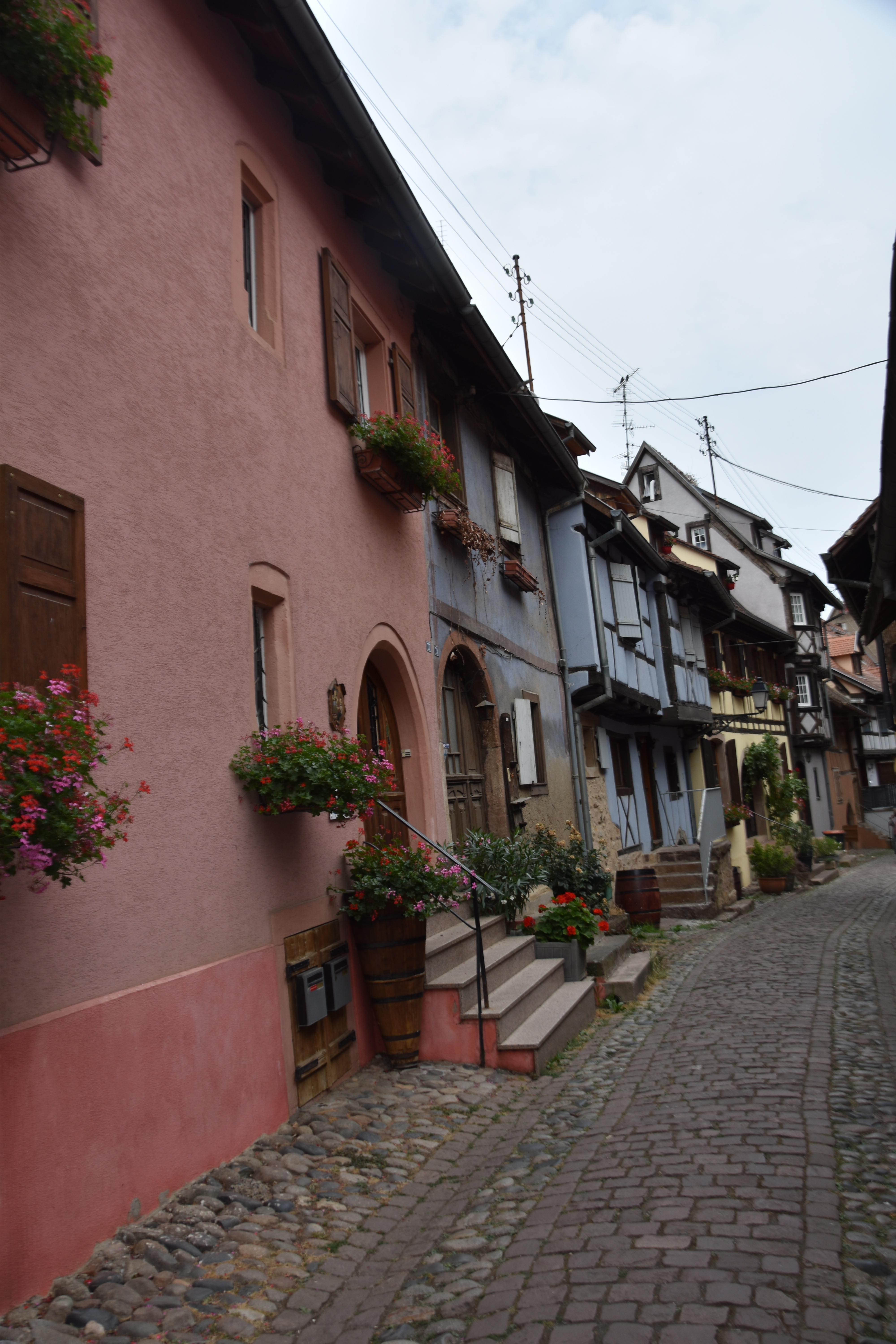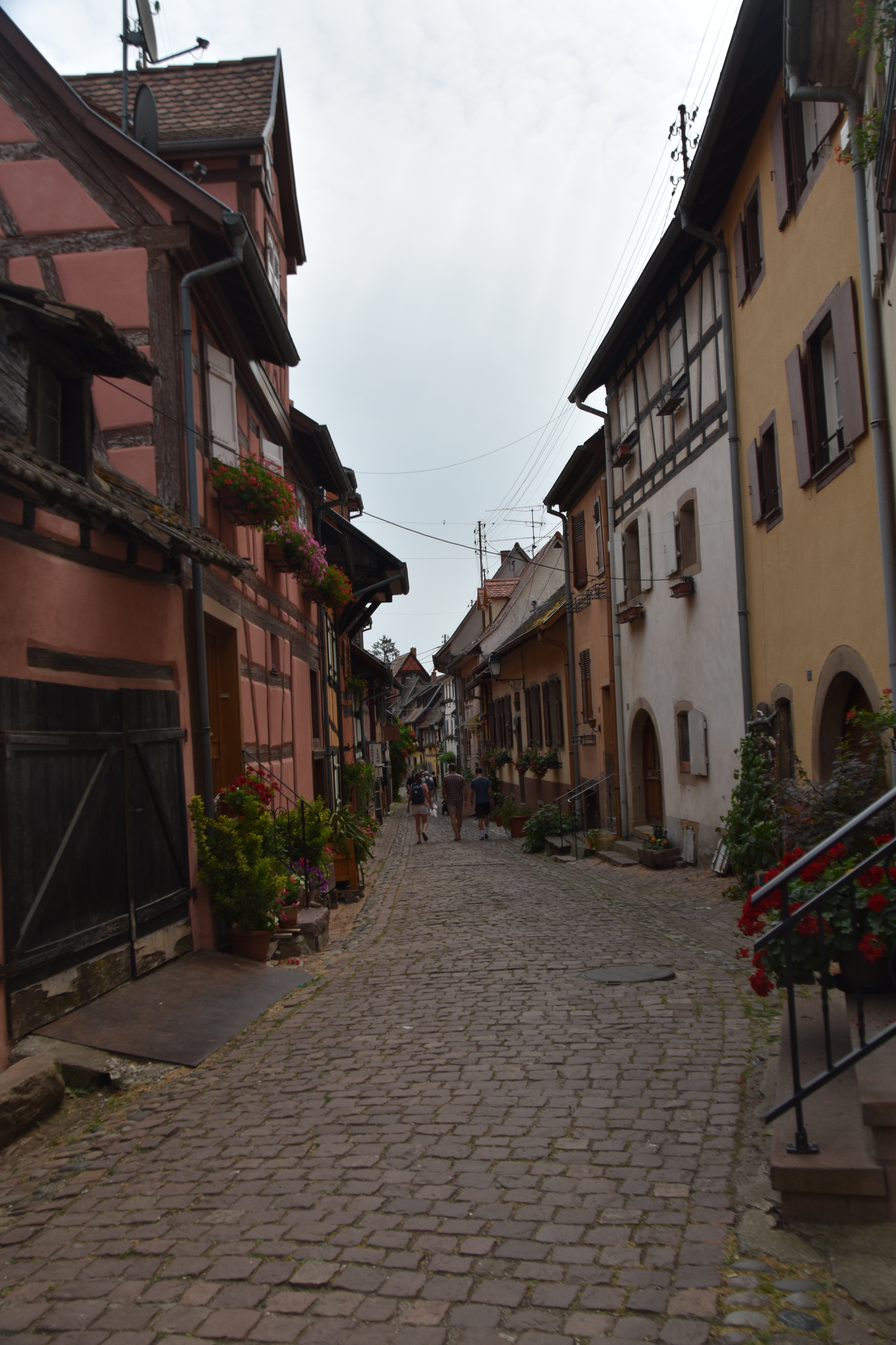 The second town that my neighbor recommended was Eguisheim so it merited a stop. They have employed the Hansi characters to good ends here too…..