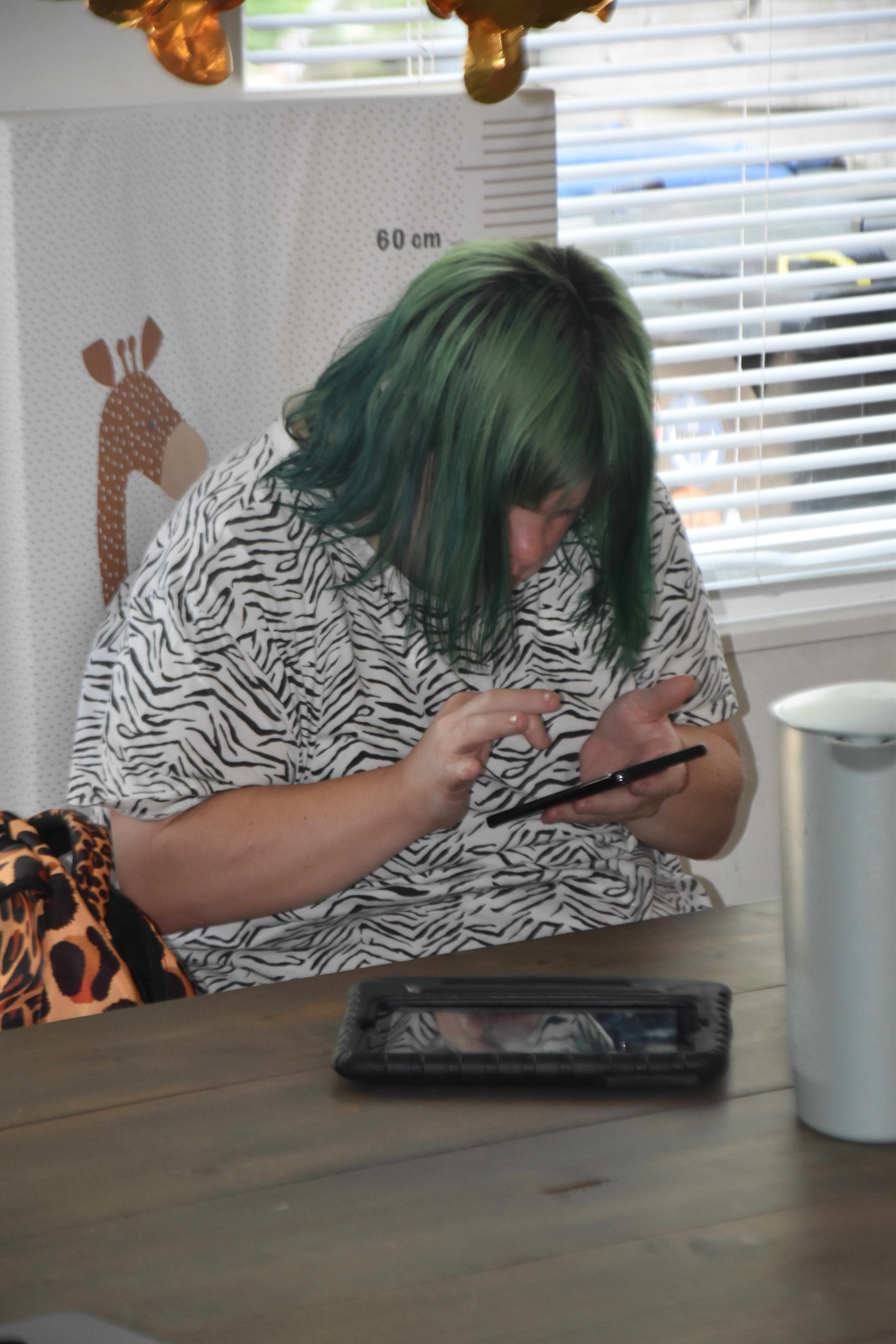 Meanwhile Myrel is occupying herself as any young person does today….on her phone!