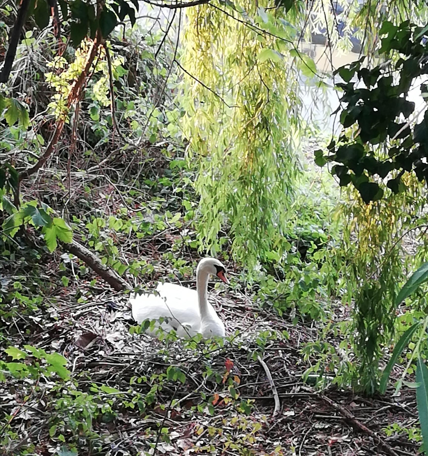 Urban Swan spotted nesting neat to the canal road bridge obviously confident enough that she can deal with any passing menace!