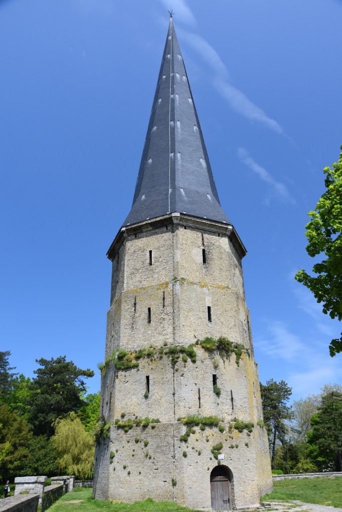 There are attractive main and postern gates, a donjon and what is labled as a “pointy tower”!