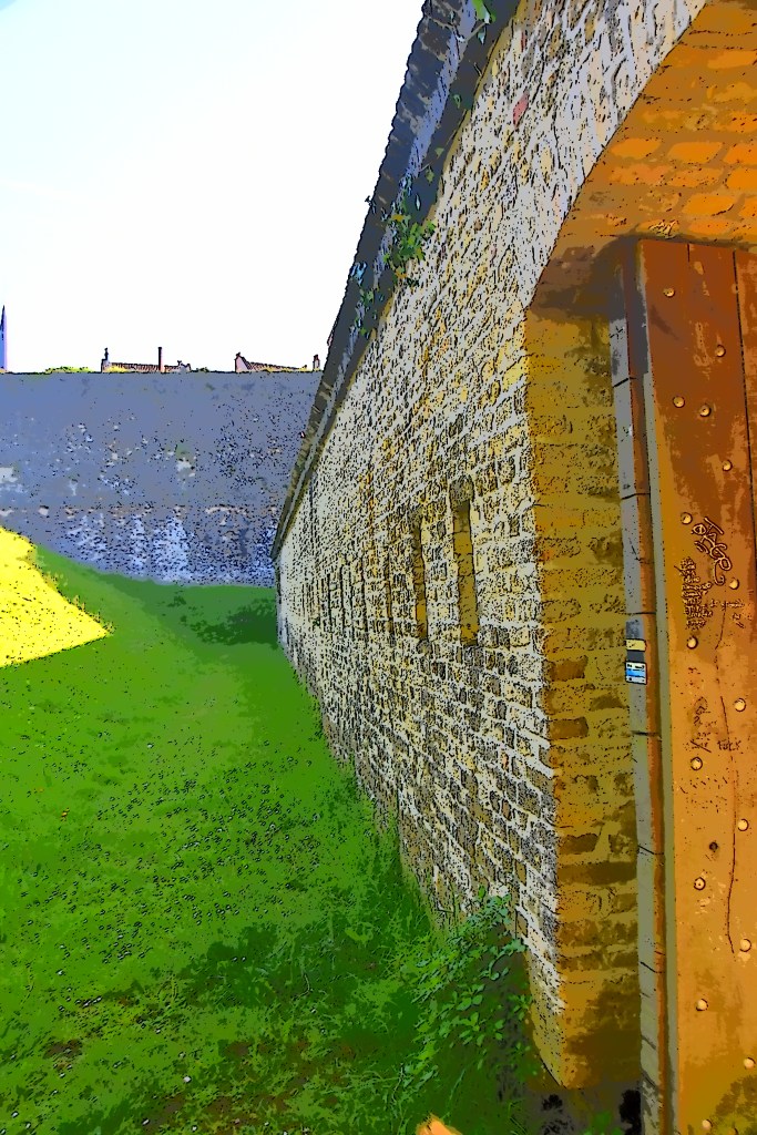 Our late afternoon walk revealed more of this towns impressive defences. Between the Inner and outer walls is the moat, still clearlr disernable in places, and multiple tunnes to gain access. There is a firing wall with angles firing slots to cover approaches from all sides.