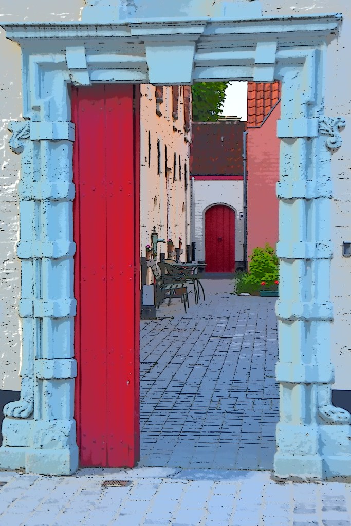 The top right is the tour boats in which one can take tours of the city from the canals. The middle a glympse into one of Brugge’s many secret courtyards and the one on the right is what would be known in England and Alms Houses
