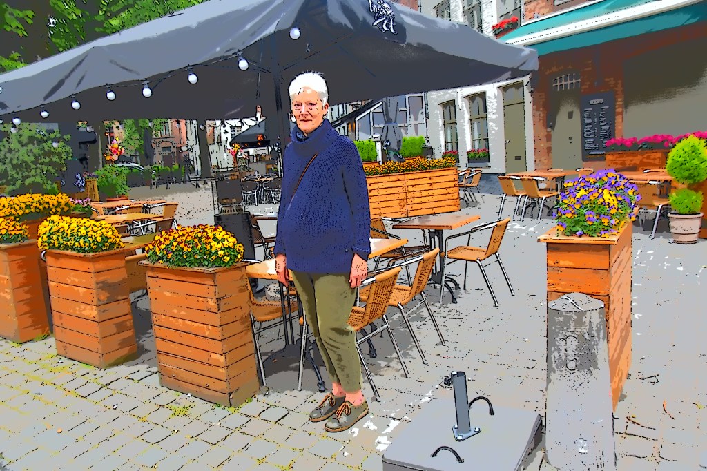 After settling back into the Aire at Geertruidenberg we went off to explore the old town.There is a very impressive large open market square lined with Lime trees behind which are handsome, well restorred old houses. I was right about householders purloining pavement space and several were sitting outside their houses, drinking beer with their dog or reading!