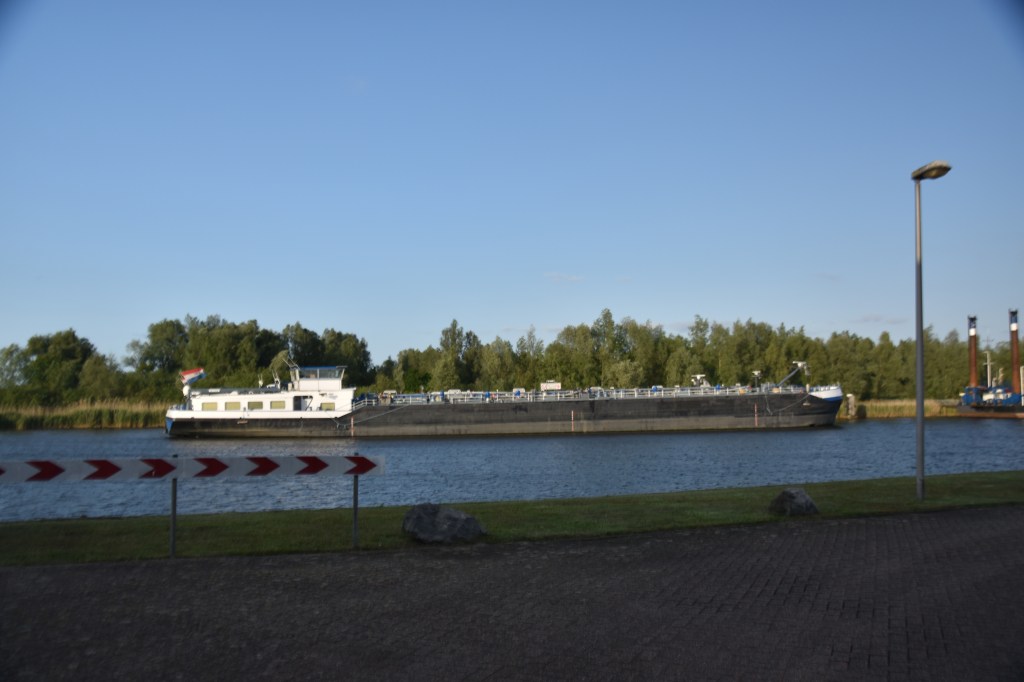 The Aire is large, new, shiney and quite lux. Euro 20 plus tourists taxes and electricity consummed. There are loos, showers and full bathrooms. Everything is well laid out and the individual site are a good size. My site faces onto the Maas canal and there is a lot of very large barge traffic passing on a regular basis. This one is carrying 32 shipping containers!