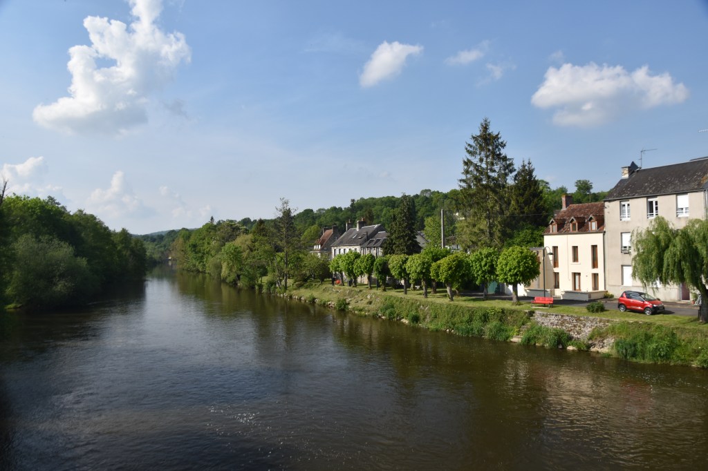 The Aire at St Jean-sur-Mayenne was worth oushing through for. It is right on the river with boat moorings on the bankm no boats there at the mement. There are toilets and showers and nice hedged in shaded plots with individual electricity points and all this for Euro 12.55pn! Cassidy and I had a walk up to the unremarable village and then out along the tow path before settling in for the evening.