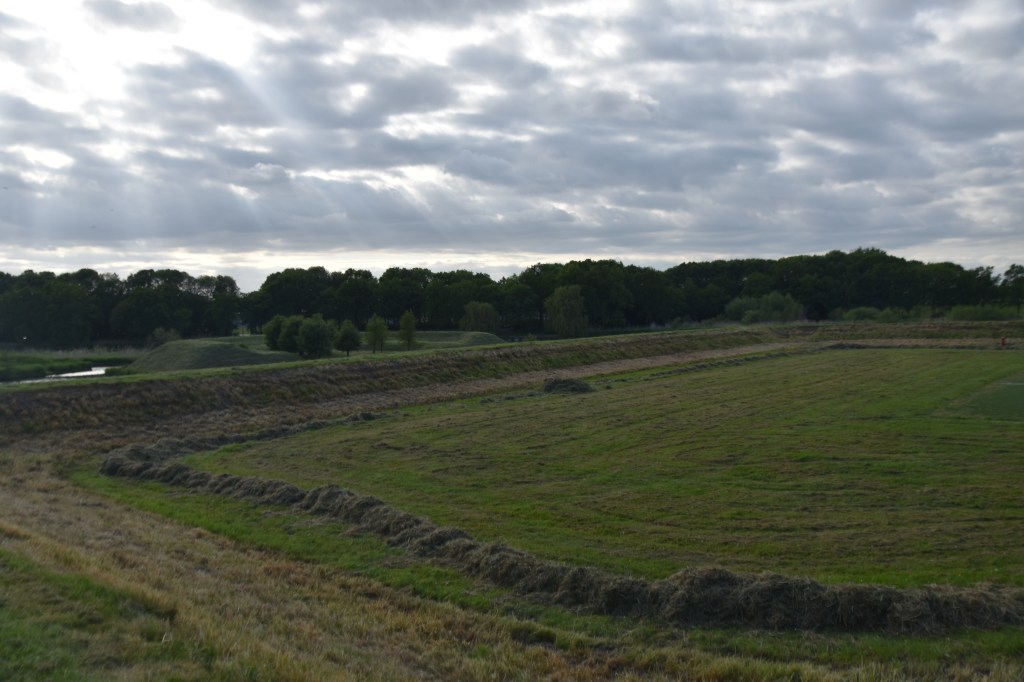 There is not much evidence left of the walled city appart from the barely discernible star point with canon mounted and the powder magazine set in a protective earth burm which might or might not be another star point.