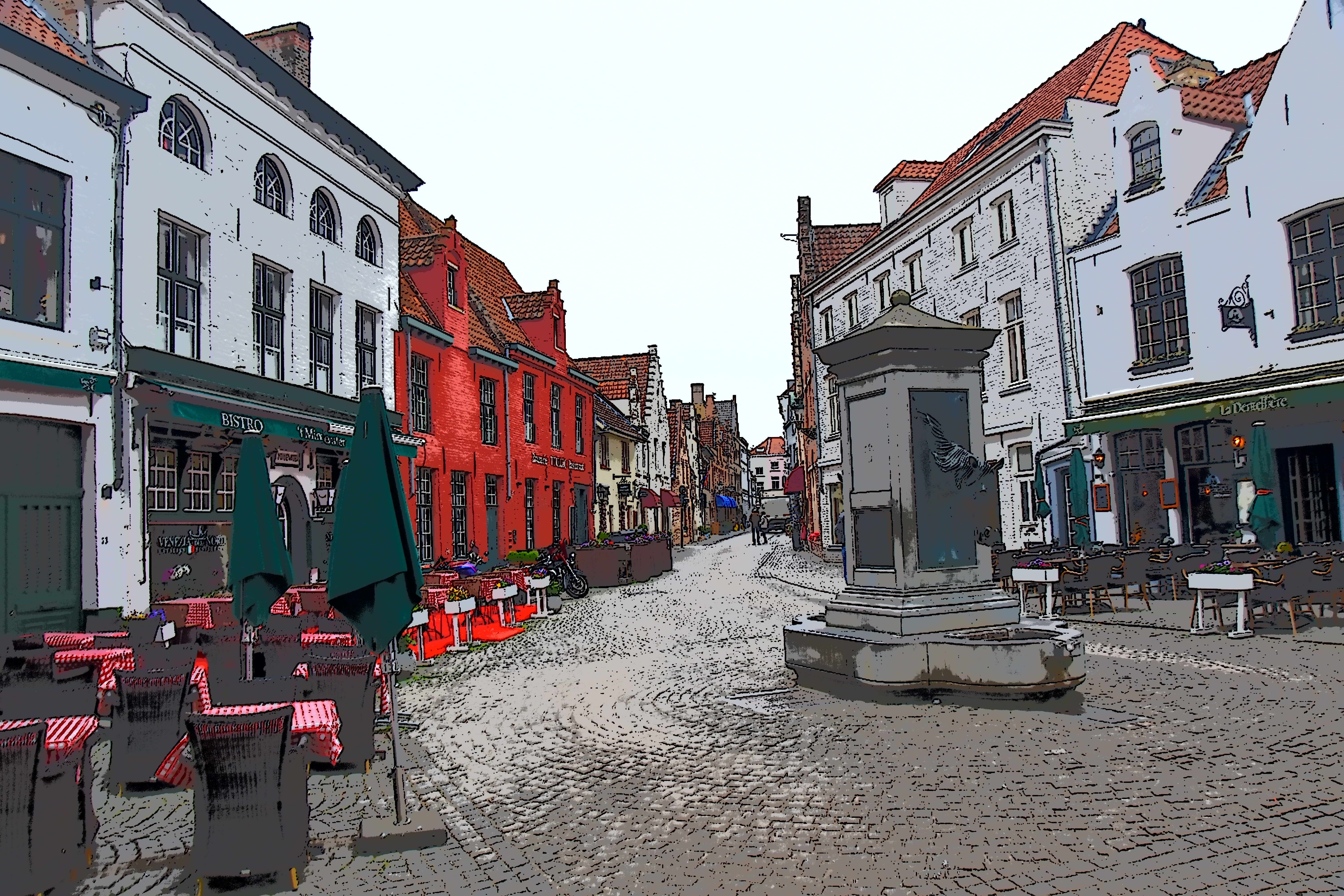 The top right is the tour boats in which one can take tours of the city from the canals. The middle a glympse into one of Brugge’s many secret courtyards and the one on the right is what would be known in England and Alms Houses