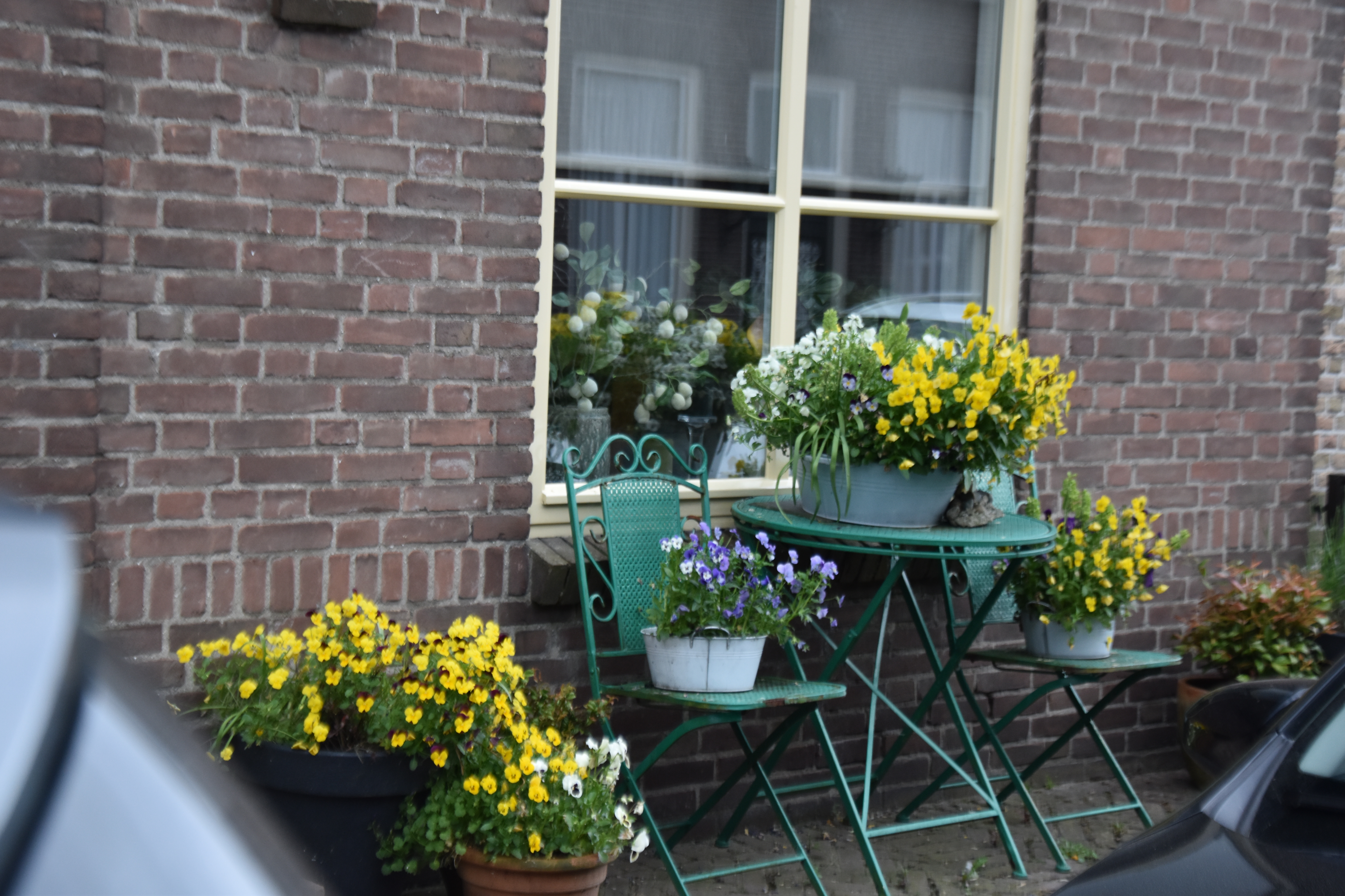 A great example of the Dutch “Occupy the Pavement” movement, down to sun blinds!