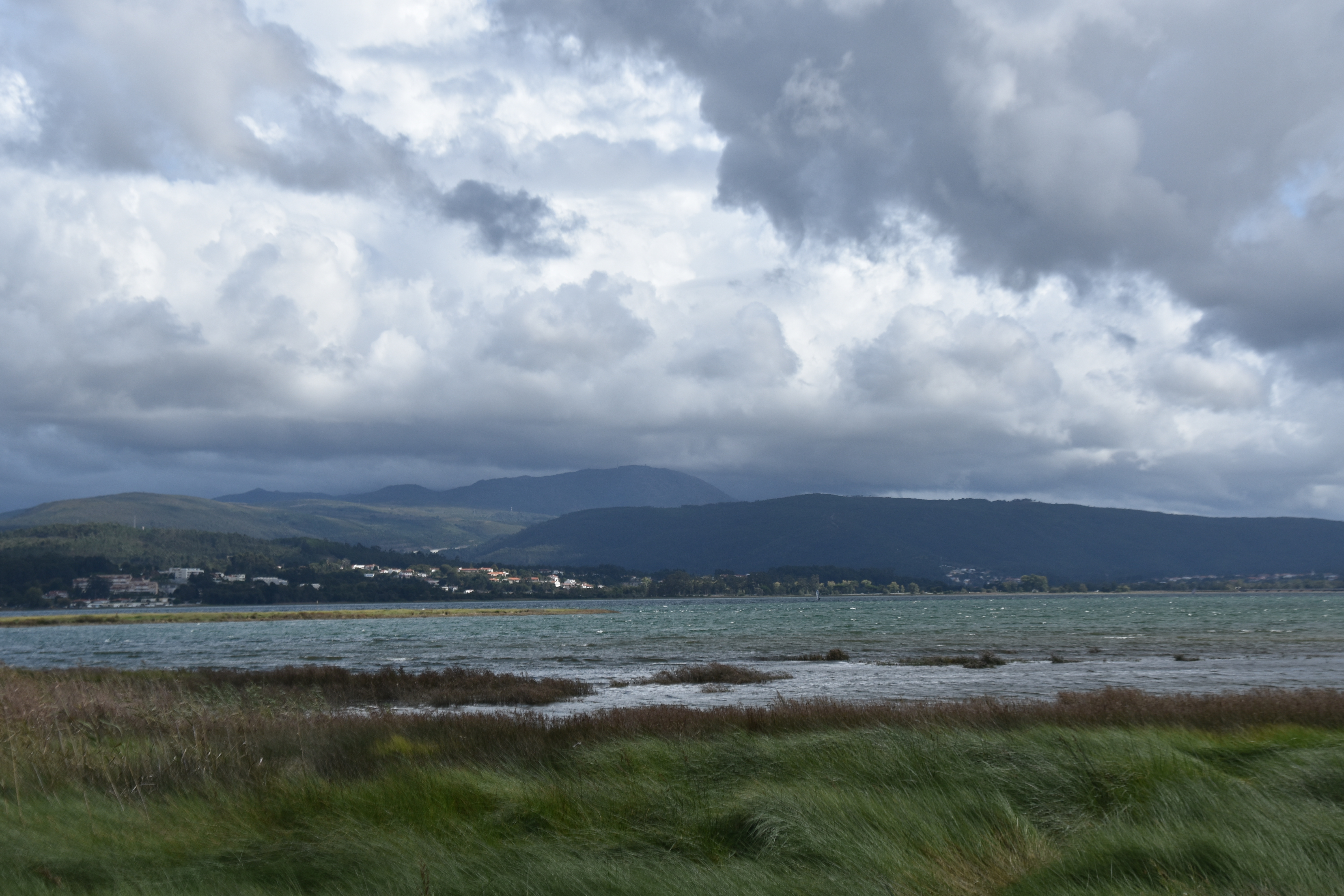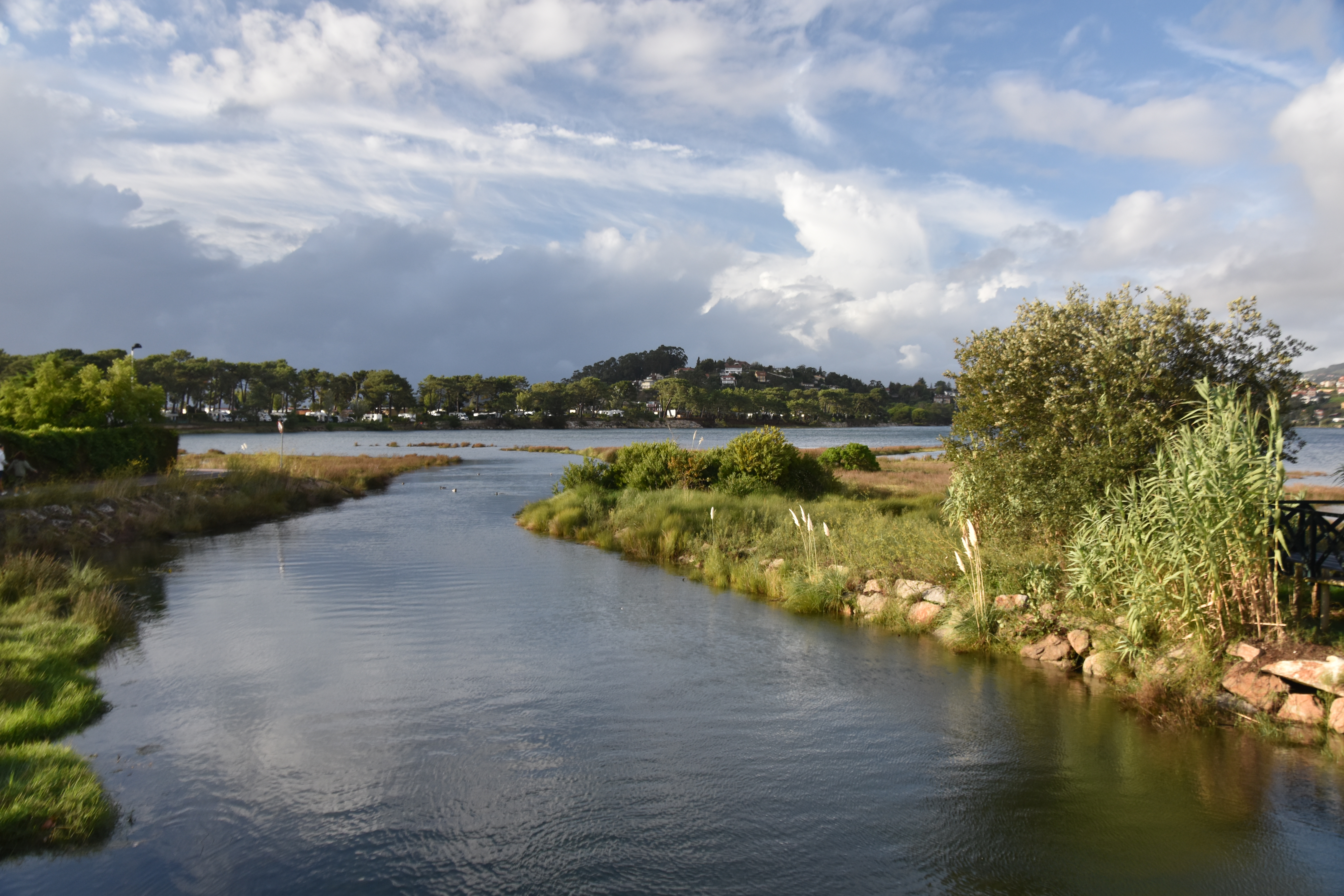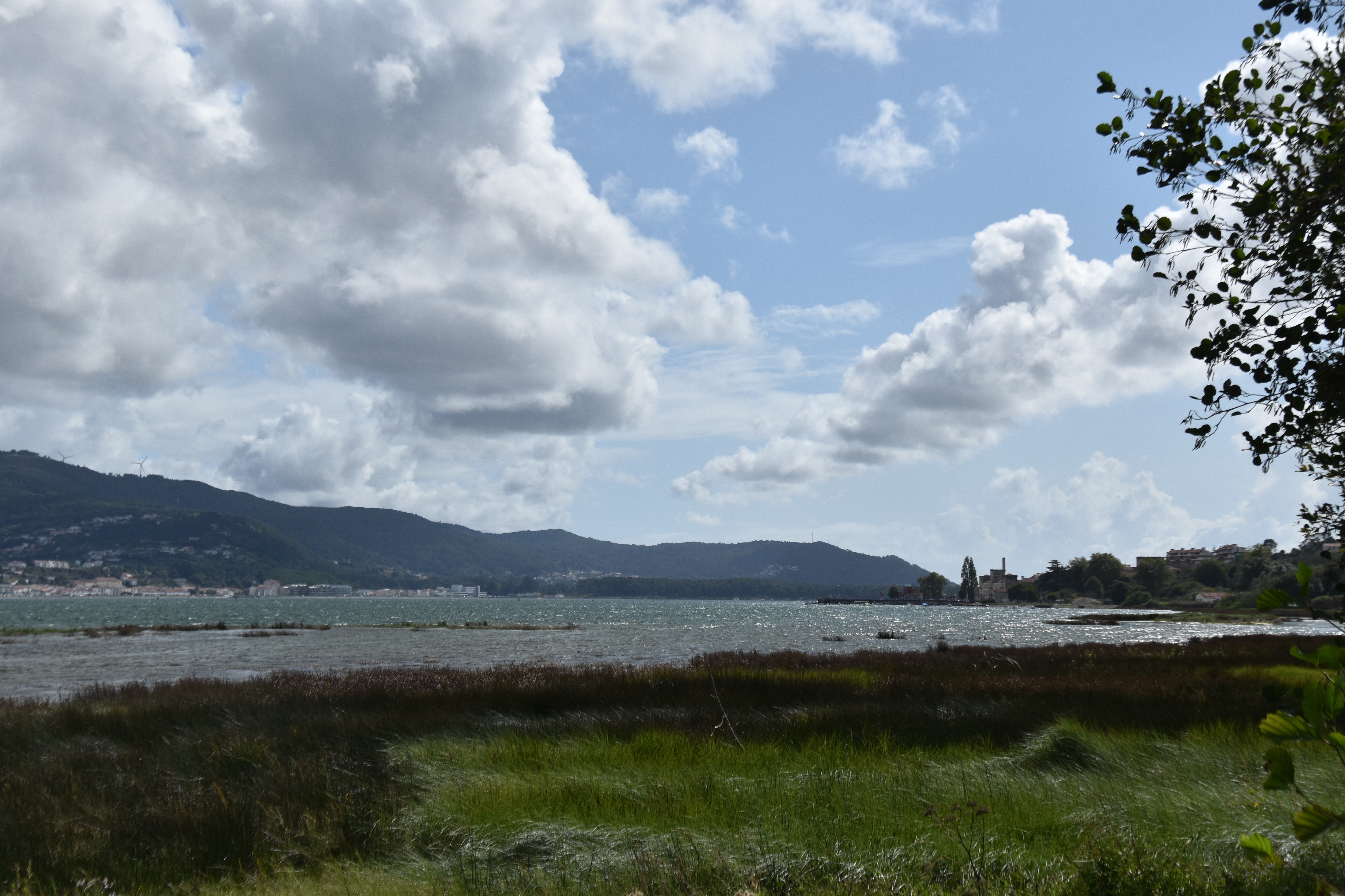 The view from the camping area is out over the estuary of the Rio Monh to Portugal.
