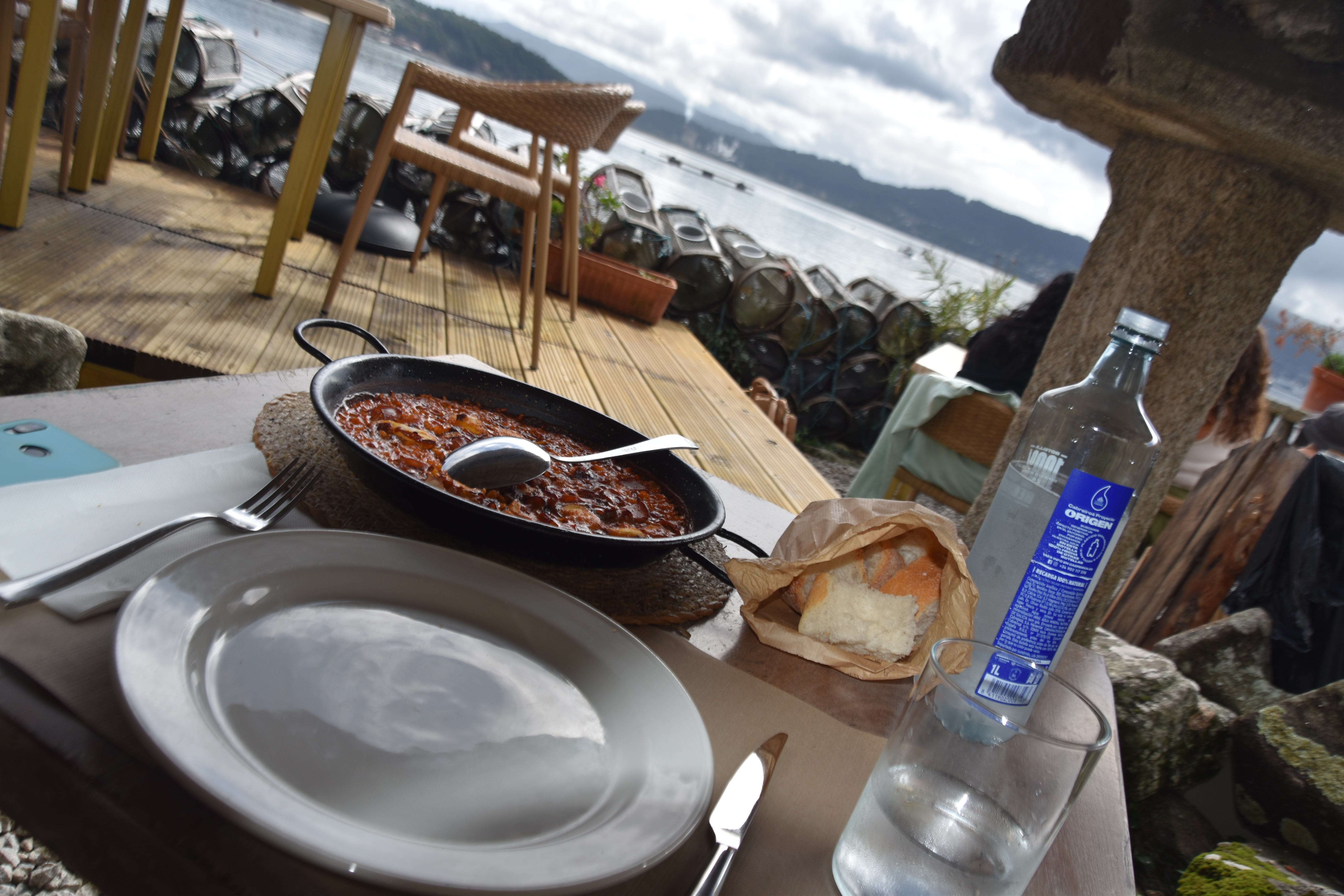 I stopped at the illustriously named Leucoina – Taberns Restaurante el Rustico for my lunch of Paella which was very good. I chose to sit under one of their Horreos in case the skys opened again!