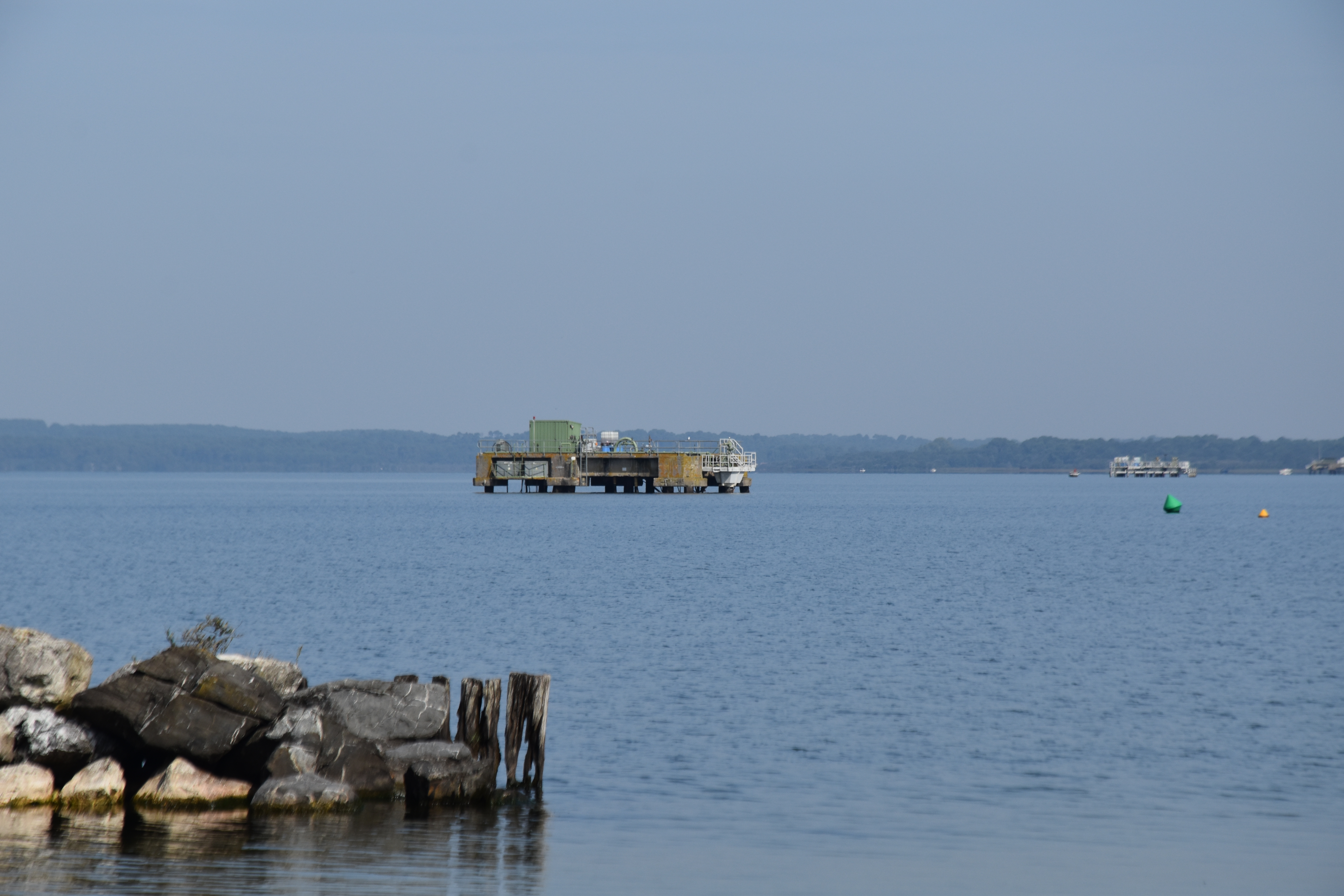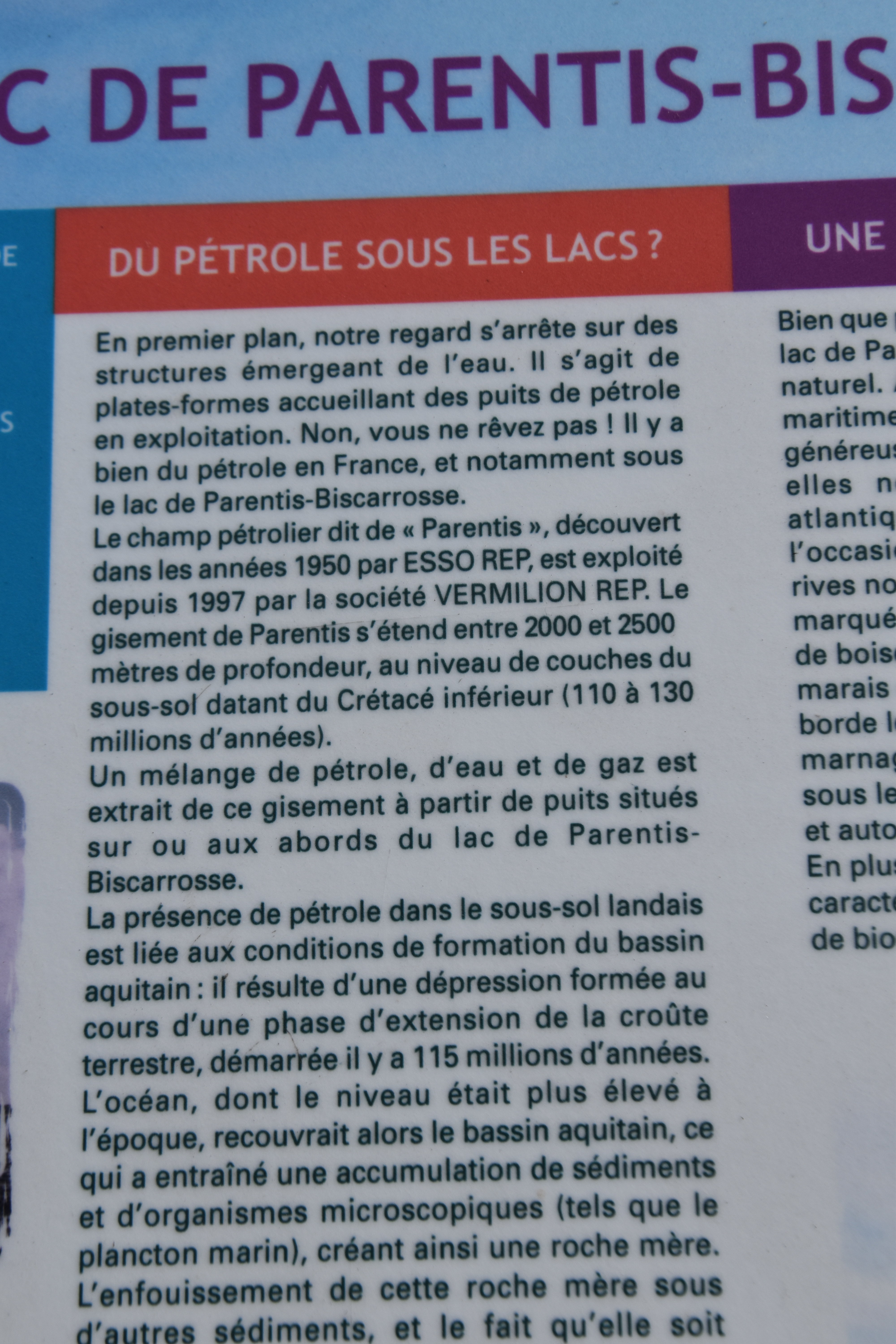 Oil rigs, would you believe. Oil was discovered here in the 1950’s by ESSO . It exists between 2000 and 2500 meters deep and is in a subteranien basin created in the Cretacious period some 110 to 130 million years ago. There is a mixture of Petroleum oil, gas and water. It is pumped to Bordeaux where it is refined. Well what do you know!