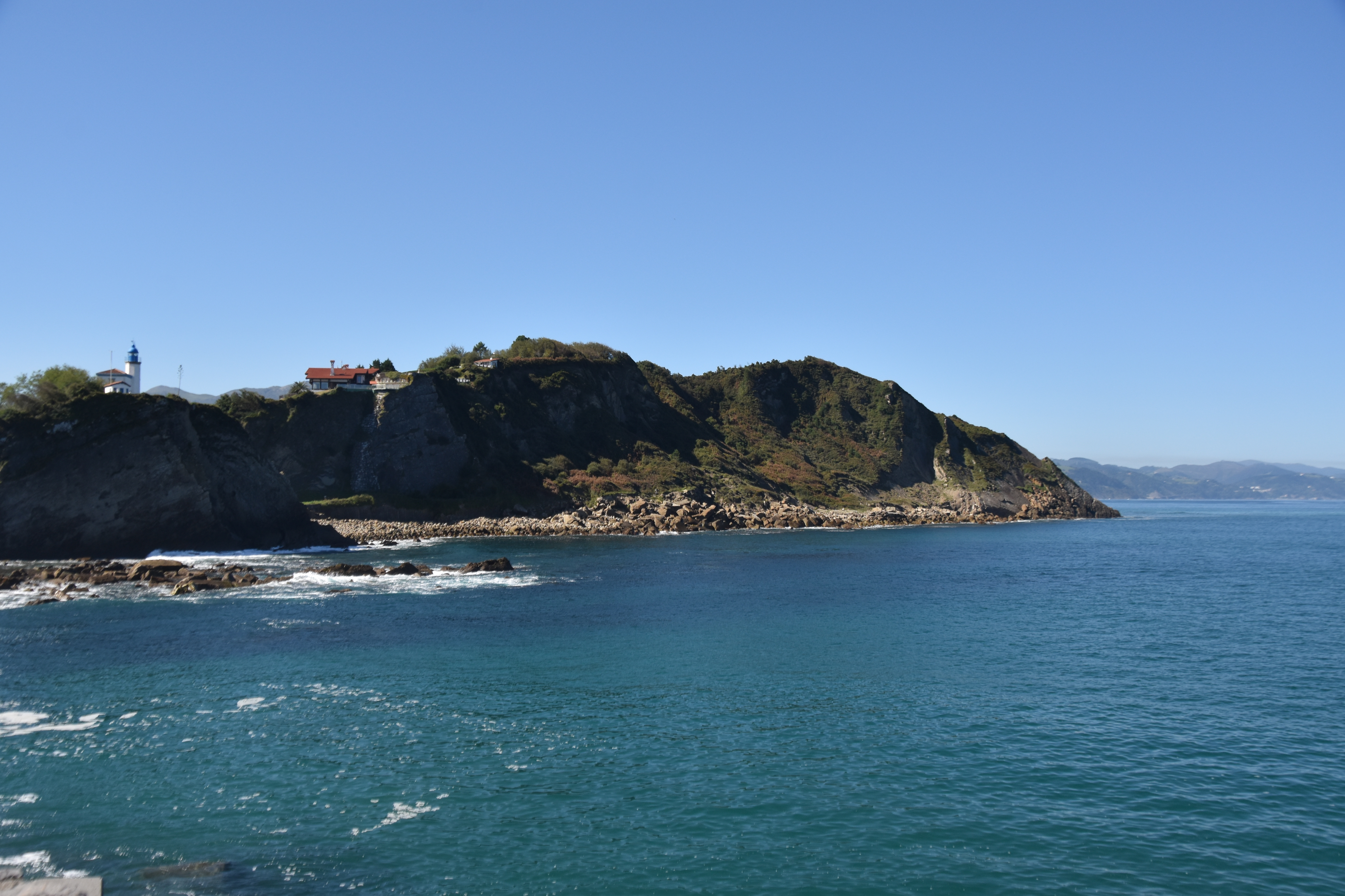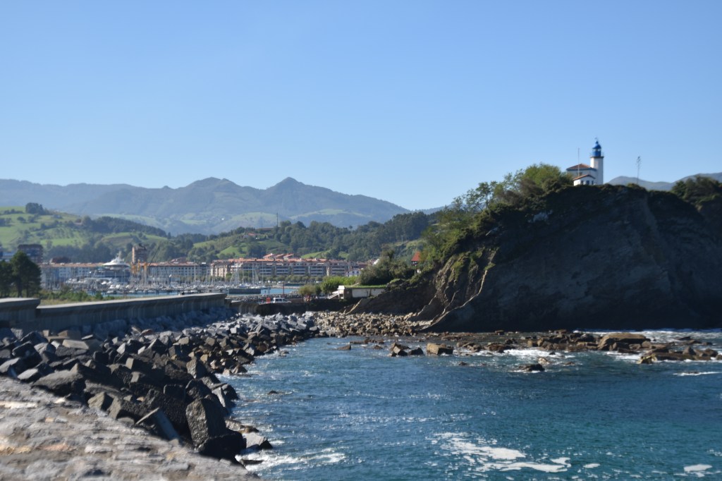 I chose Zumaia for the lunch stop which also gave us a good walk to the end of the enclosed harbour and back. There is a big secure harbour, a couple of sand beaches and a lighthouse. The water was very clean and clear, so much so that I could clearly see the fish.