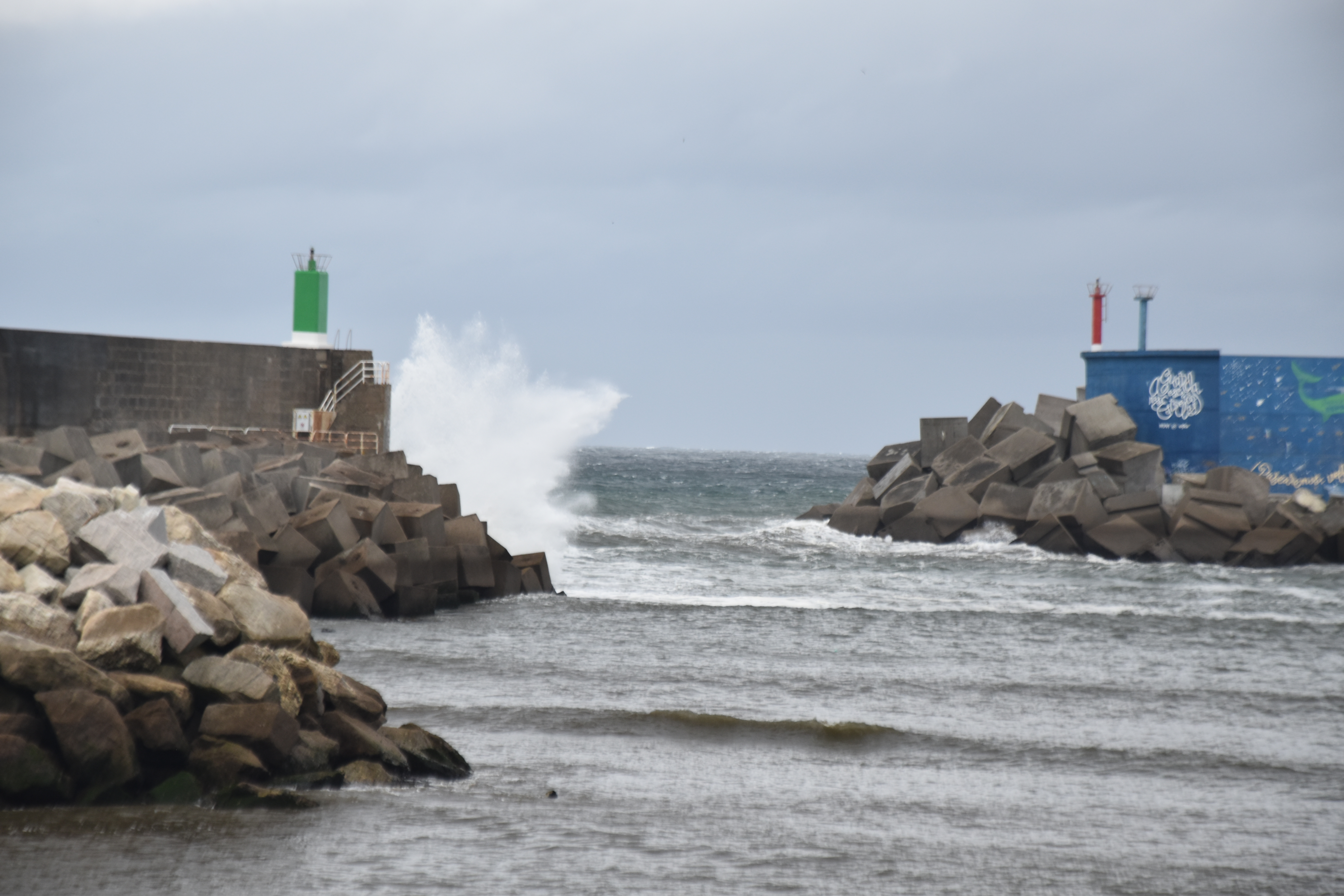 The inner and outer harbours are protected by the sea walls. The ominously wild Atlantic awaits beyond them.