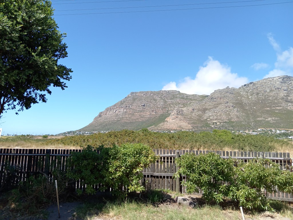I am staying with my good friend Rhain near Sandvlie and this is the view towards Muizenberg Mountain from her front gate.