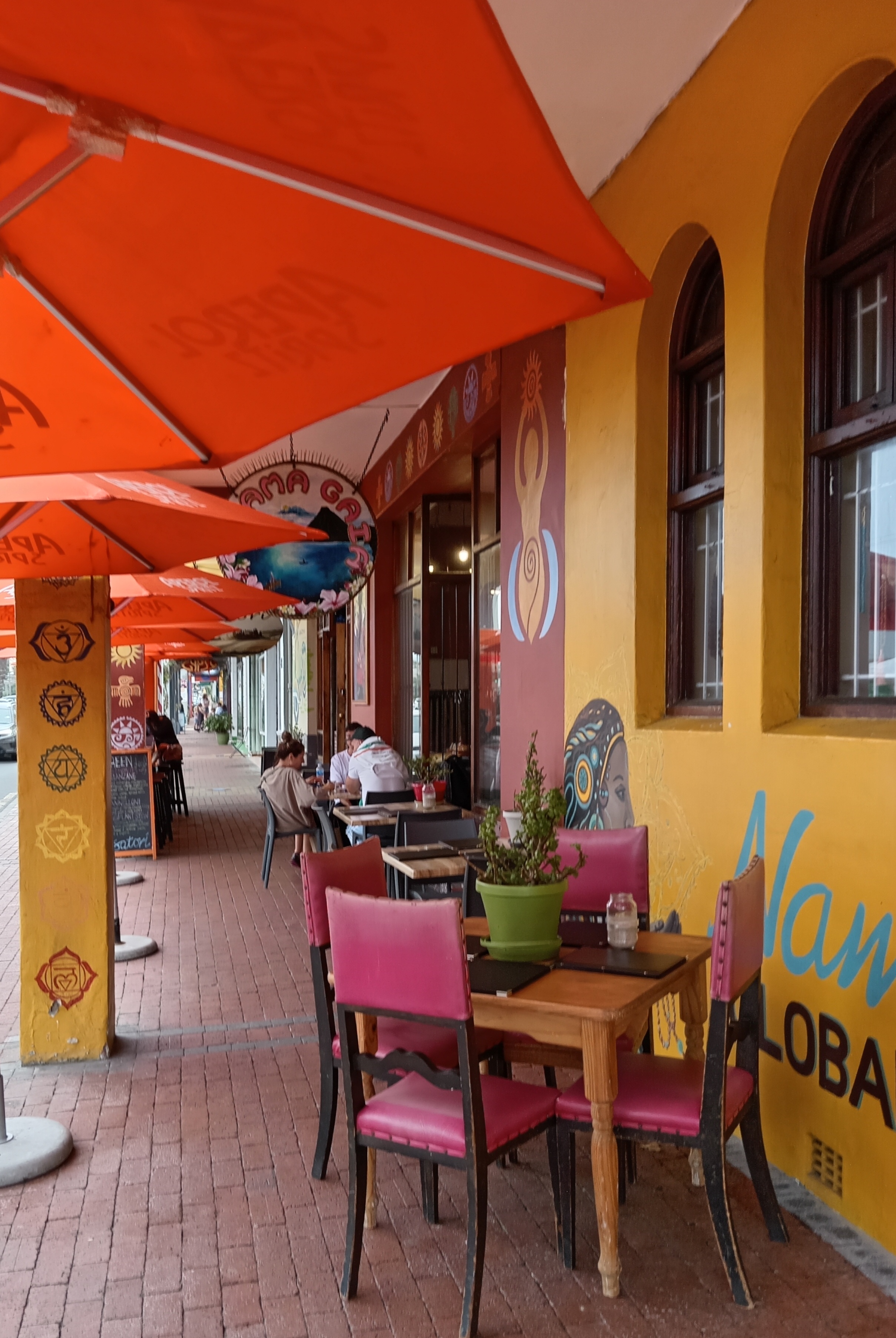 Back on Main road the colourful and busy boutiwues and cafes and the quirky Train Station.