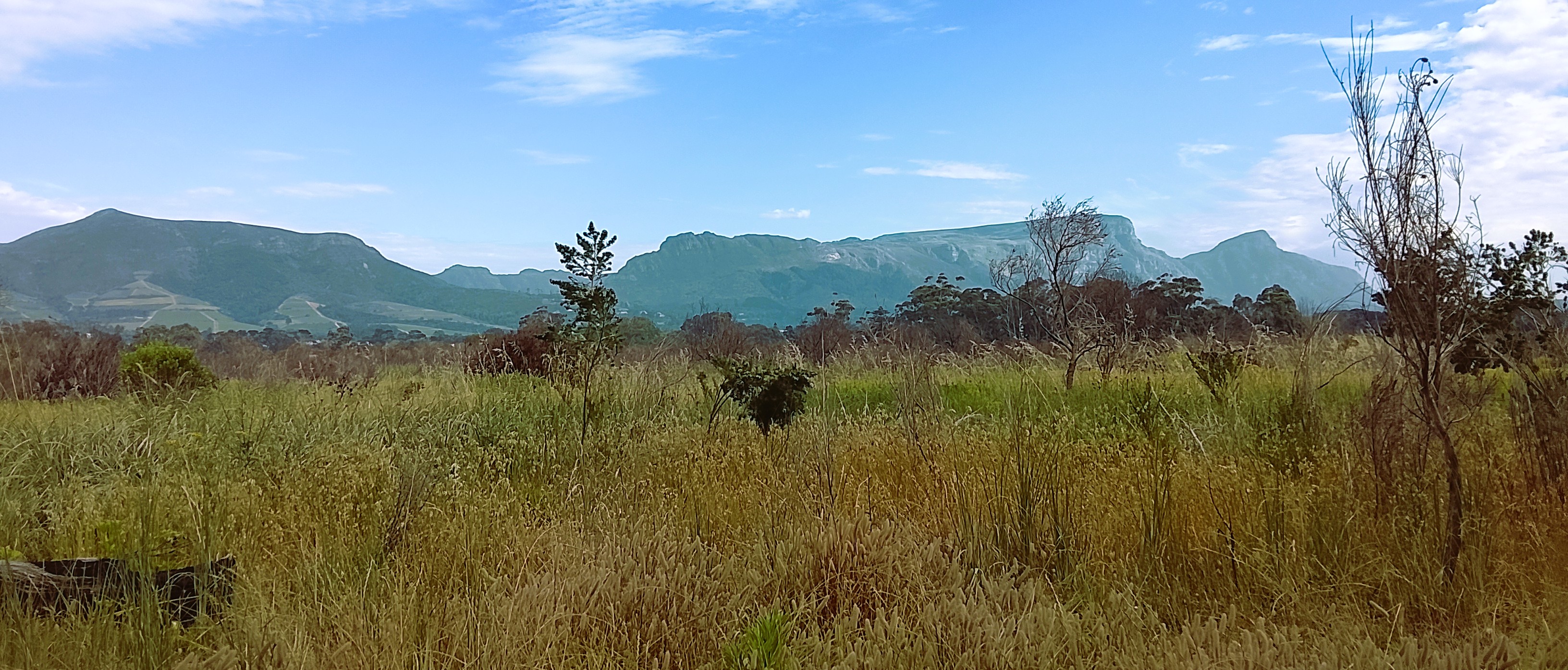 Top view up to Constantiaberg where you can just about make out the mast on the top. Difficult to believe that I have cycled up there more than once! And below the view of the back of Table Mountain.