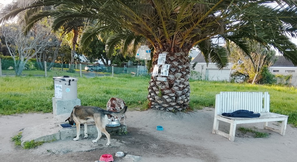 17th. In the last week Zara has ghraduated to the Dog Park. A bit further to travel but even if we go twice a day still cheaper in petrol terms than ZAR 400 per week for 4 hours in the Paddock. Again a really large fully fenced space organised by the community with poo bags, bins and a water point which we all fill bottles and bring to replenish. Here she is free to run and interact directly with other dogs and people and is getting better and better on the recall front.