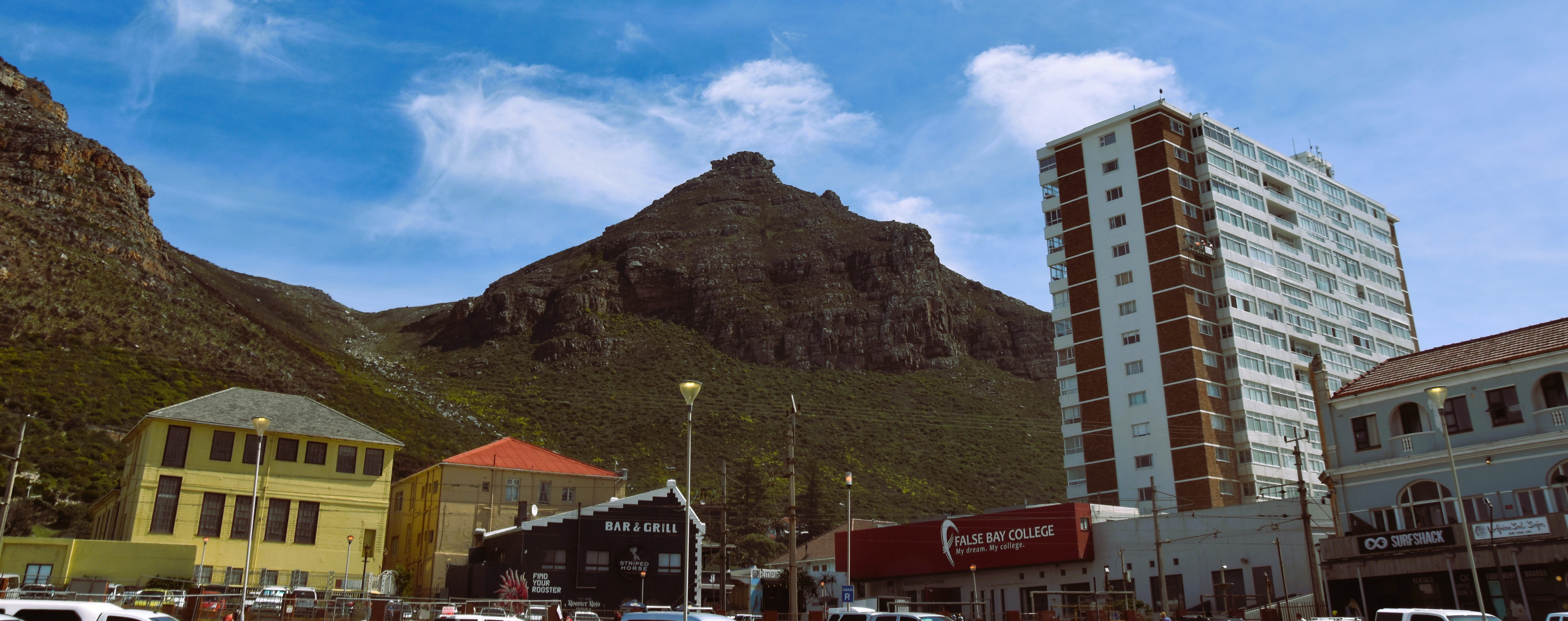 The surrounding environment where parking was at a premium, and there were plaenty of people enjoying the beach.