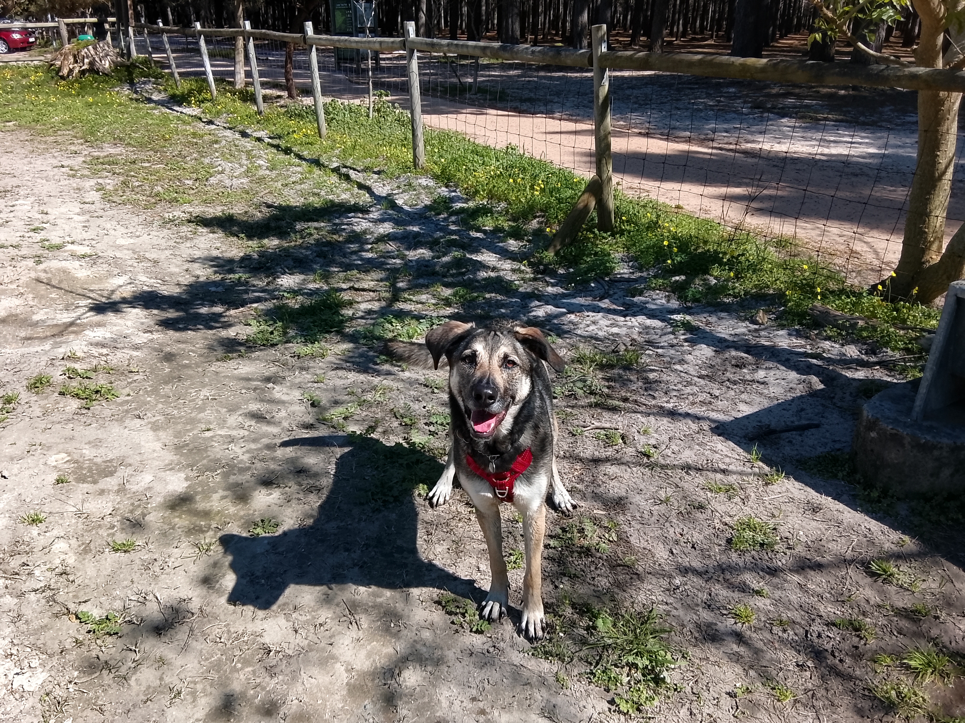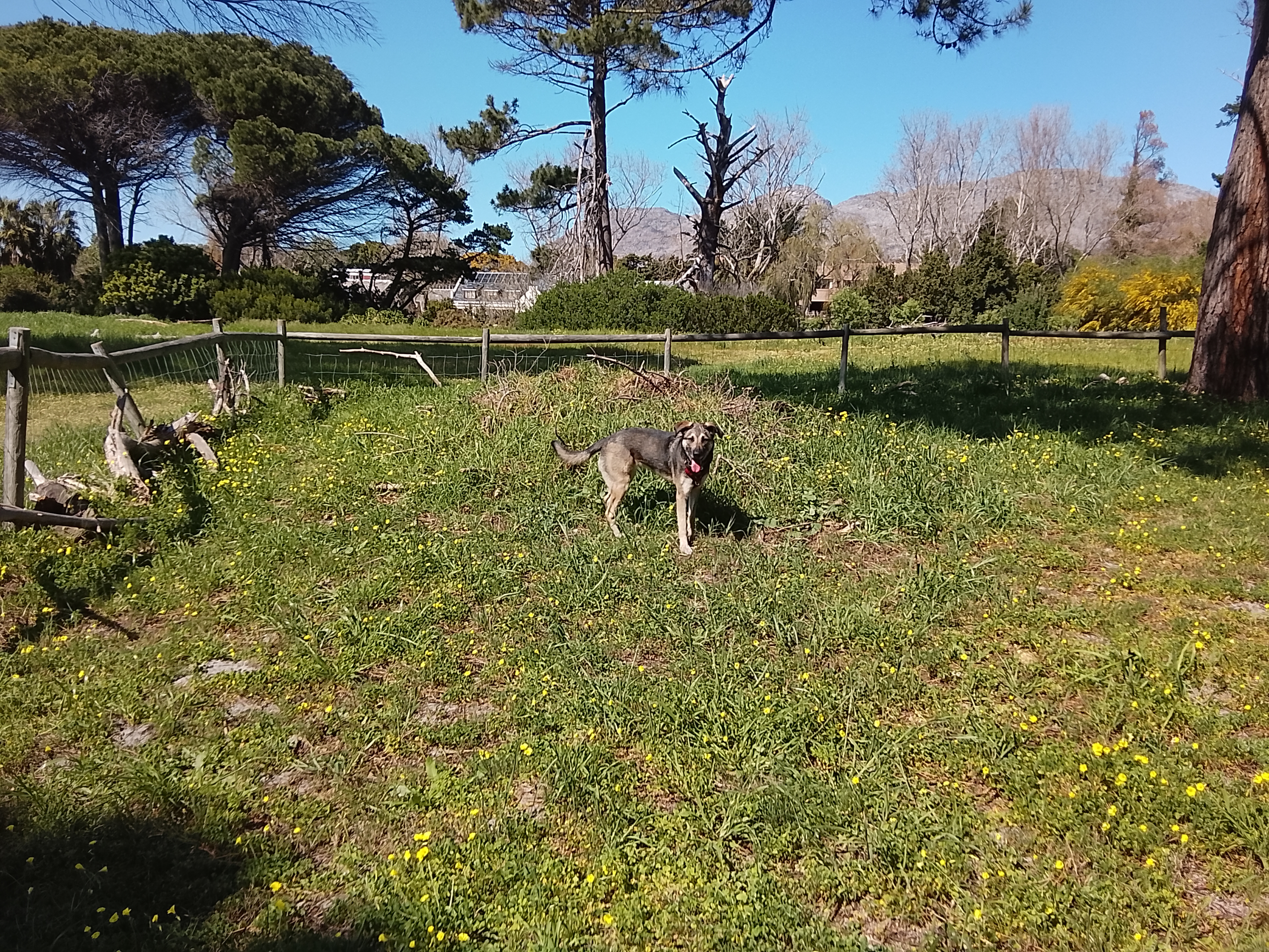 Short term we are accessing the “Paddock” at ZAR100 for one hour, four times a week. This is a safe, fully fenced paddock belonging to the Tokai Pony Club located adjacent to thr Takai Forrest. She is free to run and play and can interact with passing dogs through th fence.