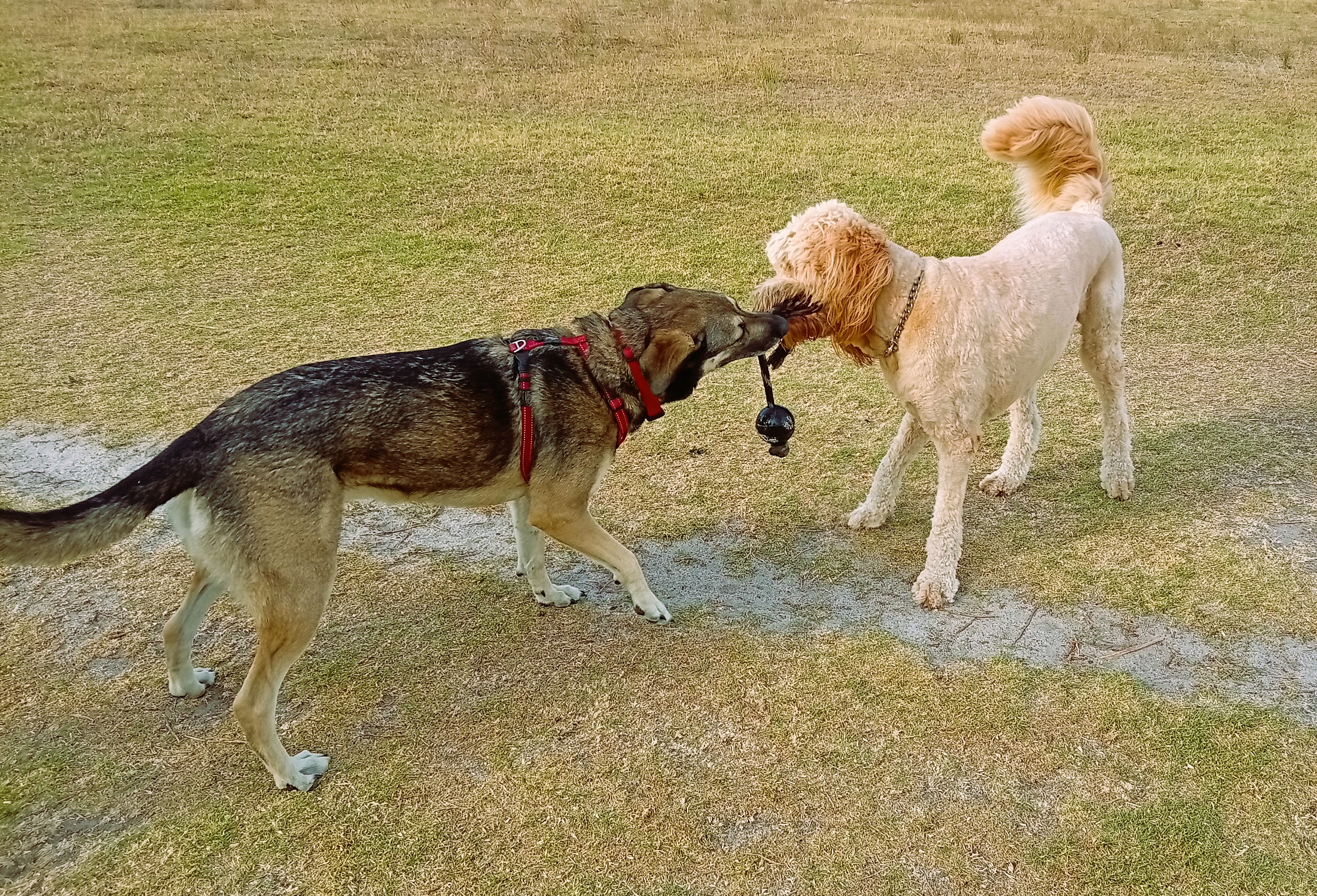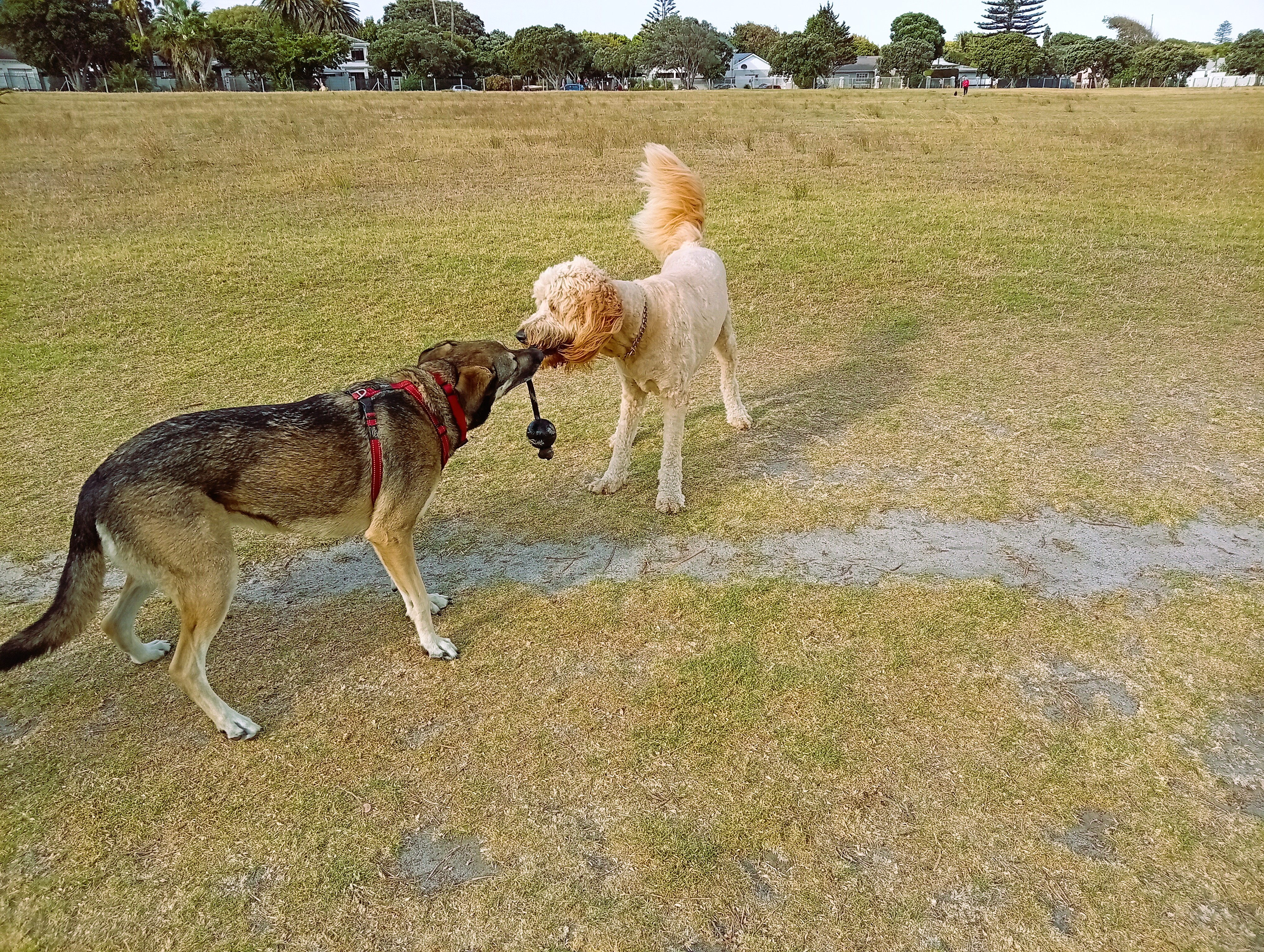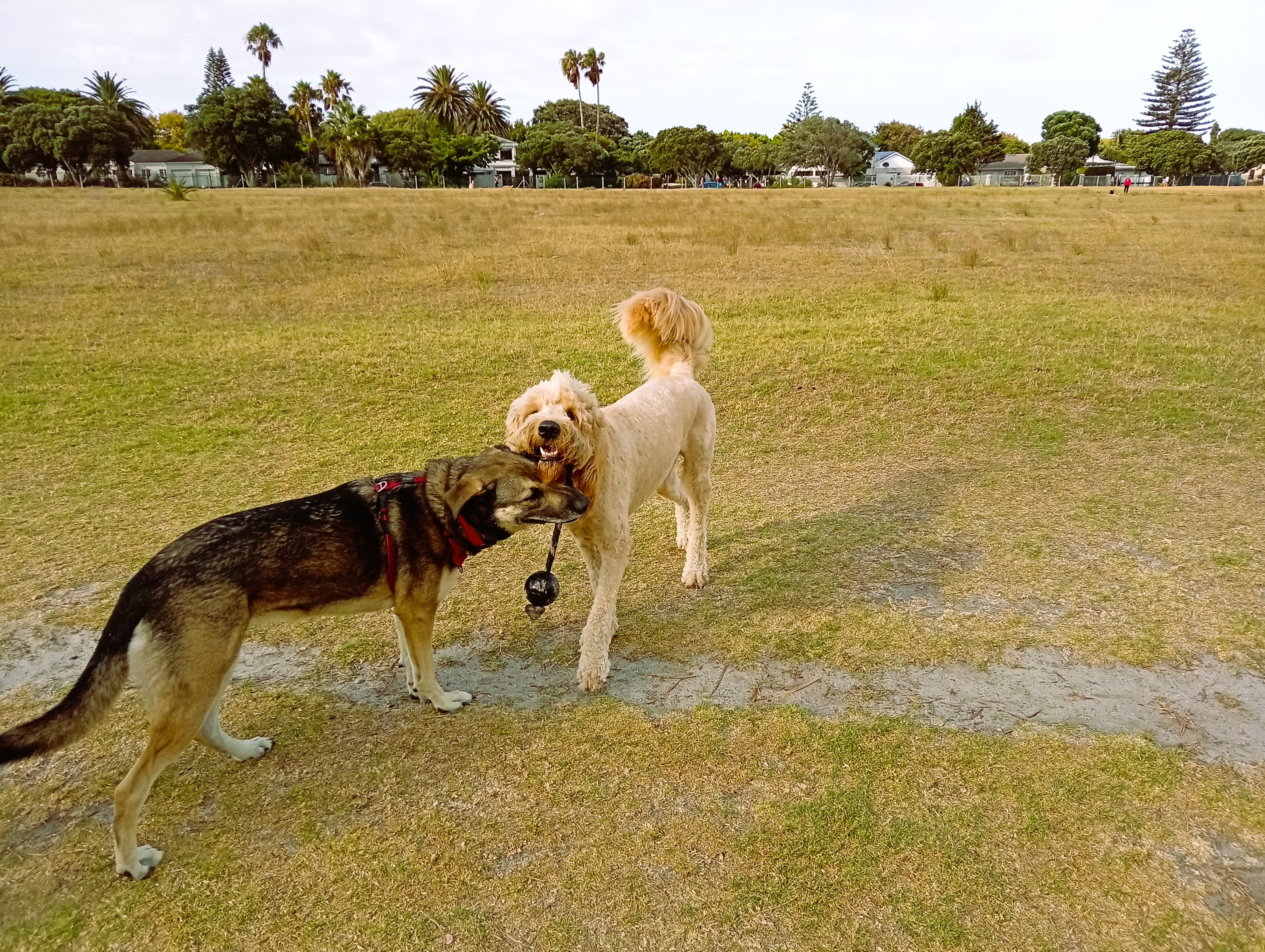 Twice daily visit to the dog park continue. Zara has found a friend there in the form of “Gunner” (named for the Arsenal Football team or which his master is a fan) They play beautifully together.