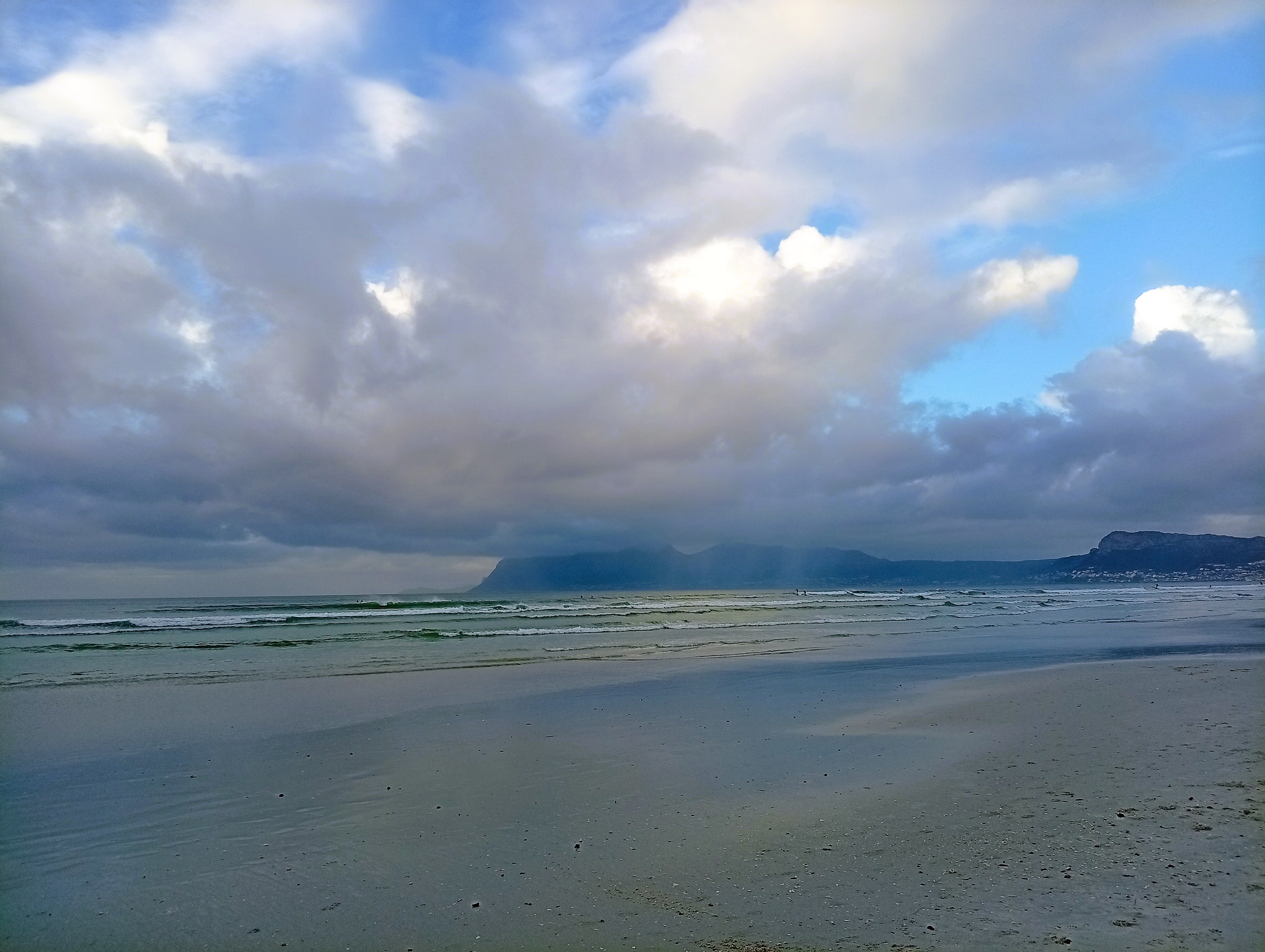 20th. With rising petrol prices and in the interest of a shorter comunte, I took Zara to Muizenberg beach this morning. It was a cooler night with much needed rain and the cloud lingered in the morning leading to an interesting sky.