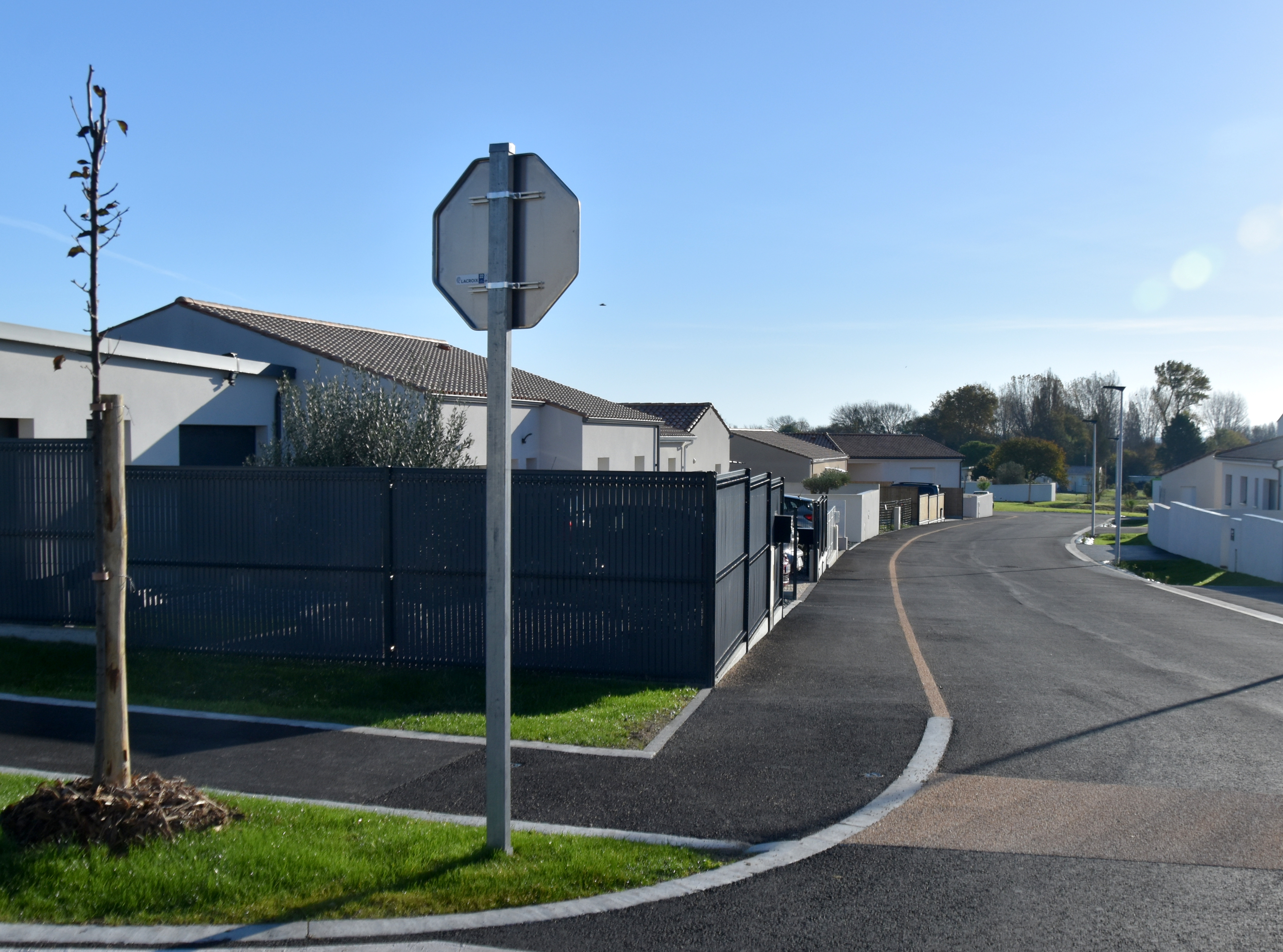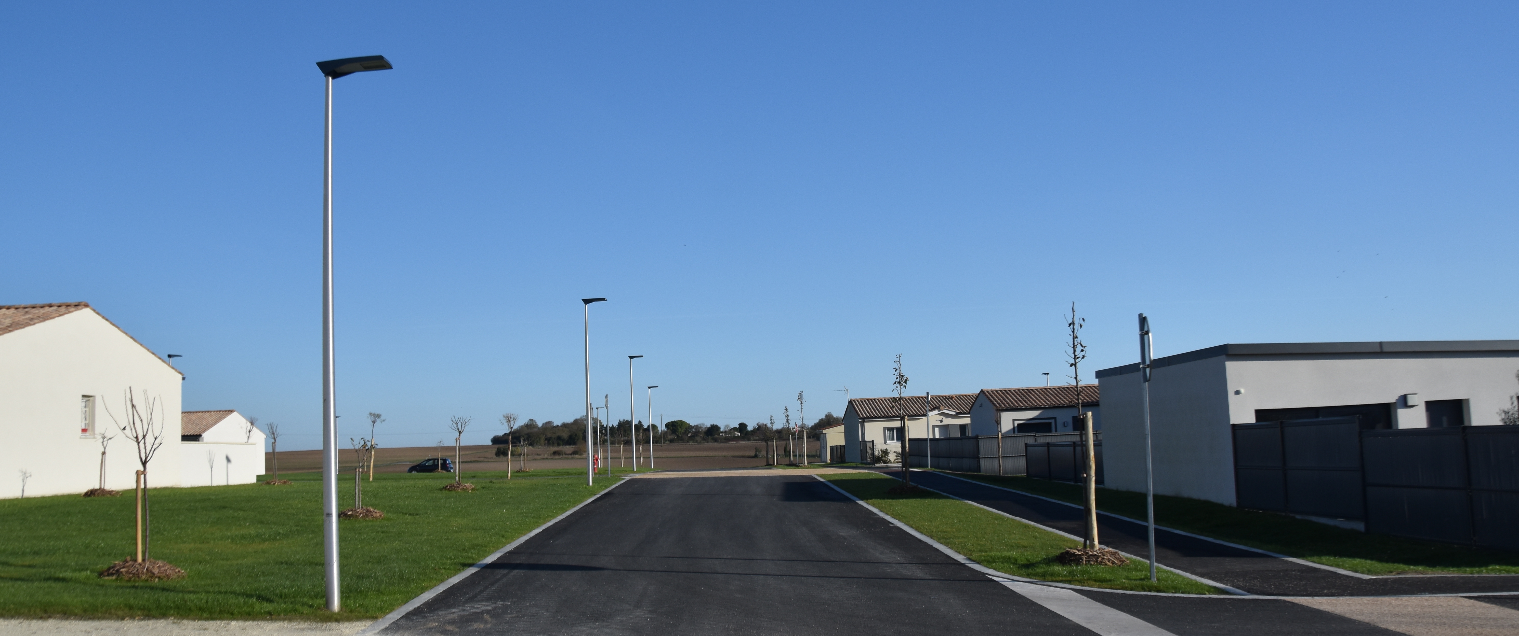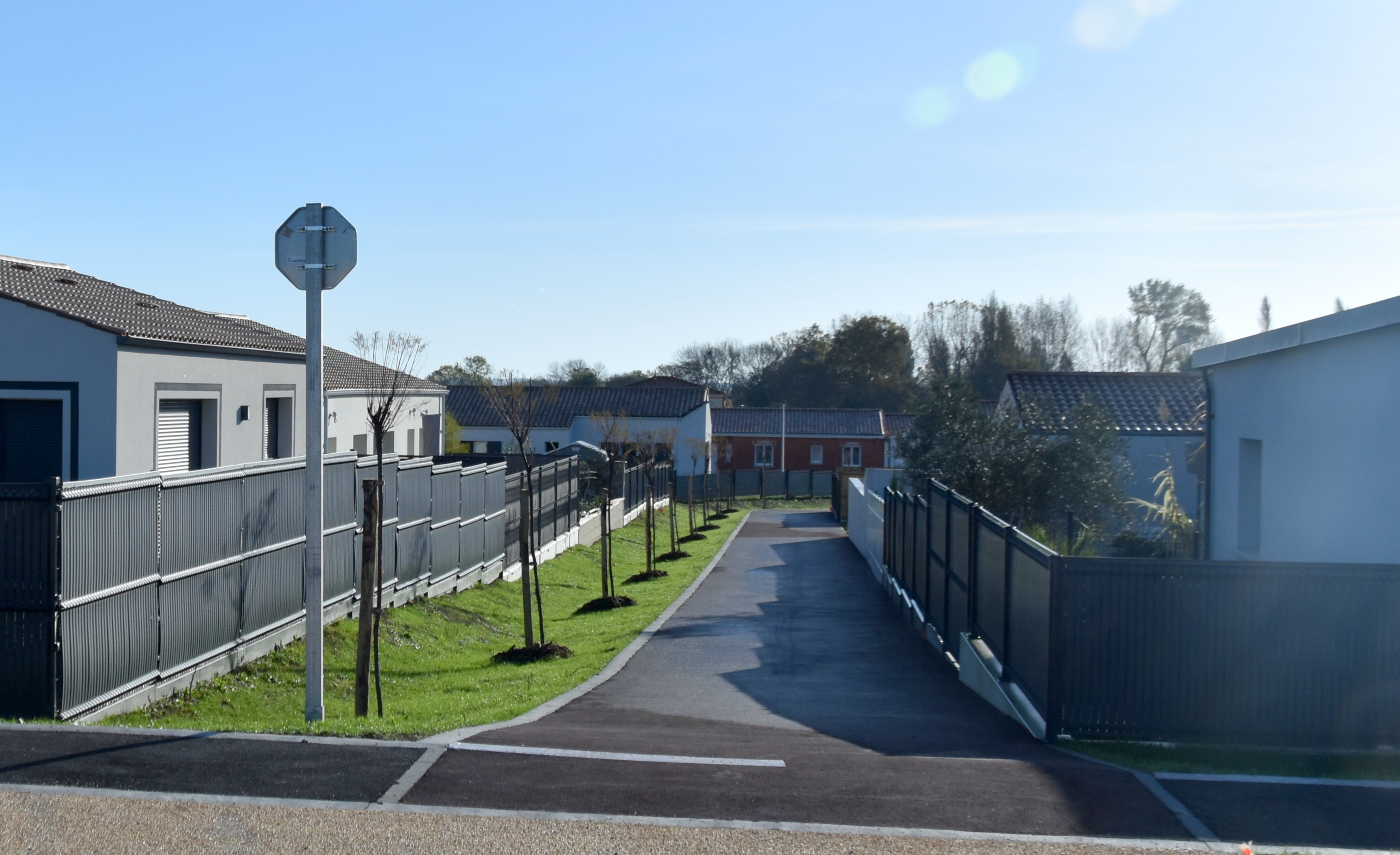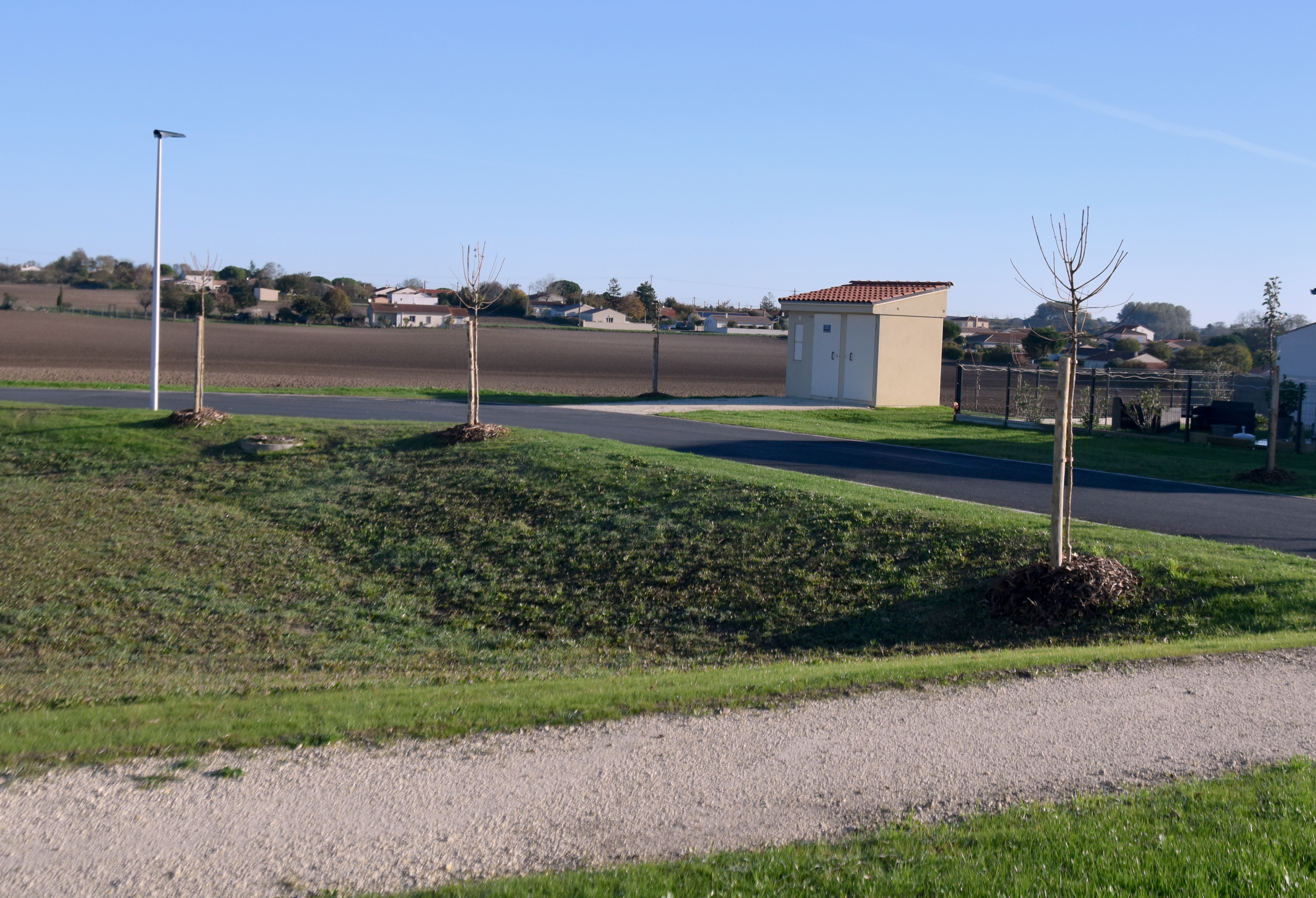 The development is now “finished” in as much as the roads and cycle paths are all tarred, the pavements marked out and the green spaces not only planted but thriving thanks to the unseasonably warm weather and some much needed rain.