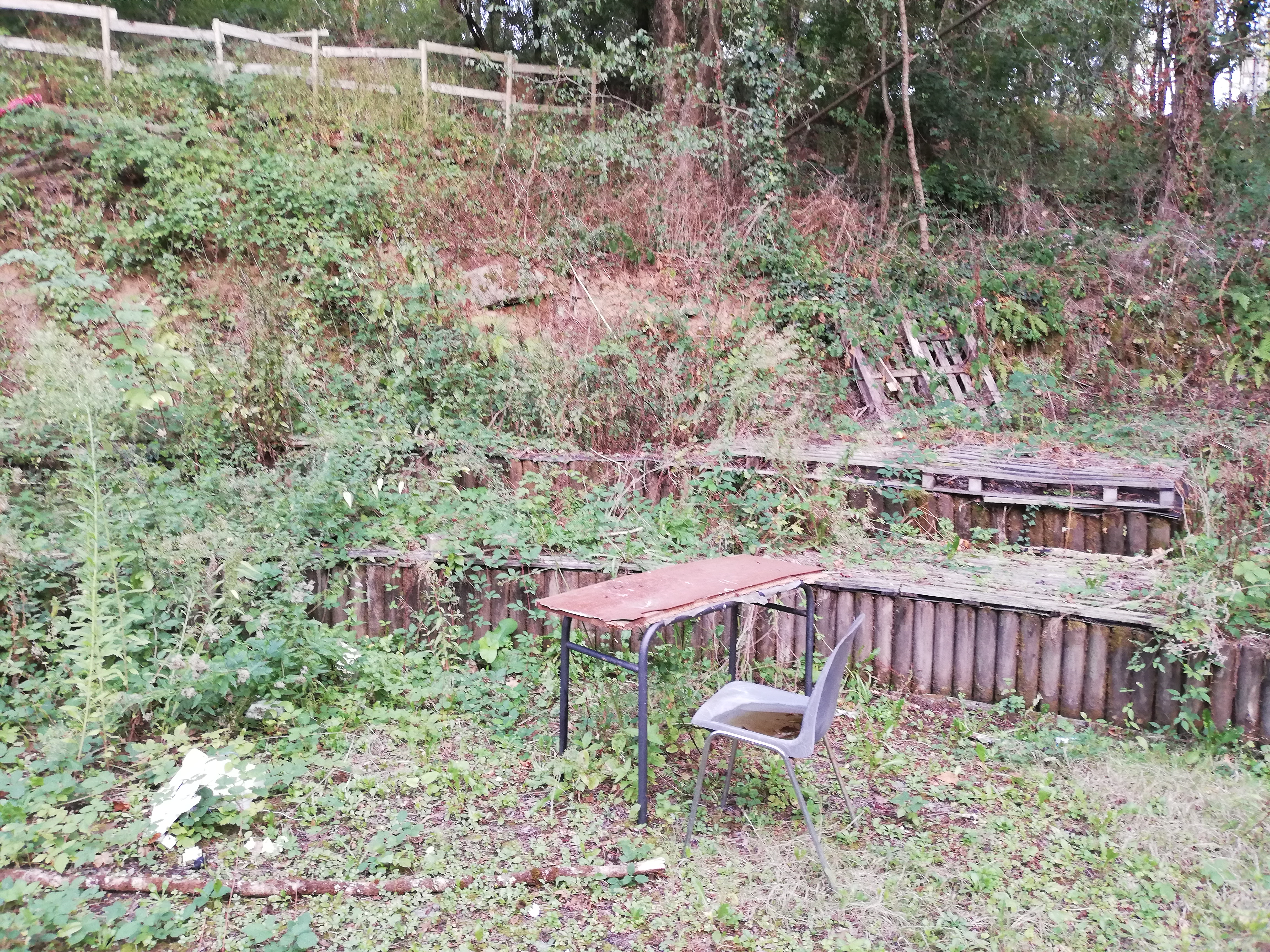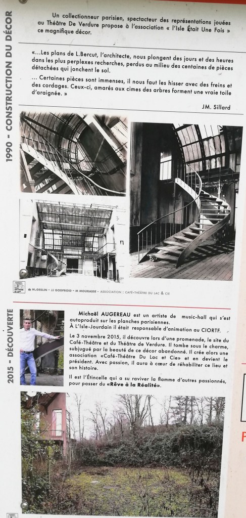 An afternoon walk revealed story boards of the history of a Cafe/Theatre that was “discovered” in November 2015 as an abandoned ruin. Money was raised (Euro 9650) volunteers were recruited, work was undertaken and the facility was opened. It must has burned brightly as a lively spot for a brief period. No doubt killed off by Covid it has now gone full circle and reverted to nature.