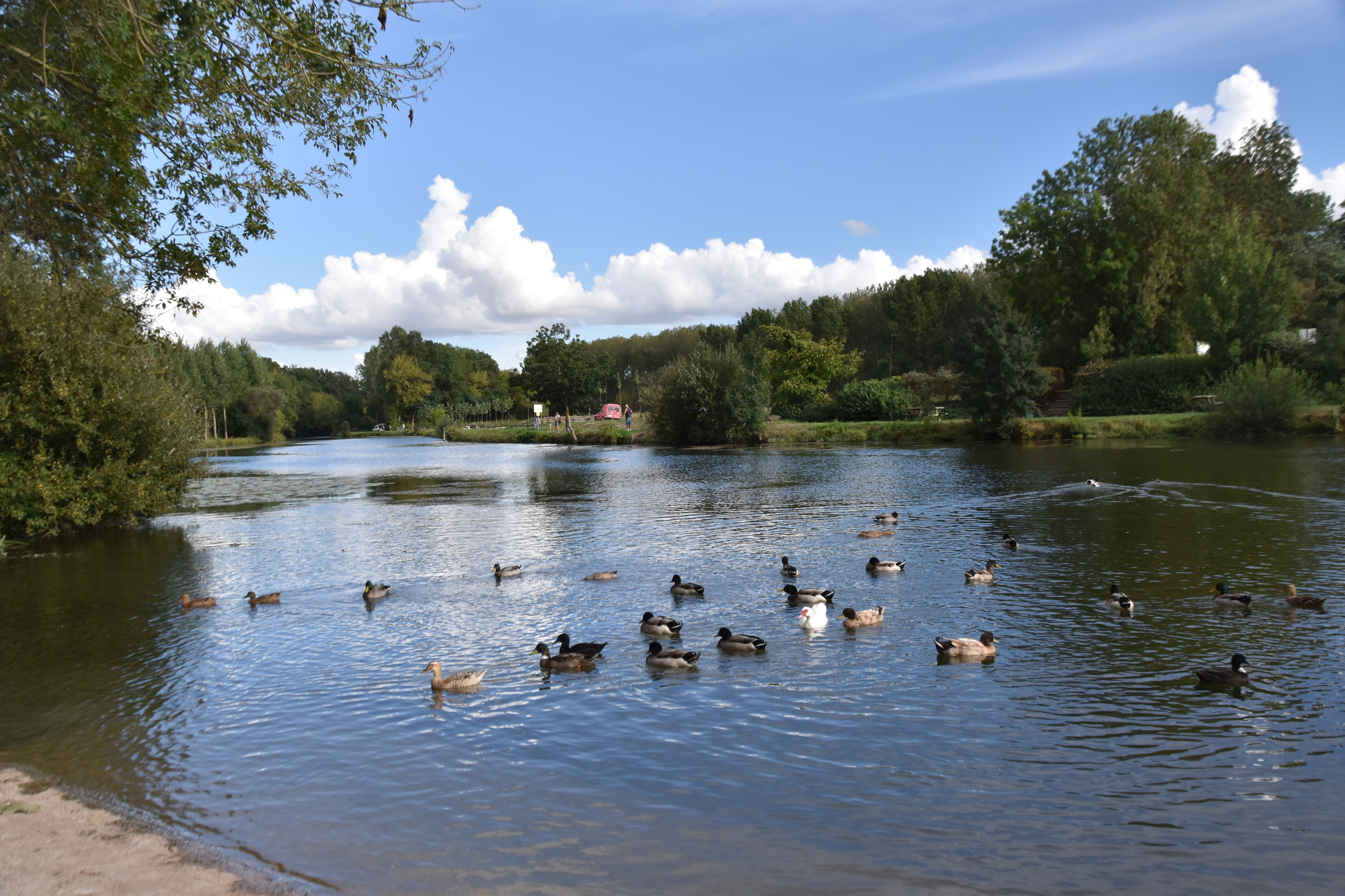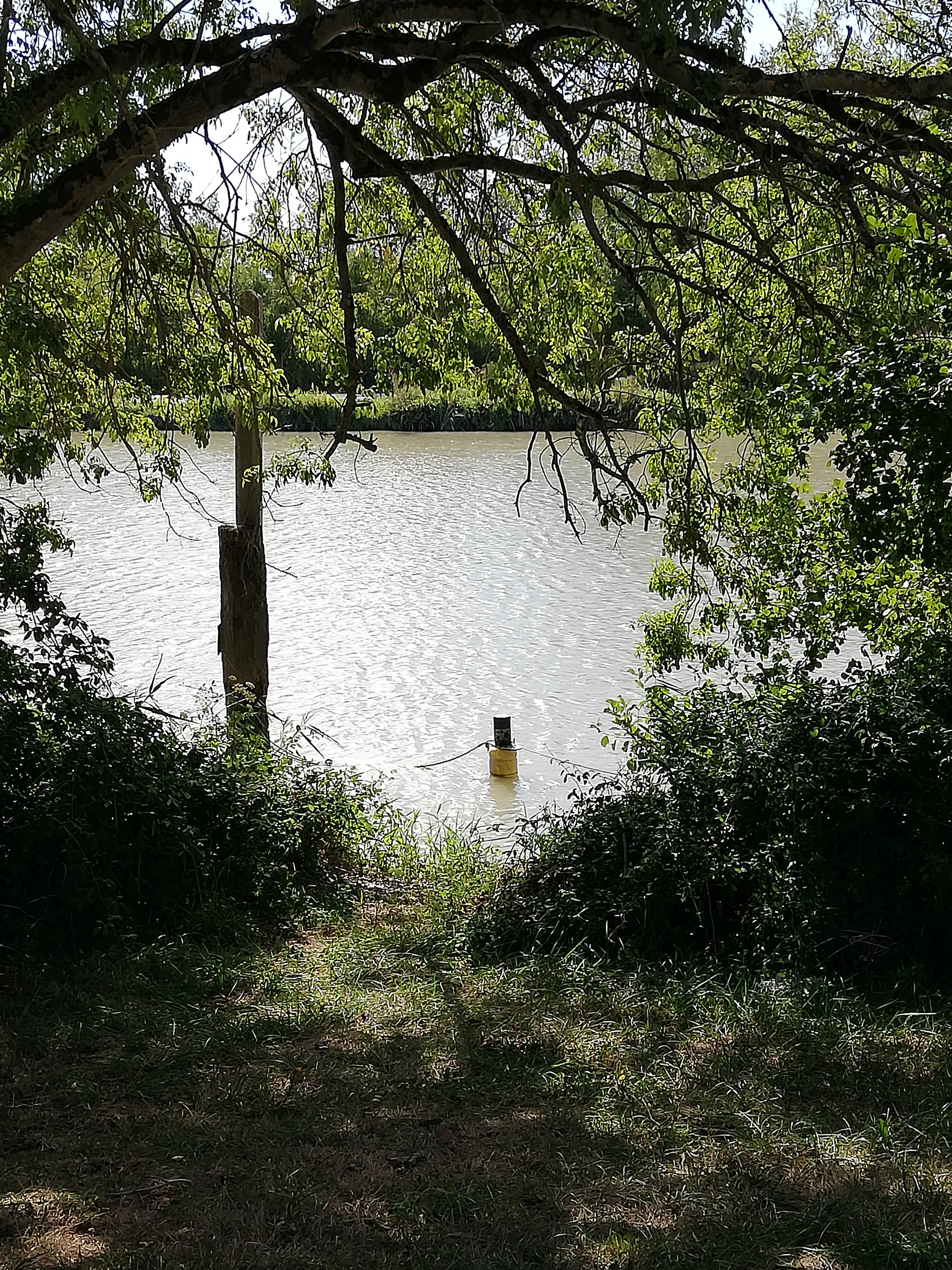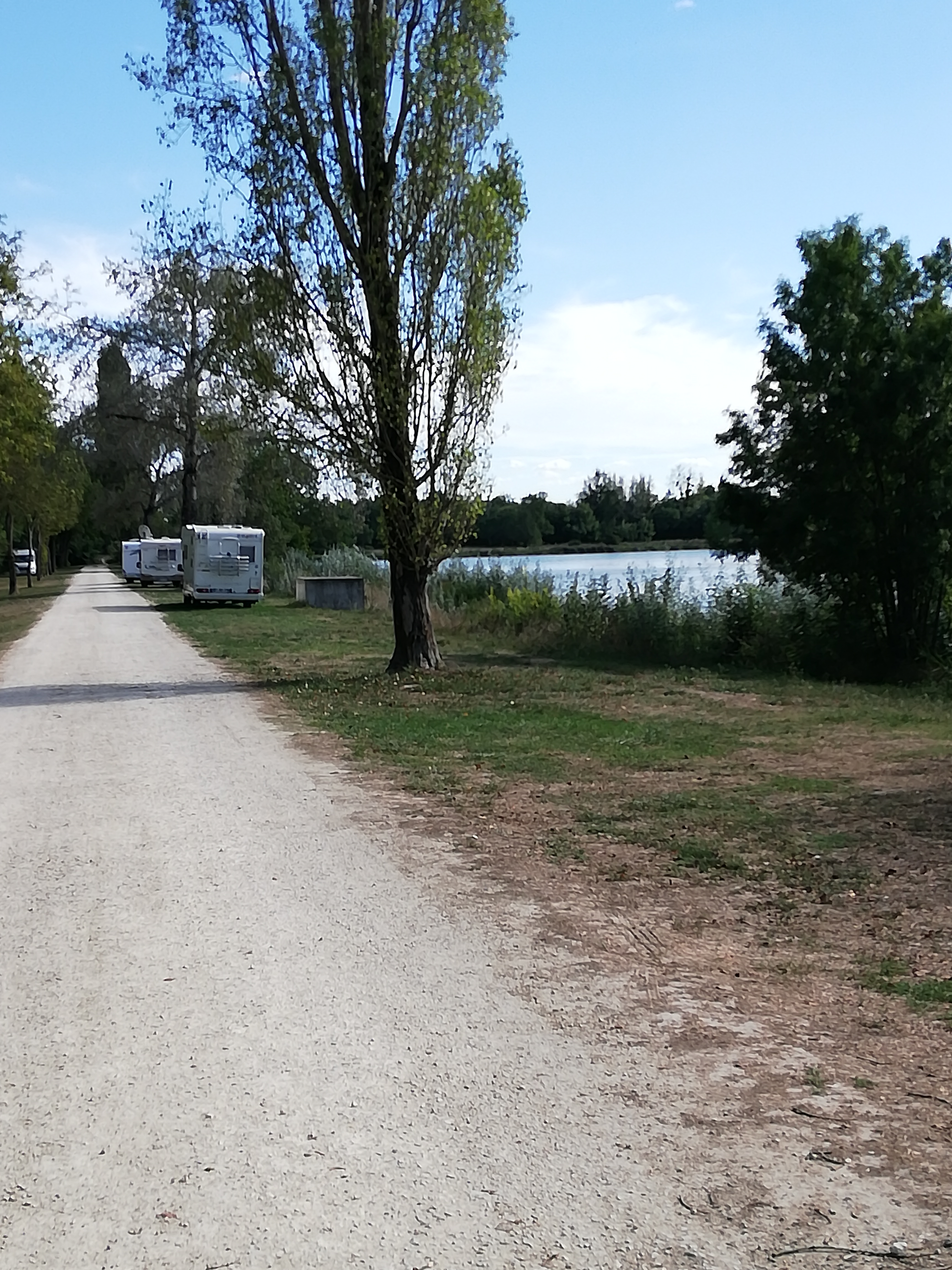 In the afternoon we set off for L’Isle Jourdaine. The Aire was on the hill above the lake so no easy access from there to the water. This is the tree obstructed view from my pitch!