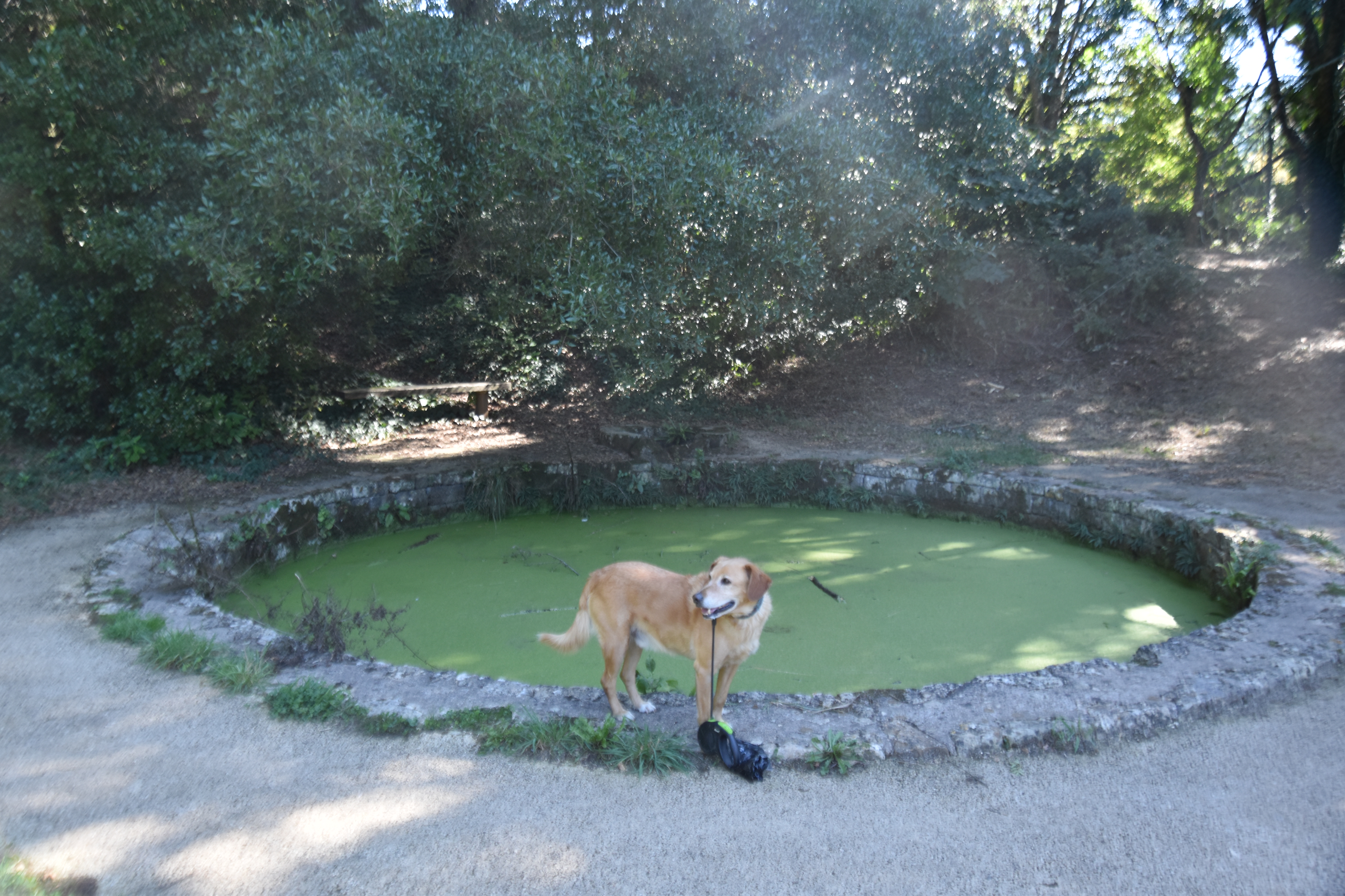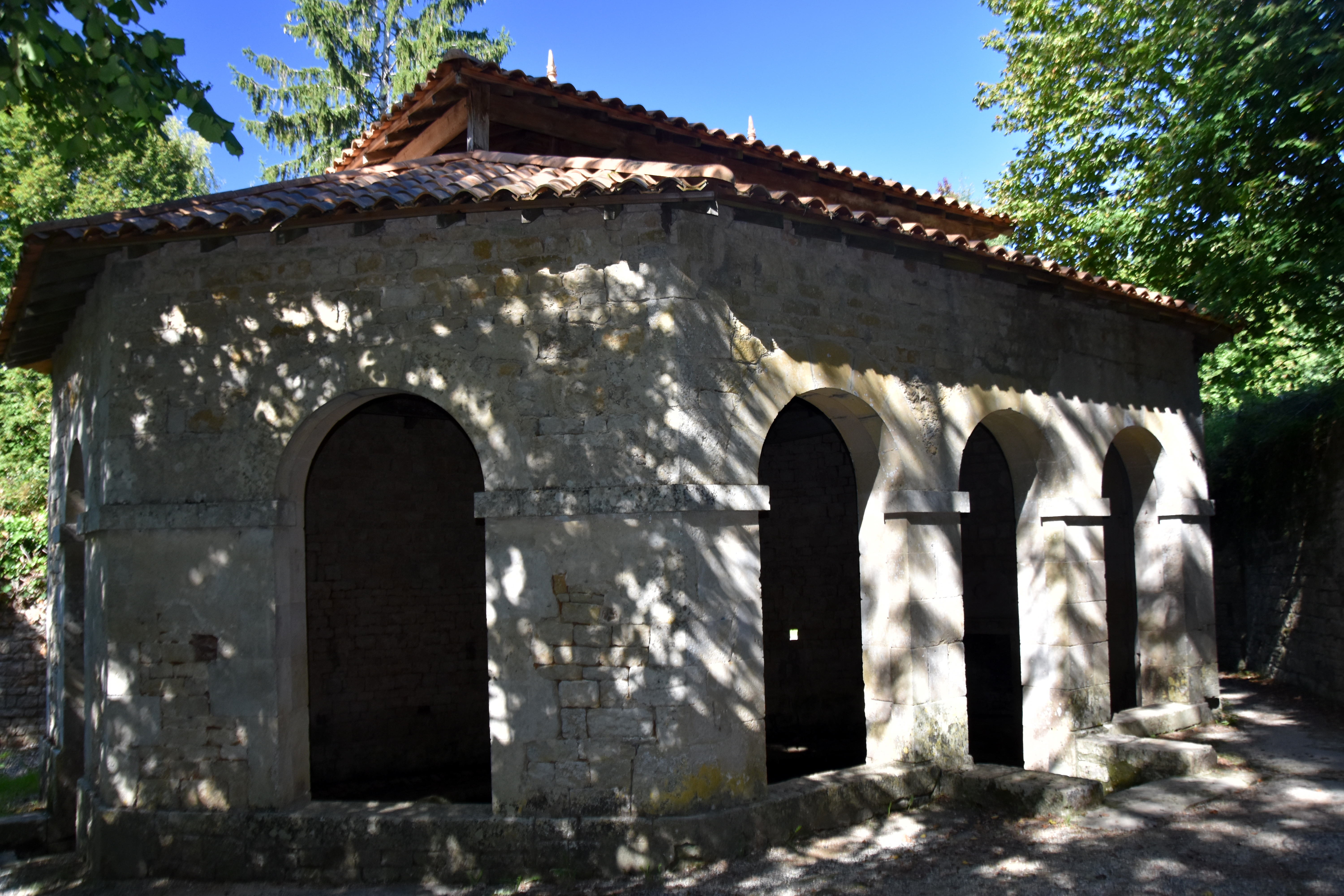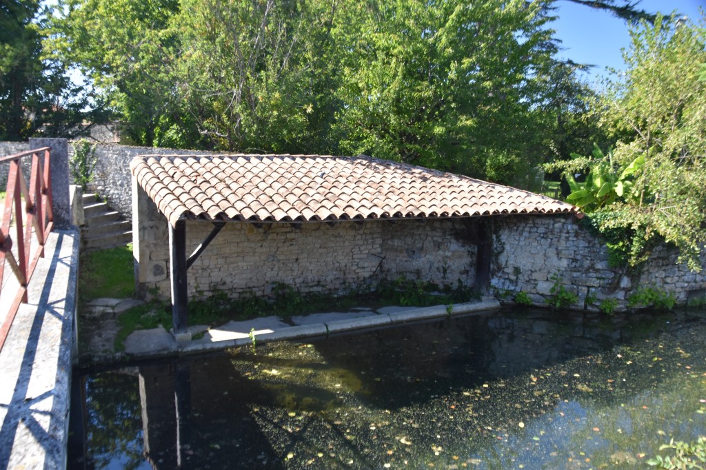From the new Aire at Melle there is a discovery trail/Arboretum that circumnavigates the town and dips into it from tine to time to visit sites. There are many exotic and interesting trees along the way and the path is mostly shady and pleasant and for a good stretch runs along a river. We walked a section of it. The first stop was a rather grand Lavoir “Lavoir de Villiers”. For South African friends the name “de Villiers” will be recognizable as having come to the Cape with the fleeing protestants. This area of France was a stronghold pf the Protestant faith for a long time. There is a “Temple” in town, the name given to protestant churches, as there is in many towns in the region.
