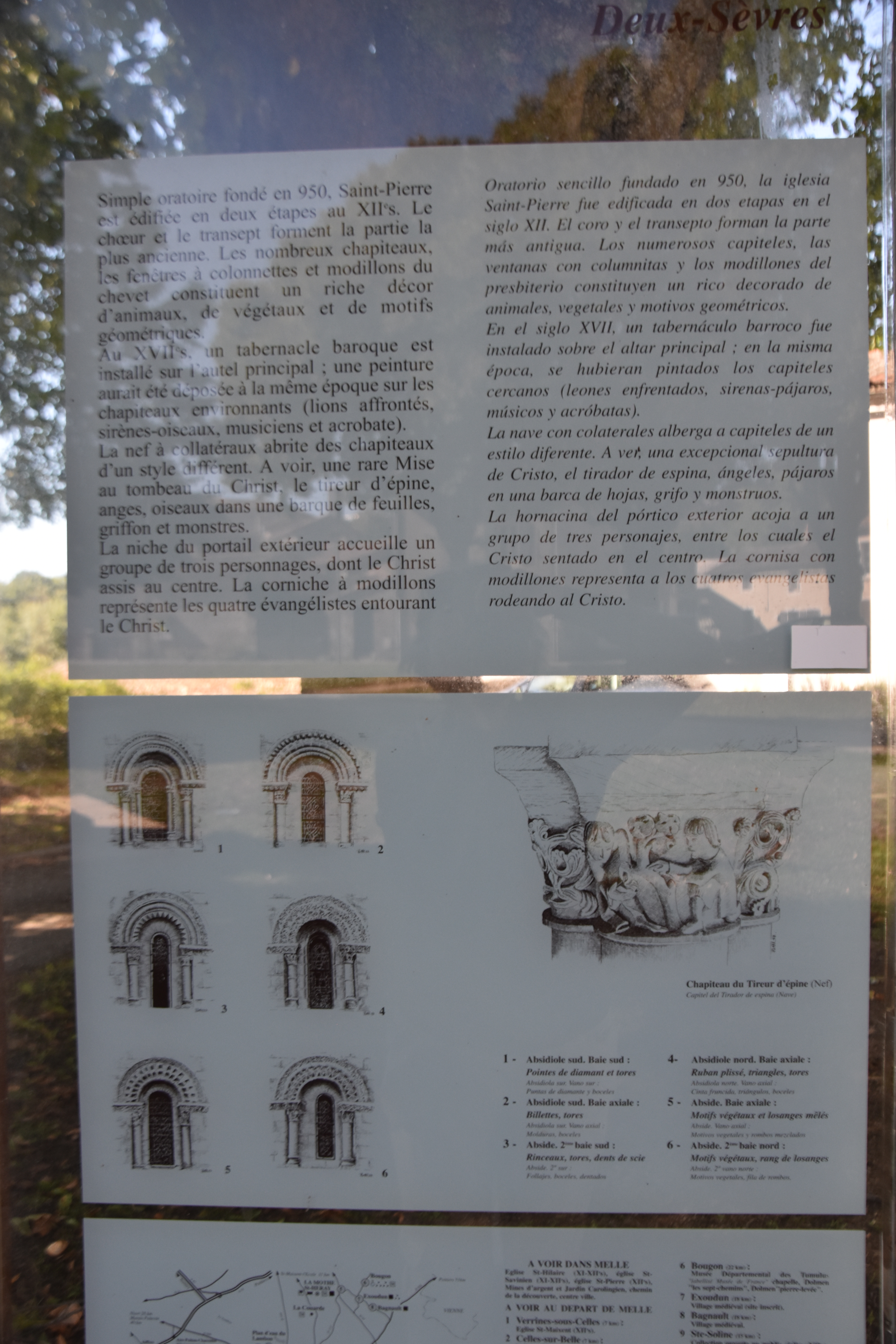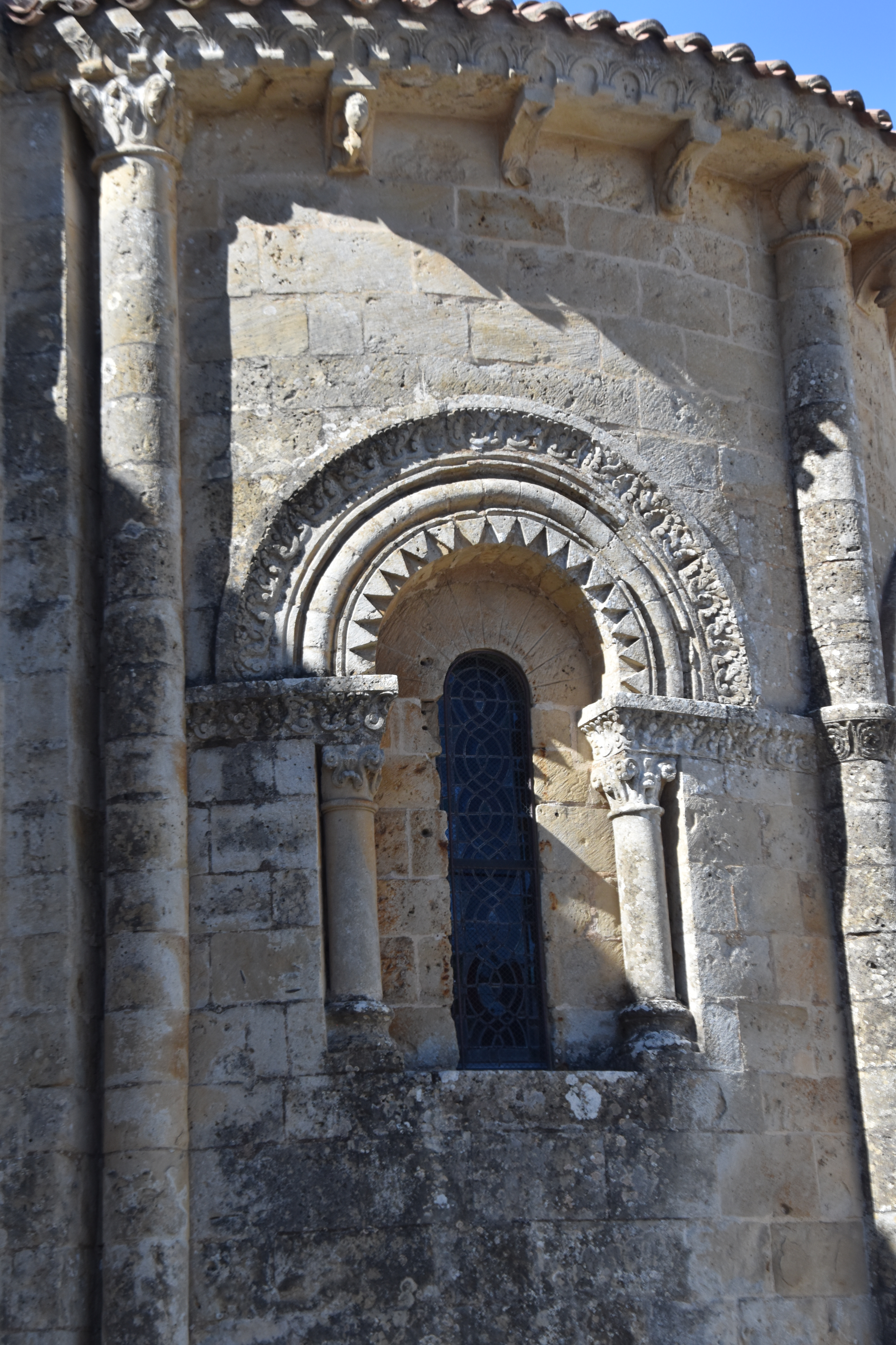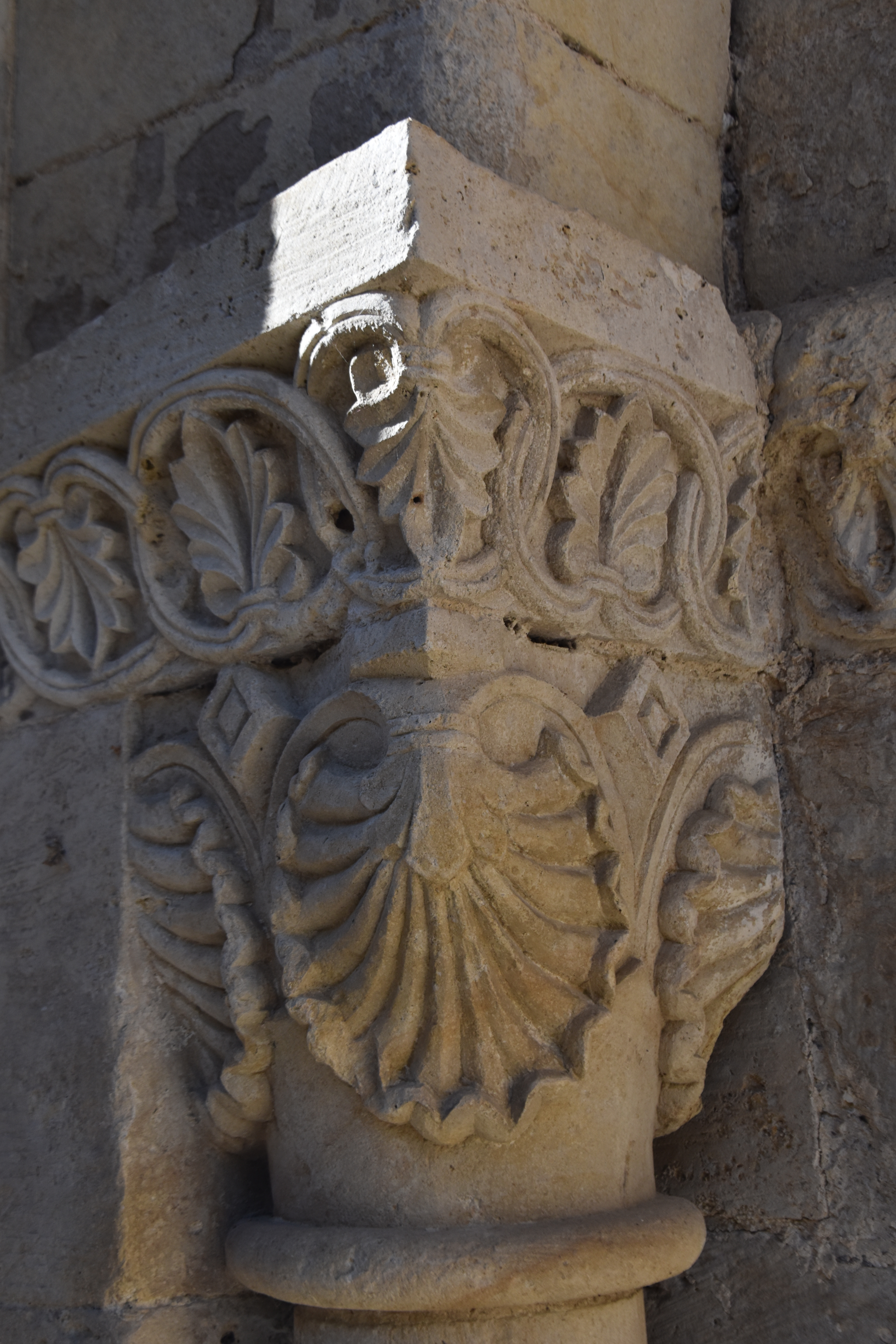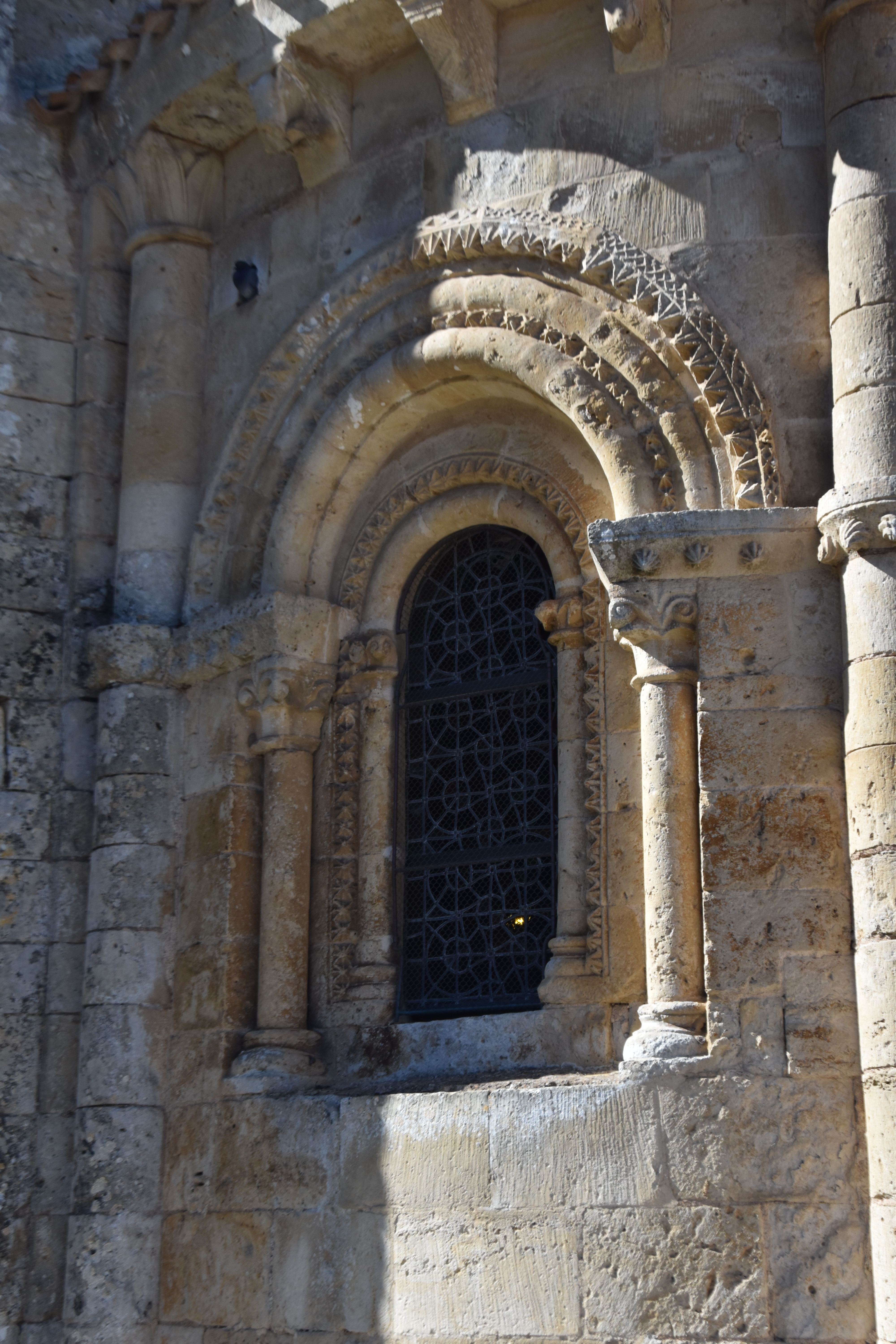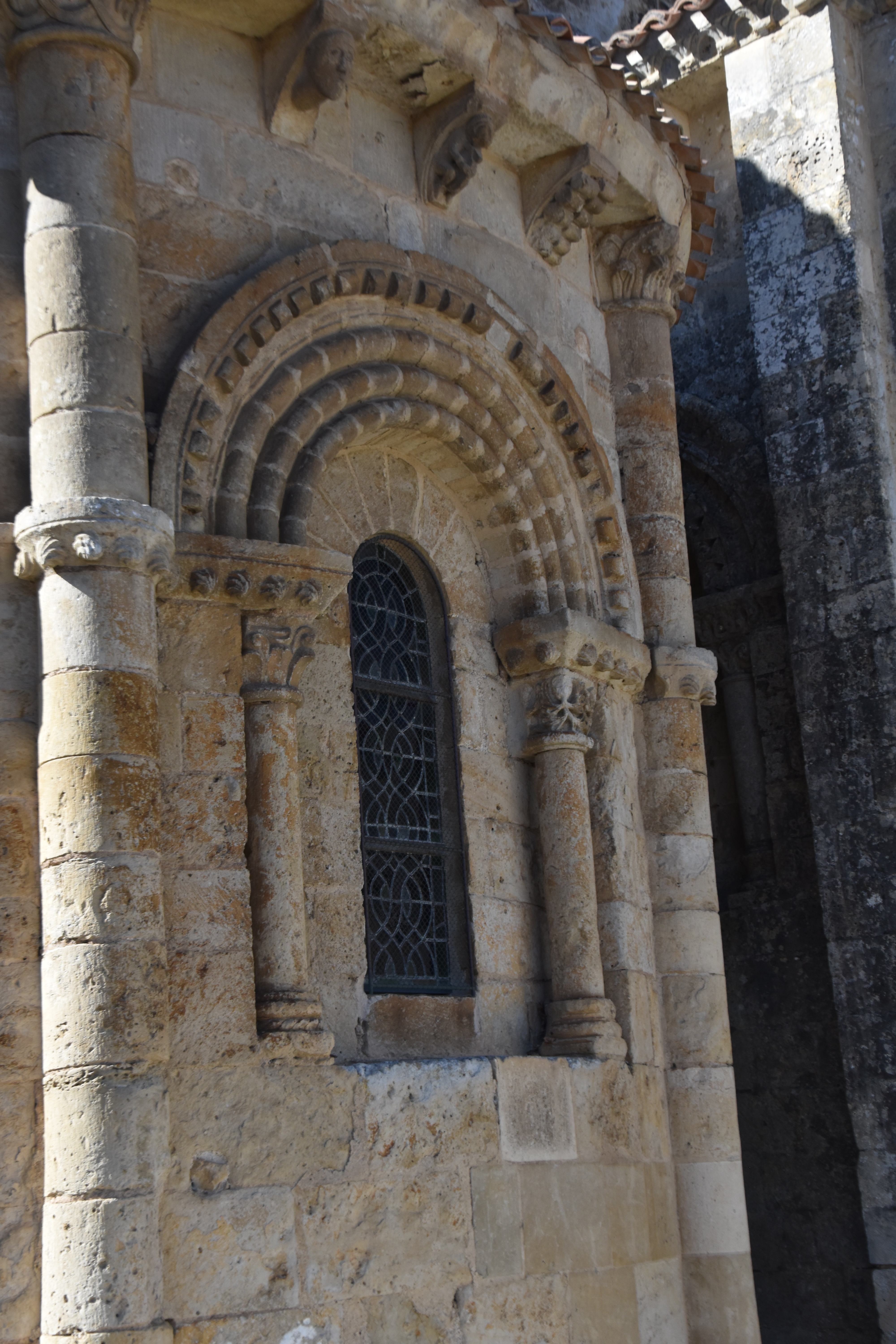 The second stop was at the C12th Romanesque church of Saint-Pierre. What struck me most was the decoration surrounding the windows and on the adjacent capitals, different in each case.